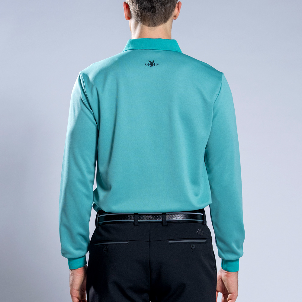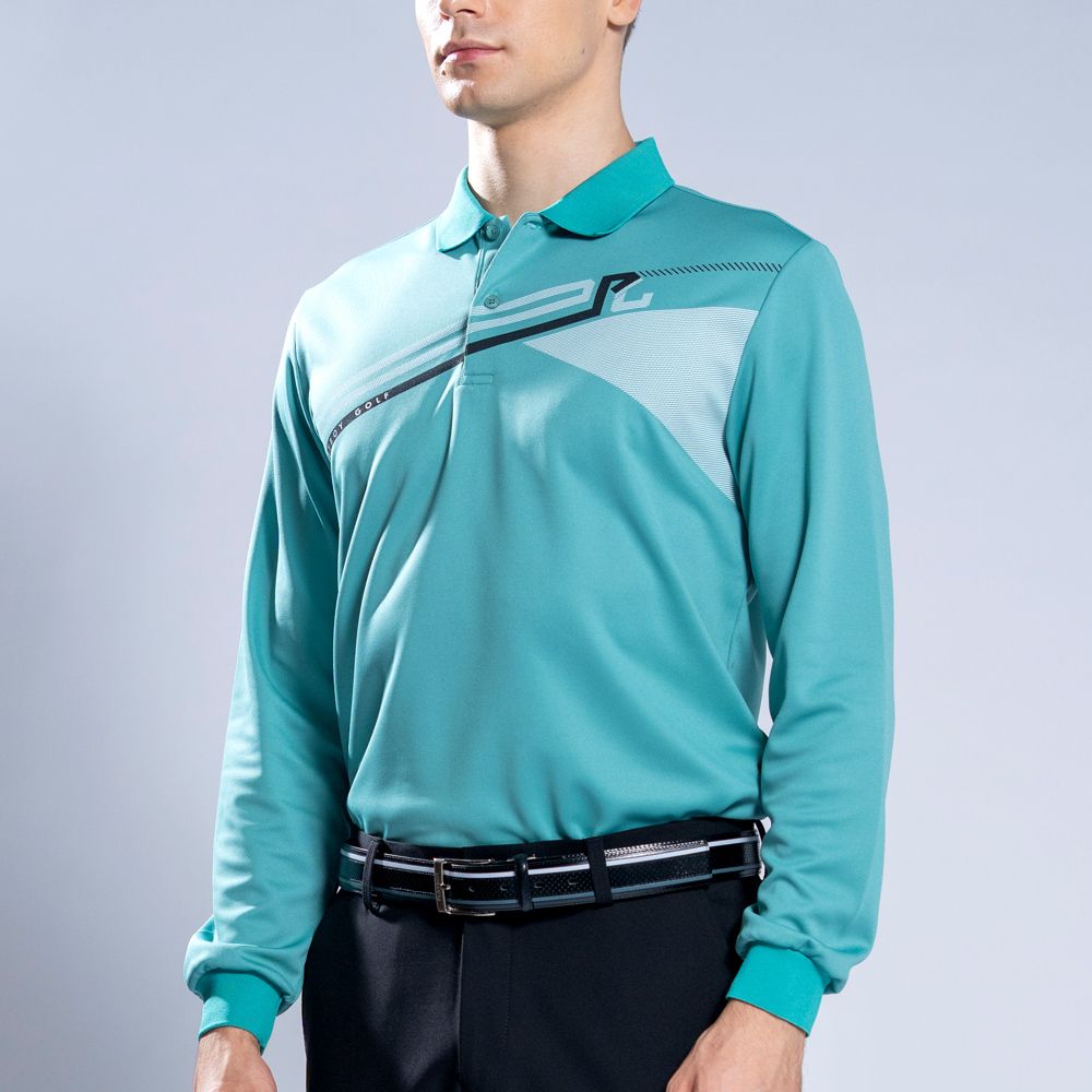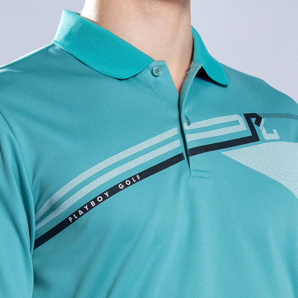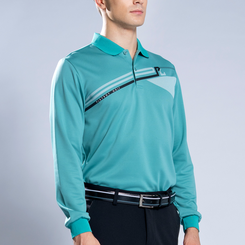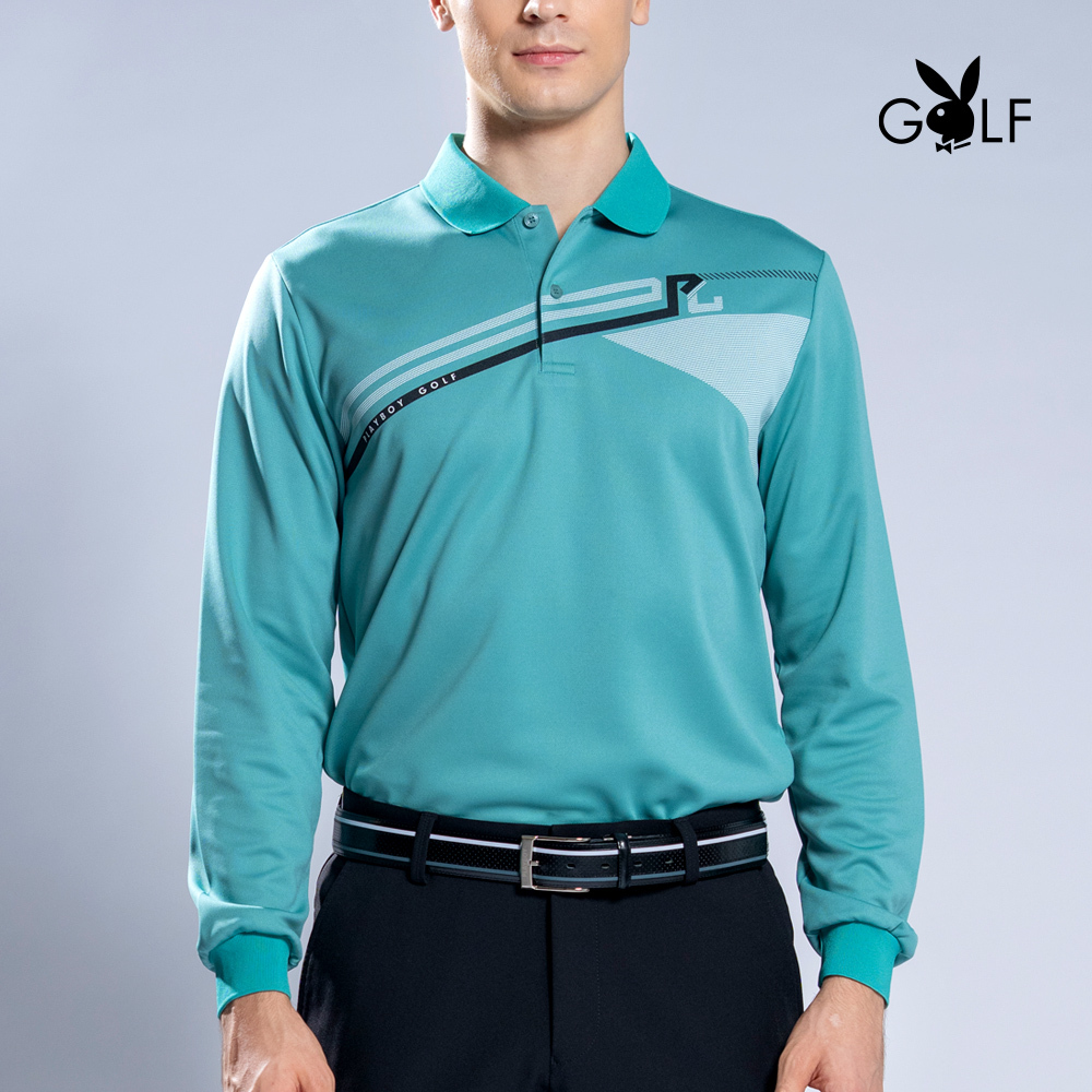 【PLAYBOY GOLF】男款線條印花長袖POLO衫-白 / AA22208-73