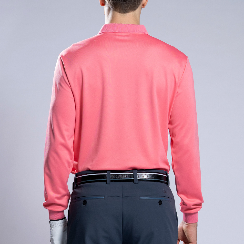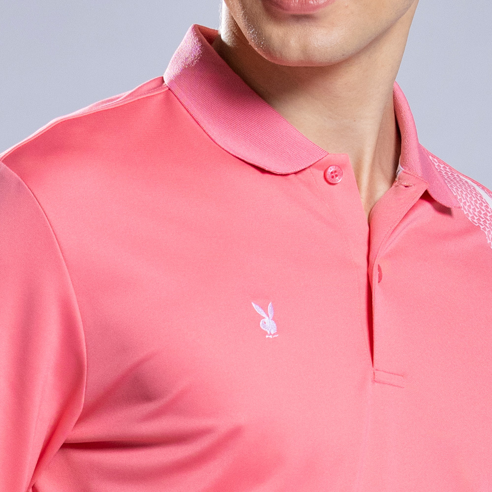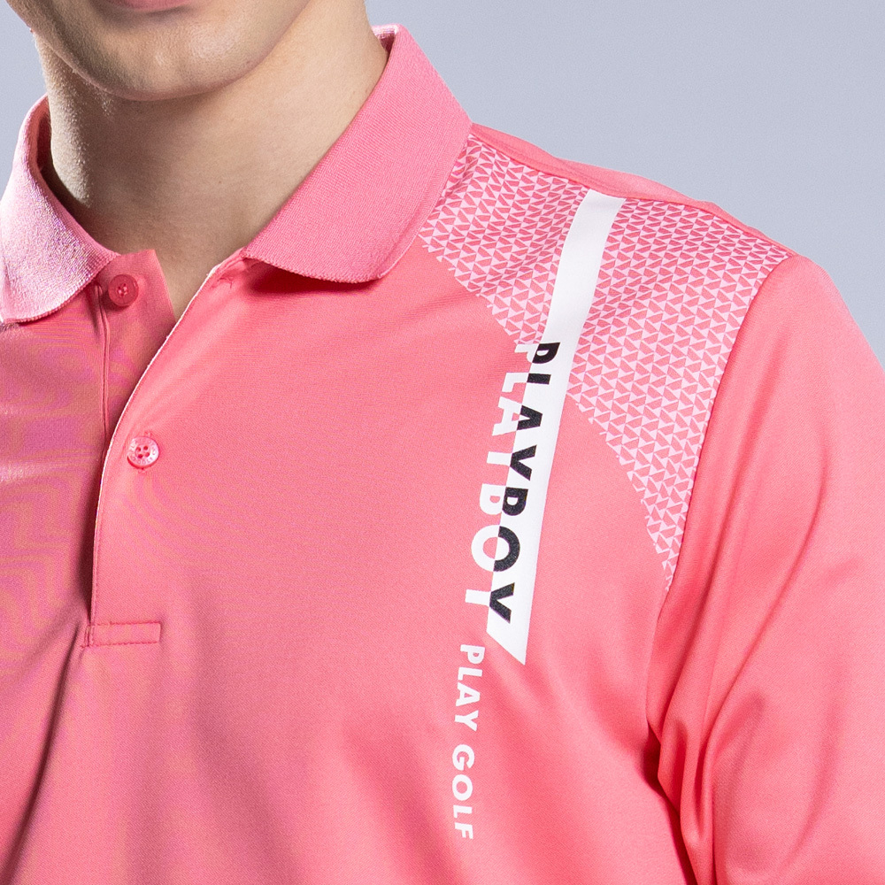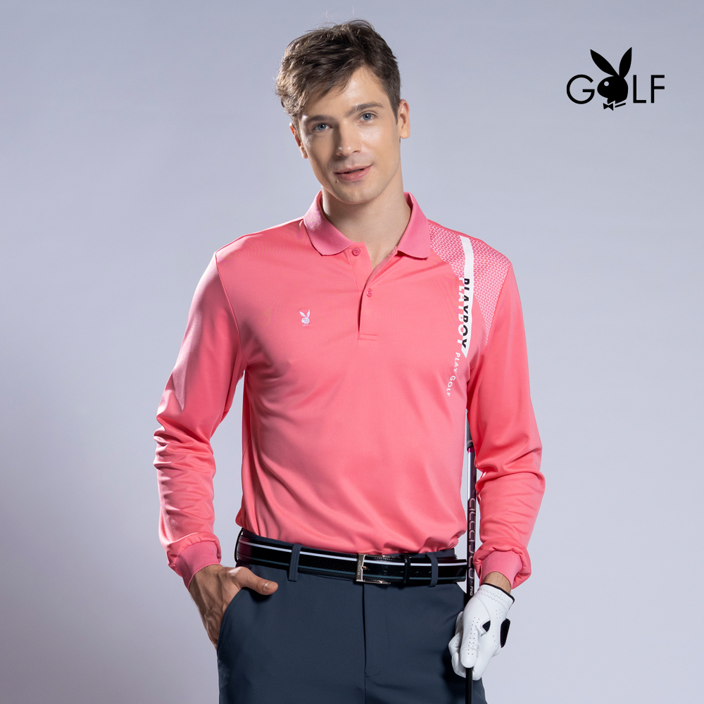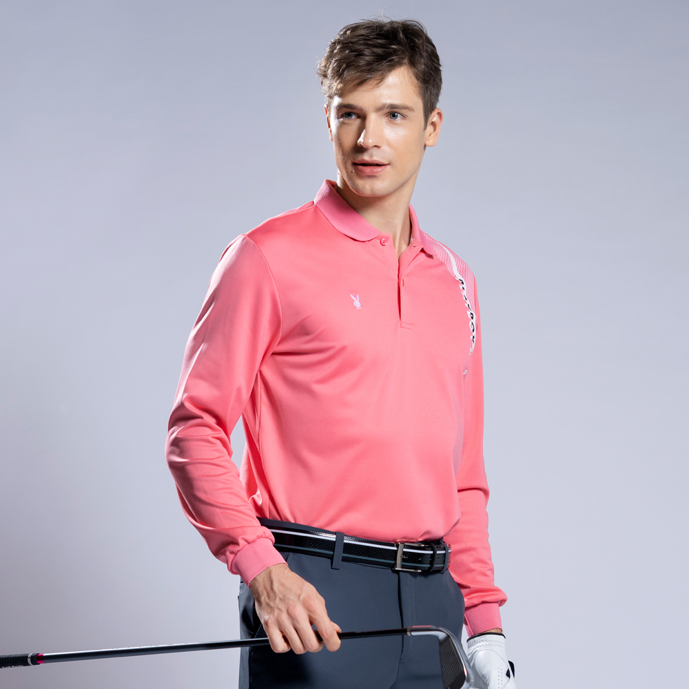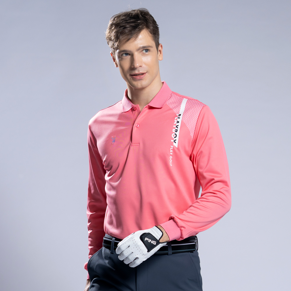 【PLAYBOY GOLF】男款左肩LOGO休閒薄長袖POLO衫-粉紅 / AA22213-15