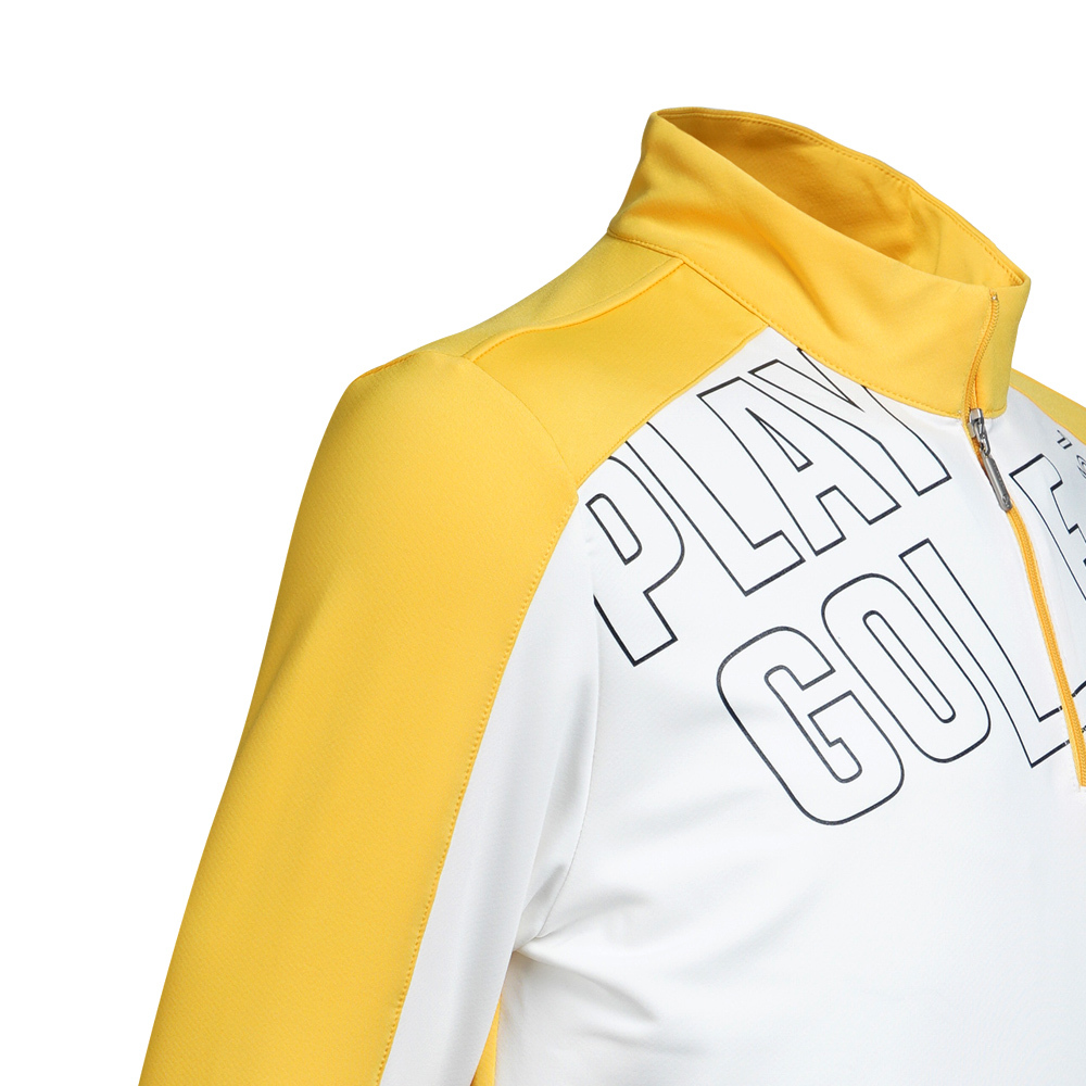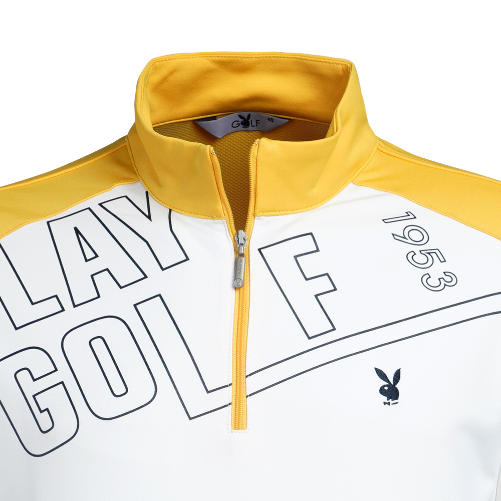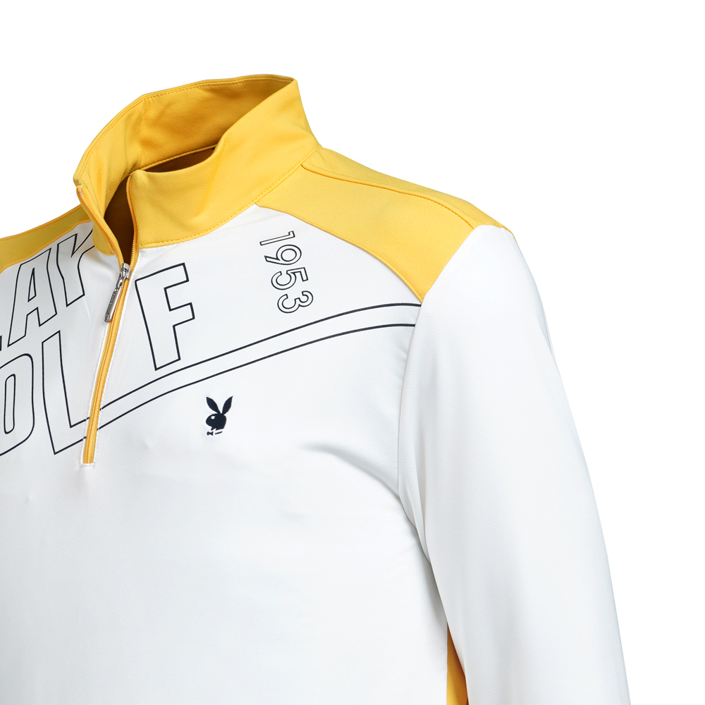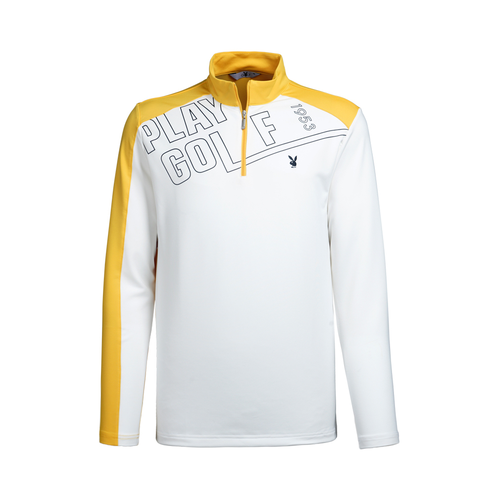 【PLAYBOY GOLF】男款不對稱剪接立領長袖POLO衫-白 / AA22222-73