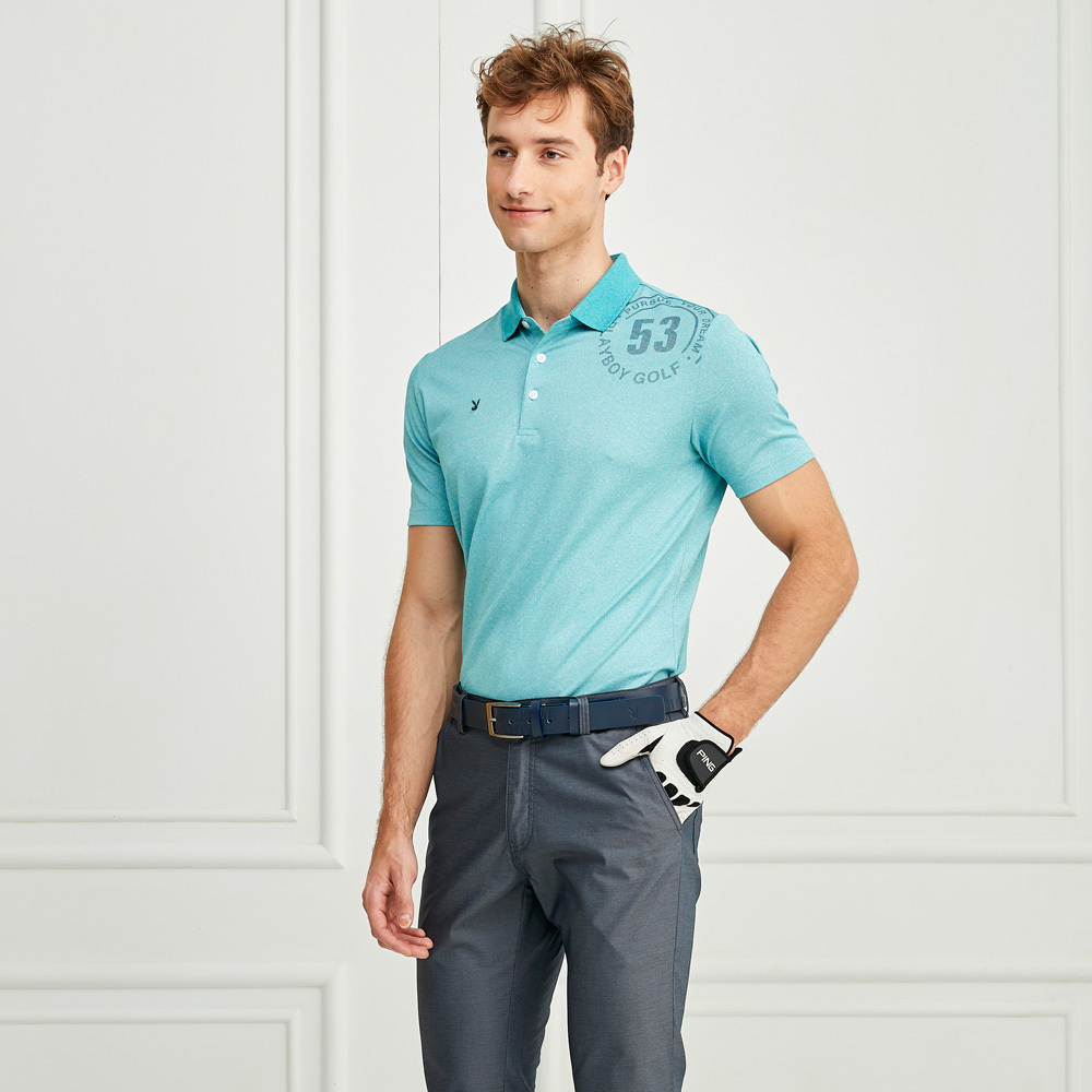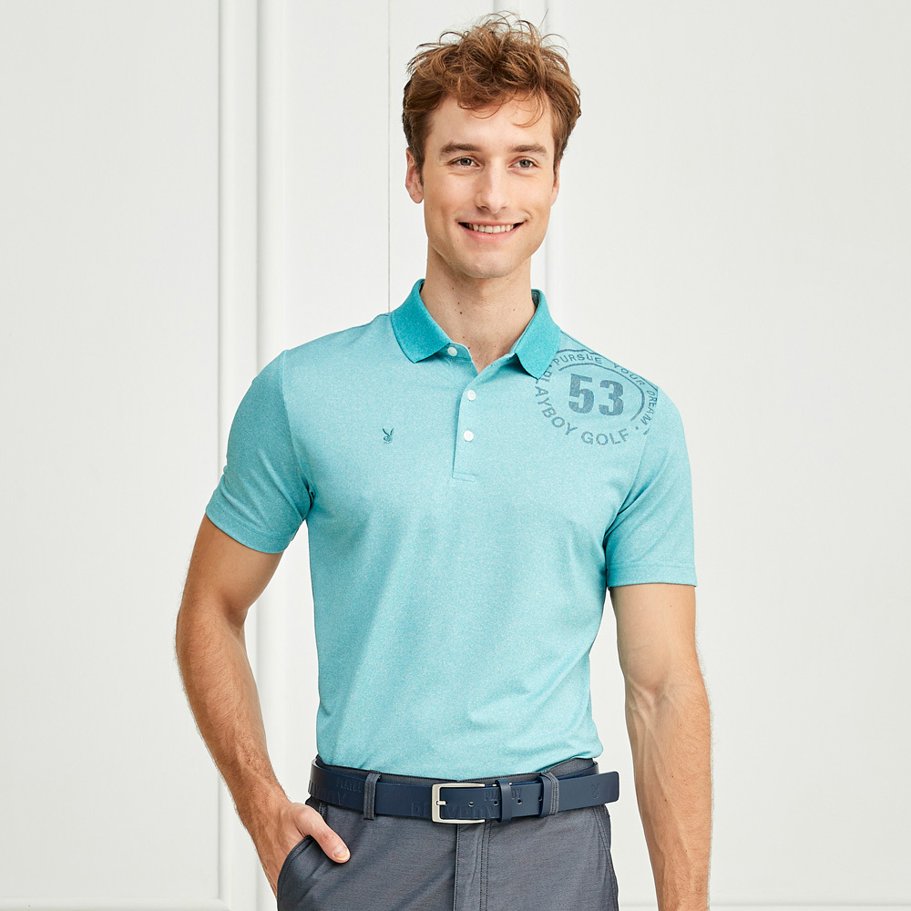 【PLAYBOY GOLF】男款圖騰花紗短袖休閒POLO衫-綠 / AA23101-47