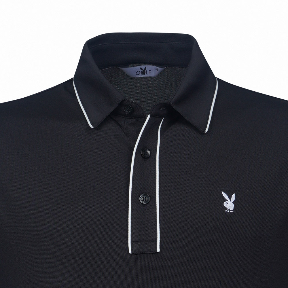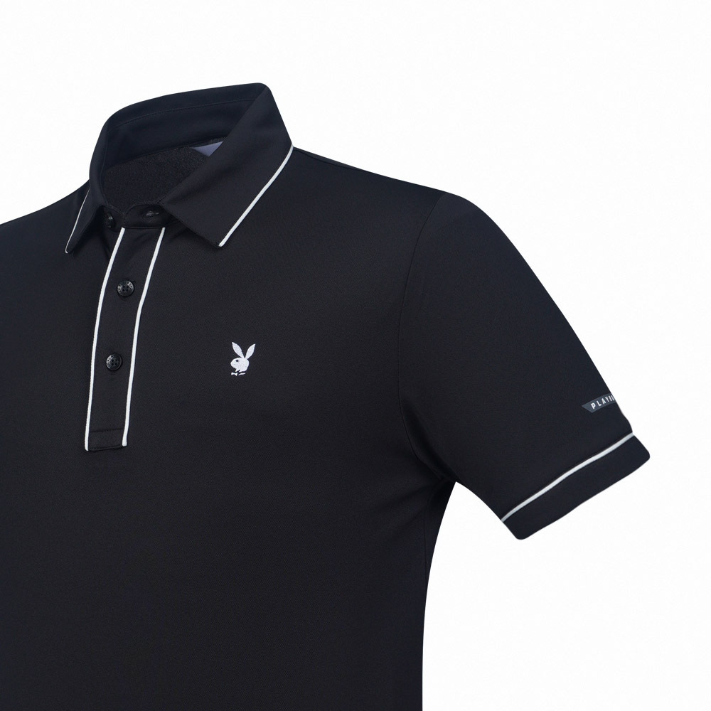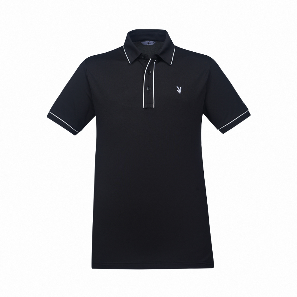 【PLAYBOY GOLF】男款素面滾邊休閒短袖POLO衫-黑 / AA23118-88