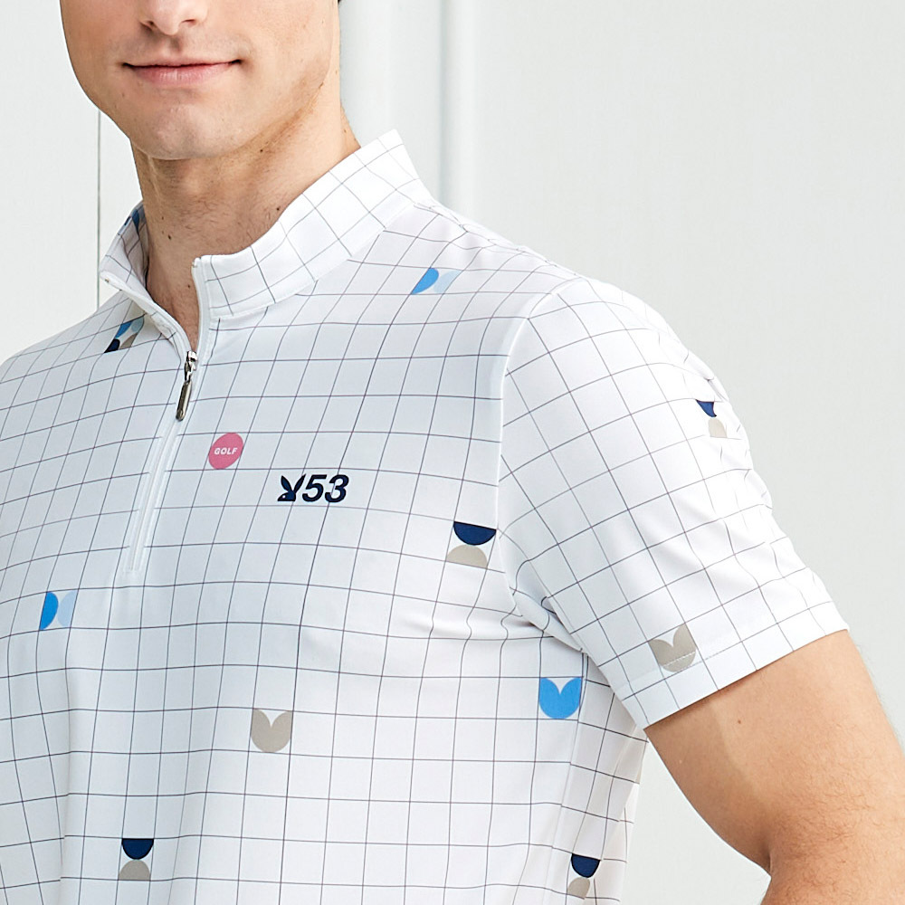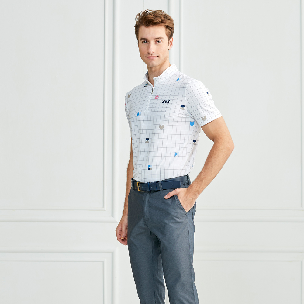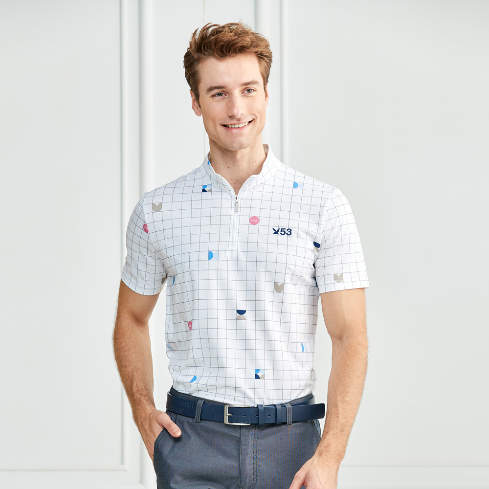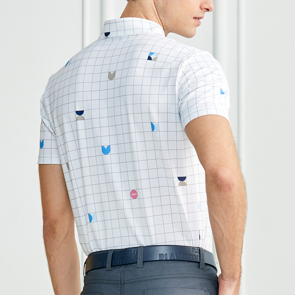 【PLAYBOY GOLF】男款彩色方格立領短袖POLO衫-白 / AA23121-87