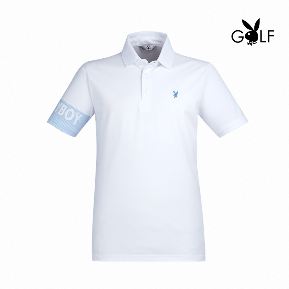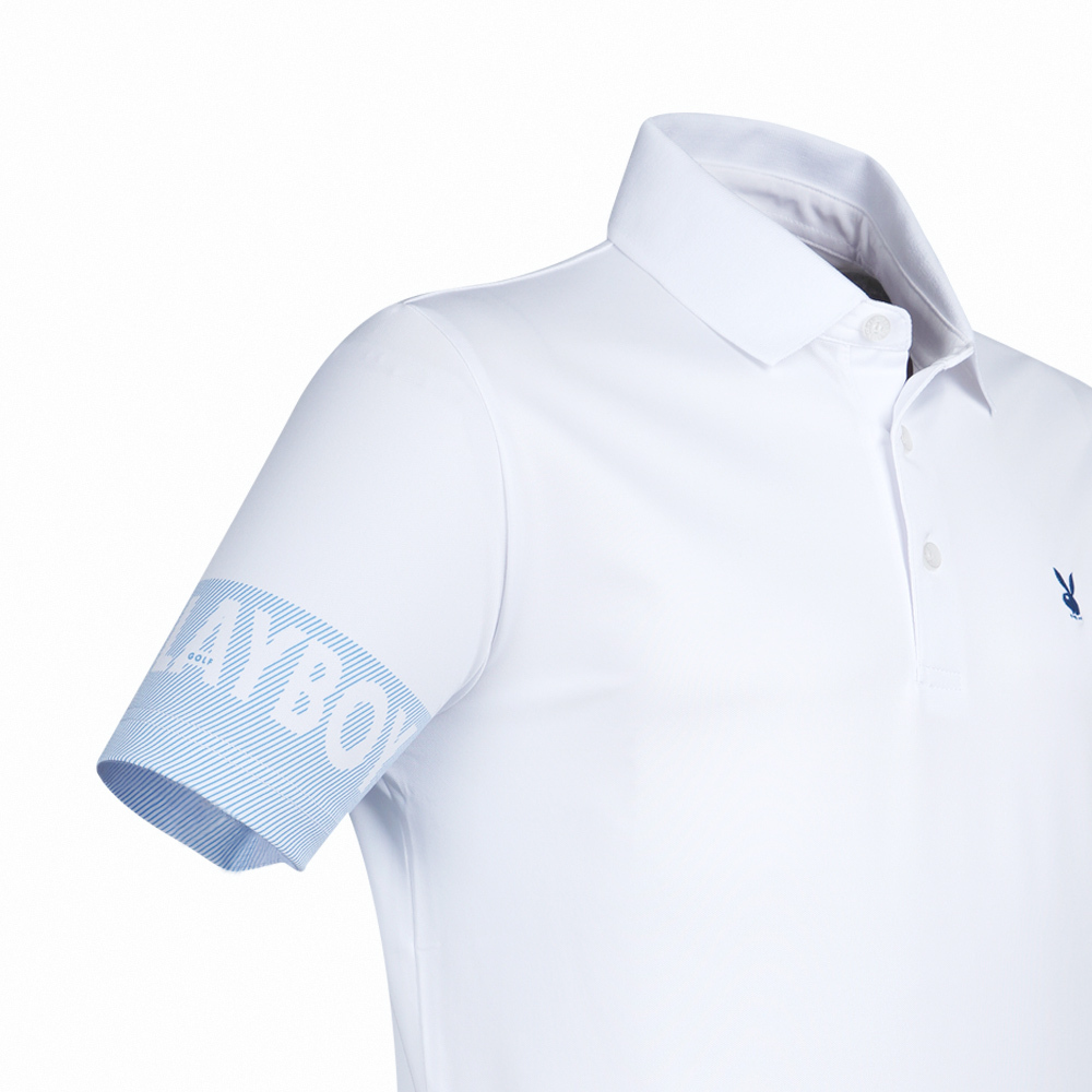 【PLAYBOY GOLF】男款單袖印花短袖POLO衫-白 / AA23191-87