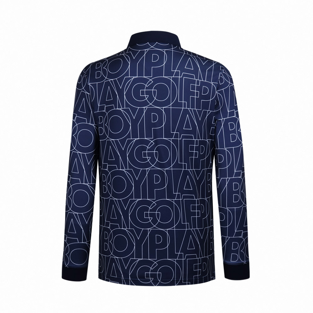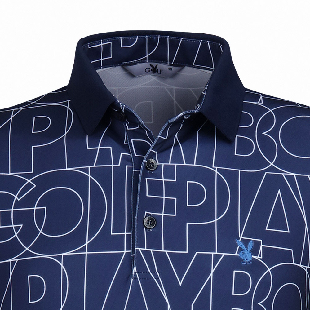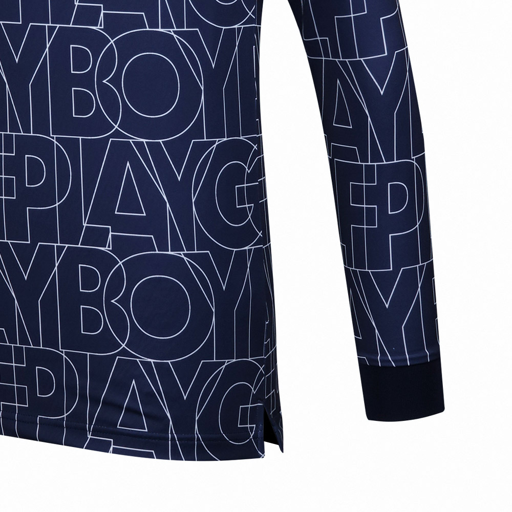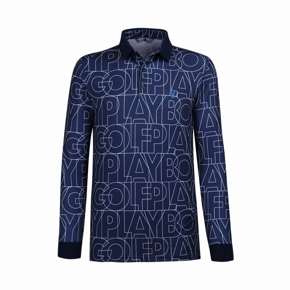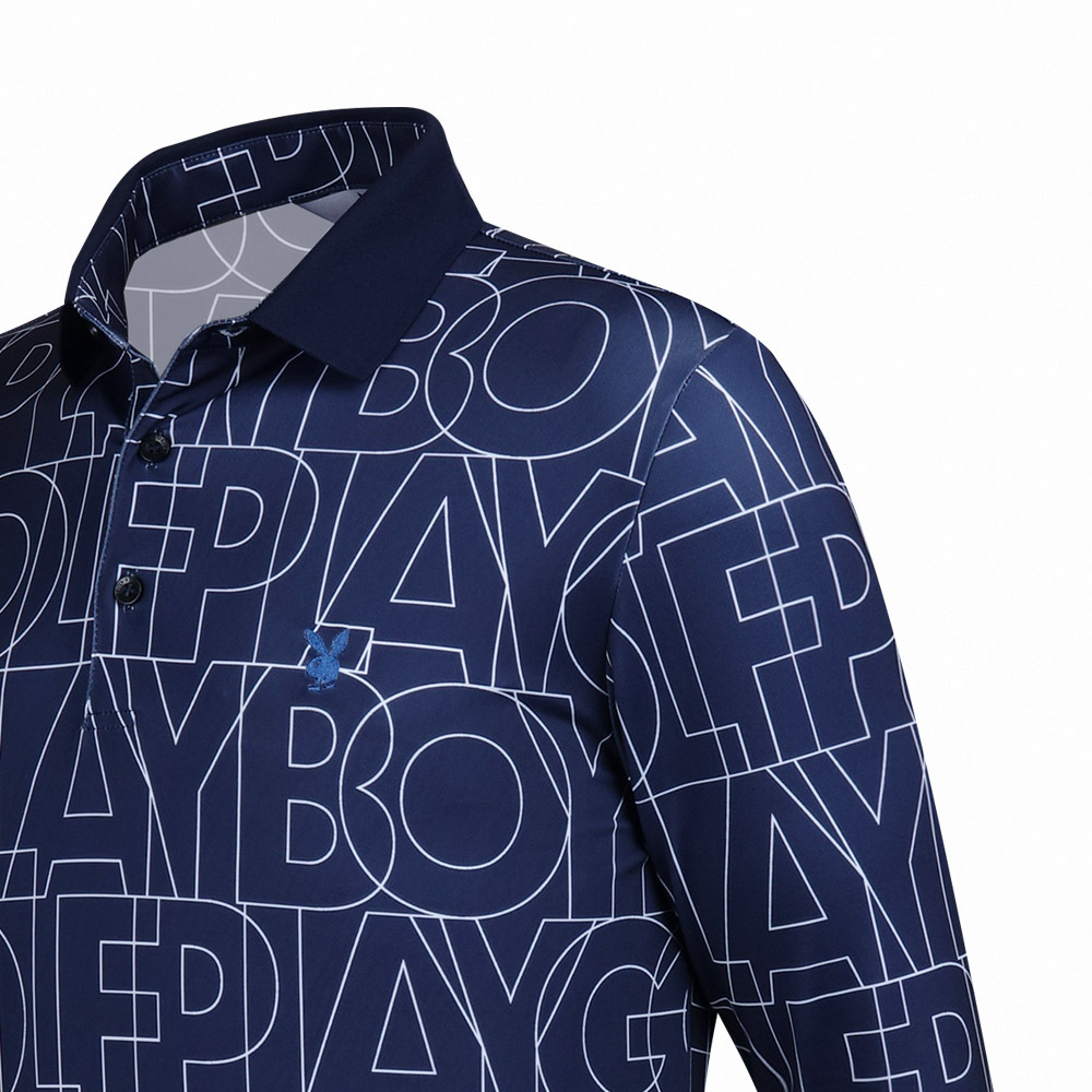 【PLAYBOY GOLF】男款空心字母吸濕排汗長袖POLO衫-深藍/AA23206-58