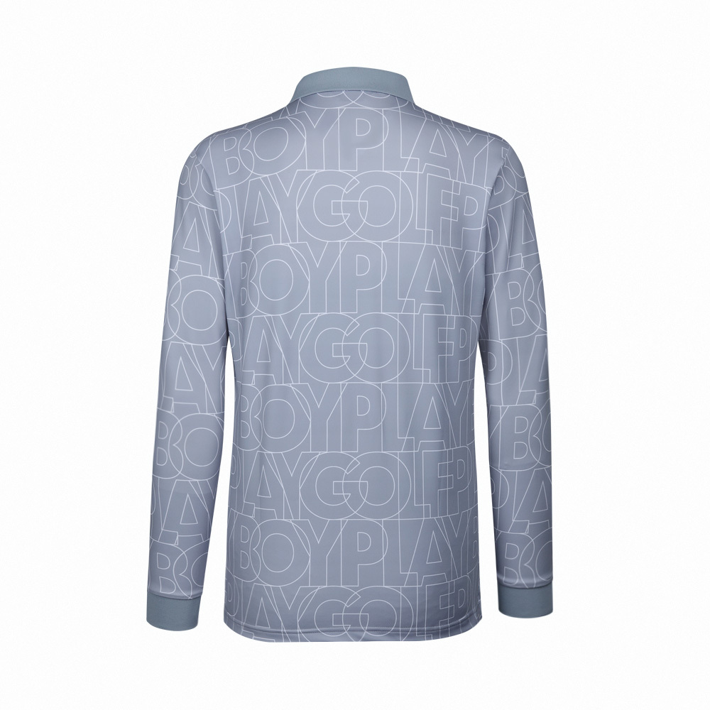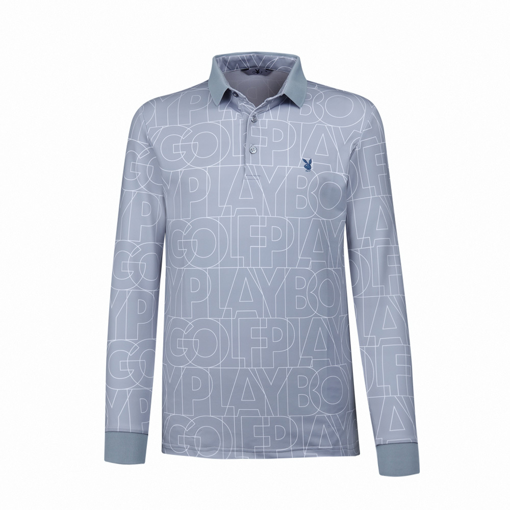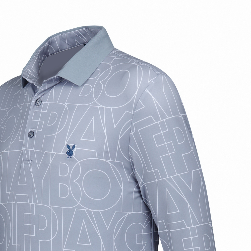 【PLAYBOY GOLF】男款空心字母吸濕排汗長袖POLO衫-灰/AA23206-85