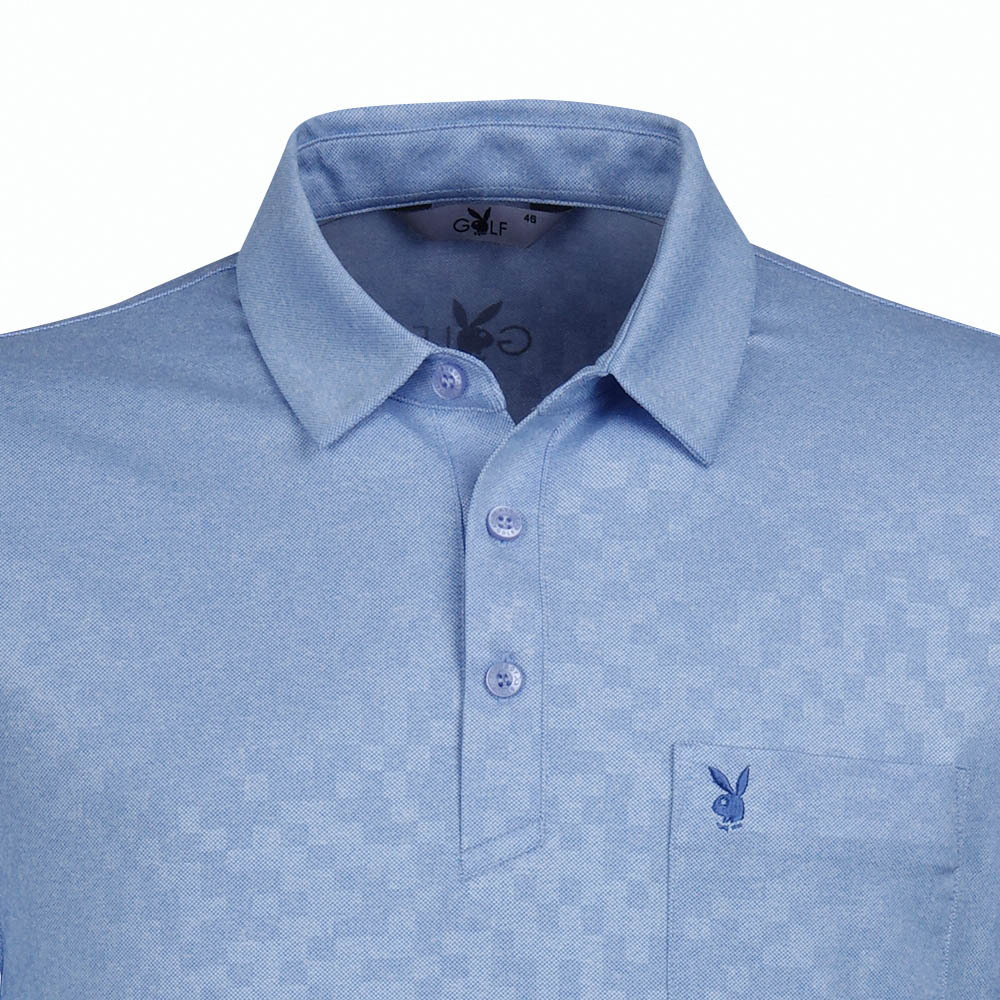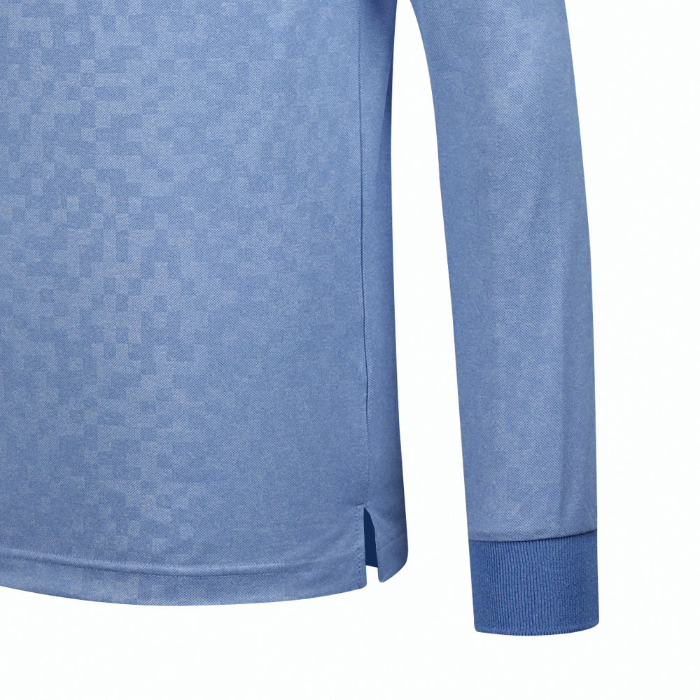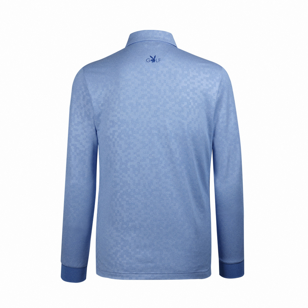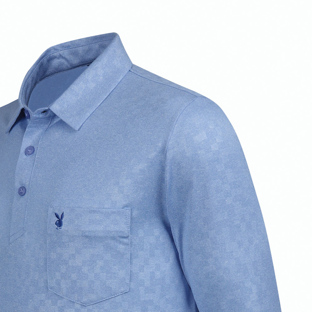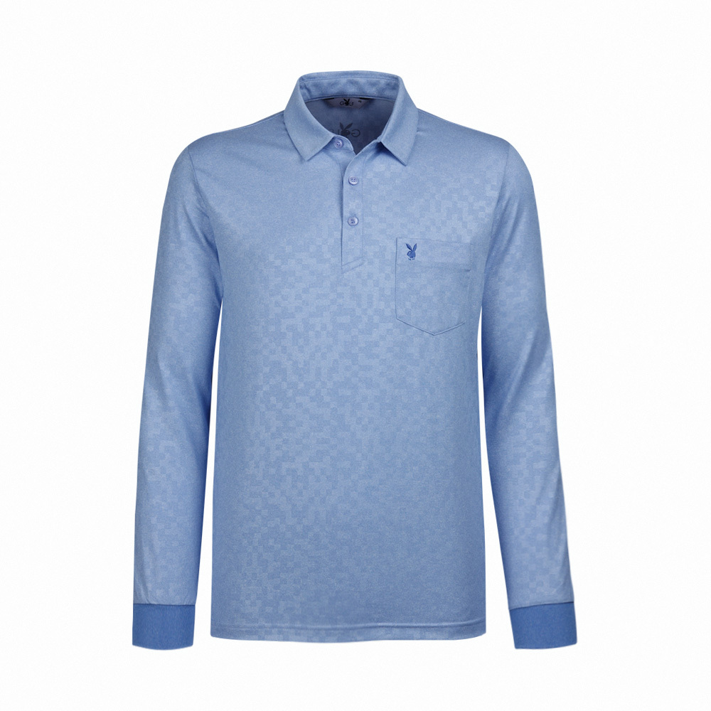 【PLAYBOY GOLF】男款花紗隱形模印吸濕排汗口袋款薄長袖POLO衫-藍/AA23207-53