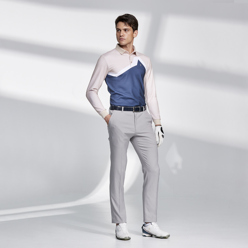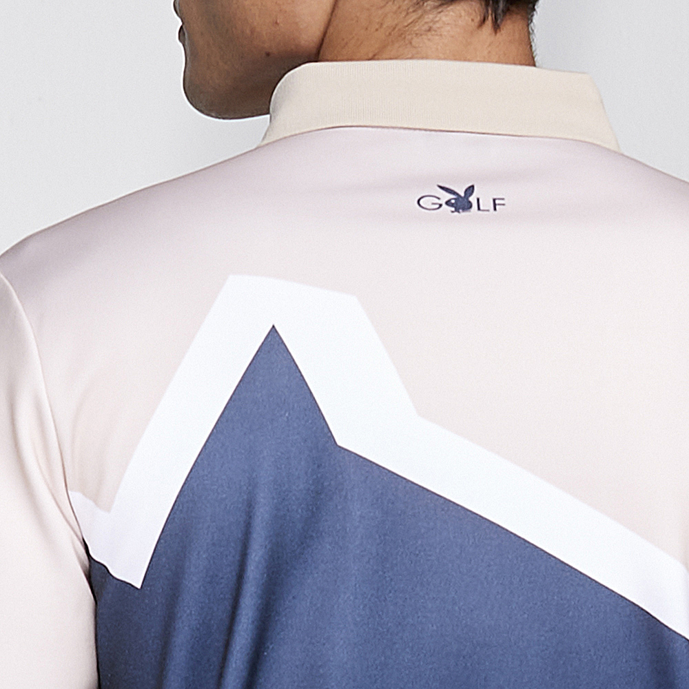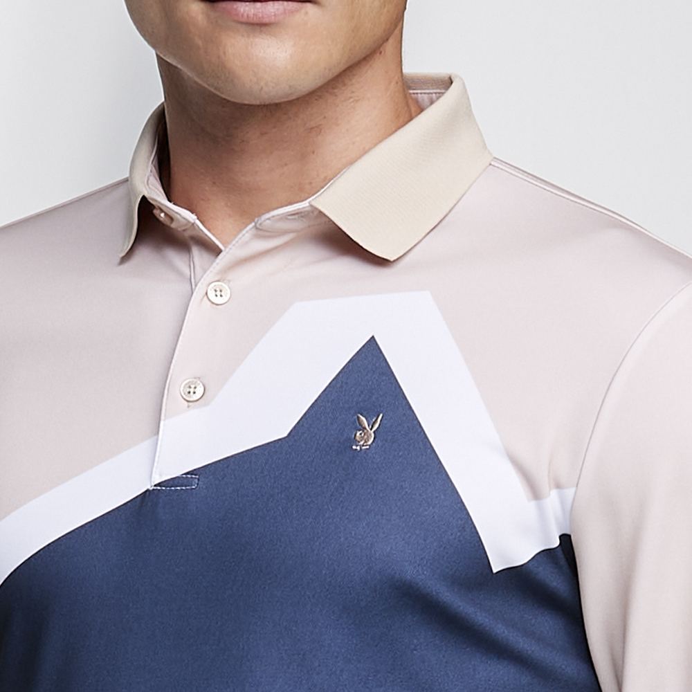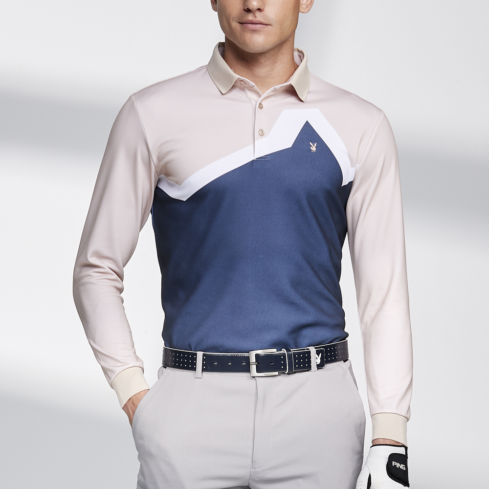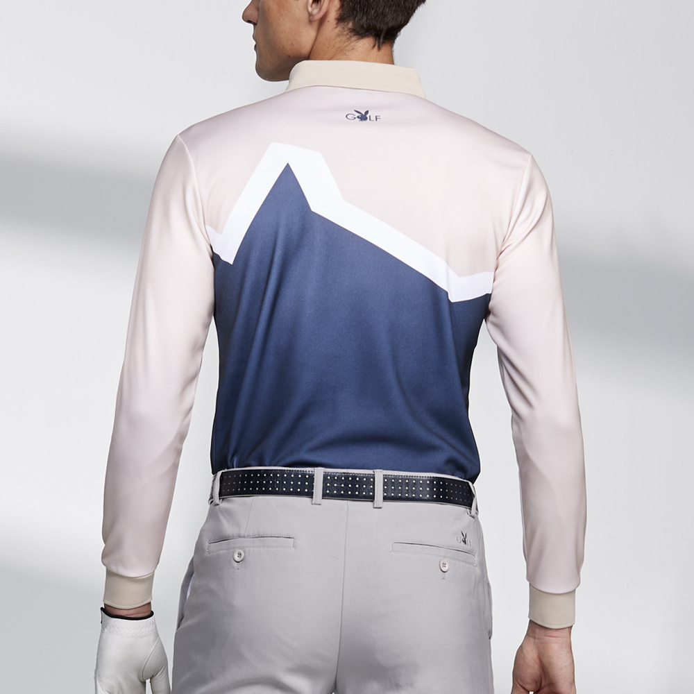 【PLAYBOY GOLF】男款登峰配色圖騰吸濕排汗薄長袖POLO衫-卡其 / AA23210-75