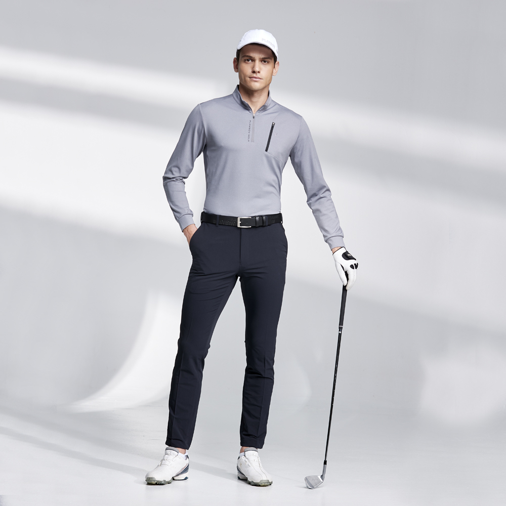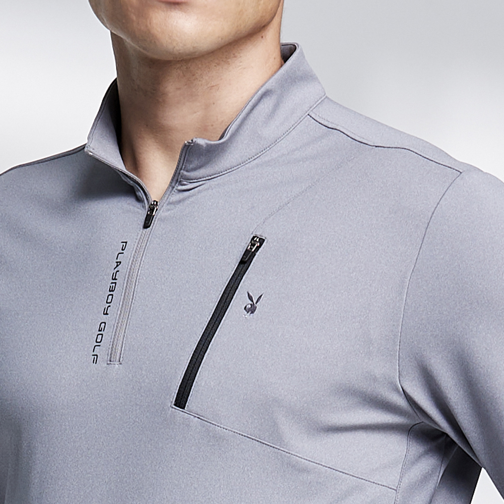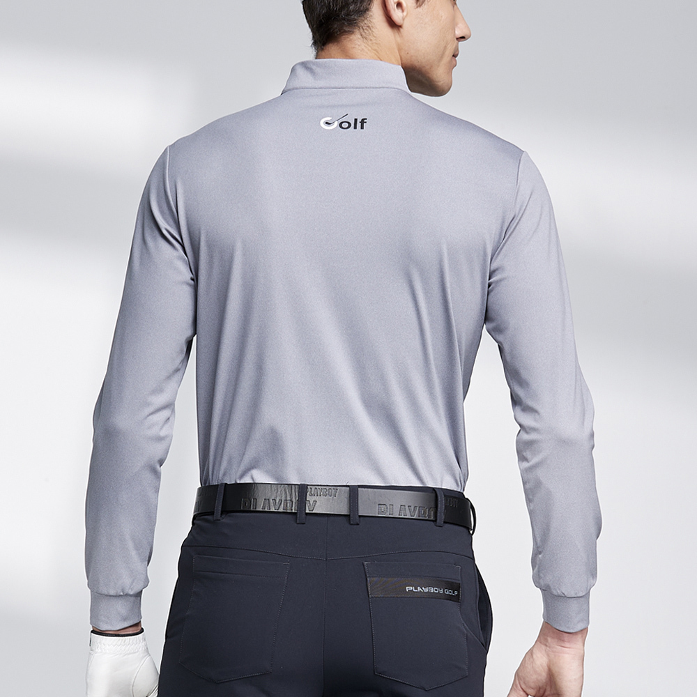 【PLAYBOY GOLF】男款左胸拉鍊剪接吸濕排汗立領長袖POLO衫-灰 / AA23222-85