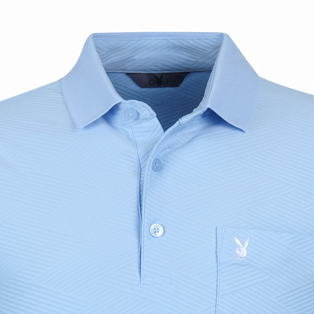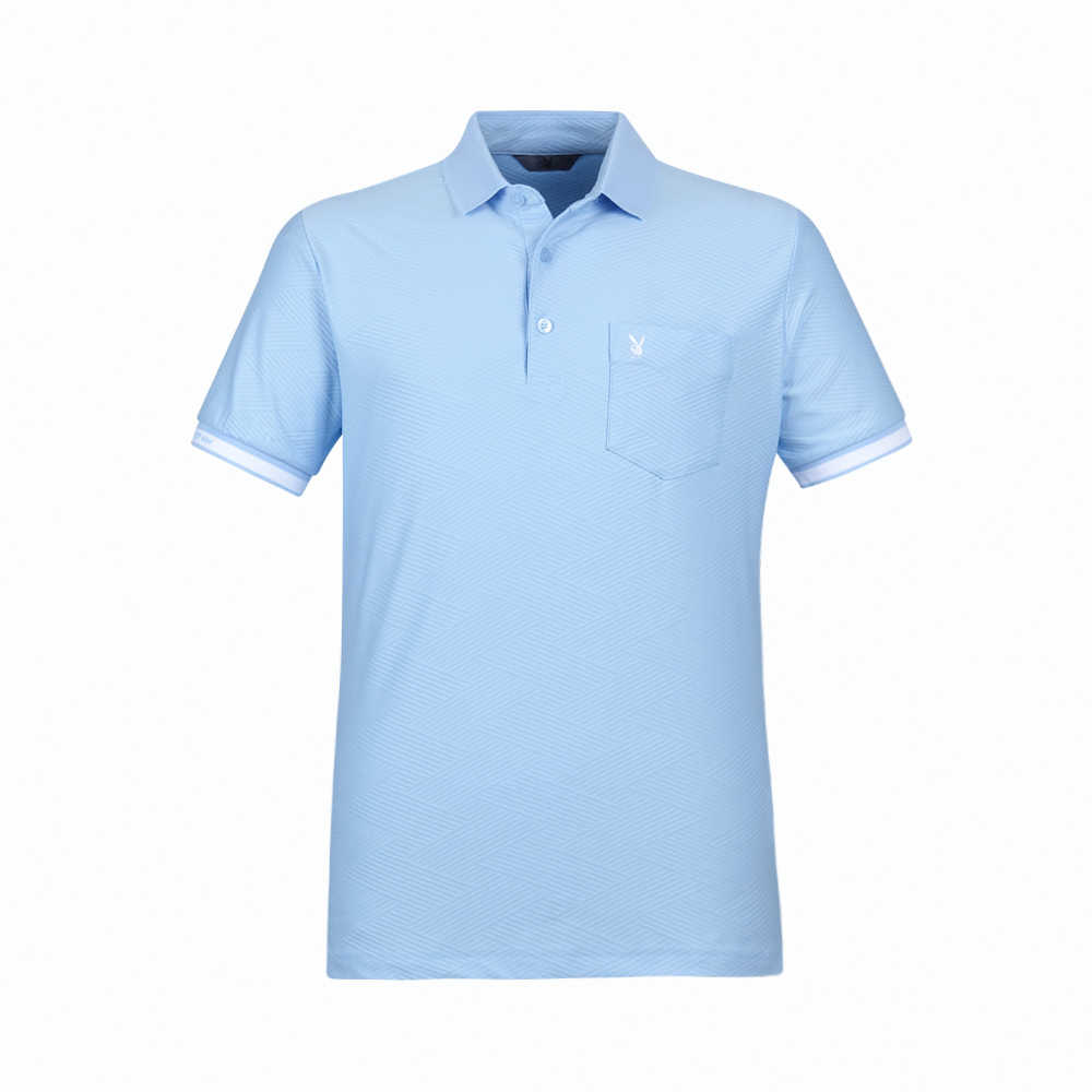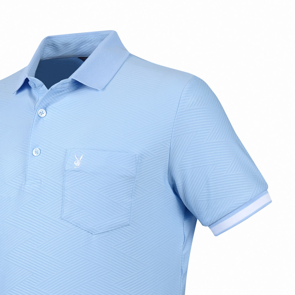 【PLAYBOY GOLF】男款經典LOGO斜紋布口袋短袖POLO衫-藍 / AA24101-55