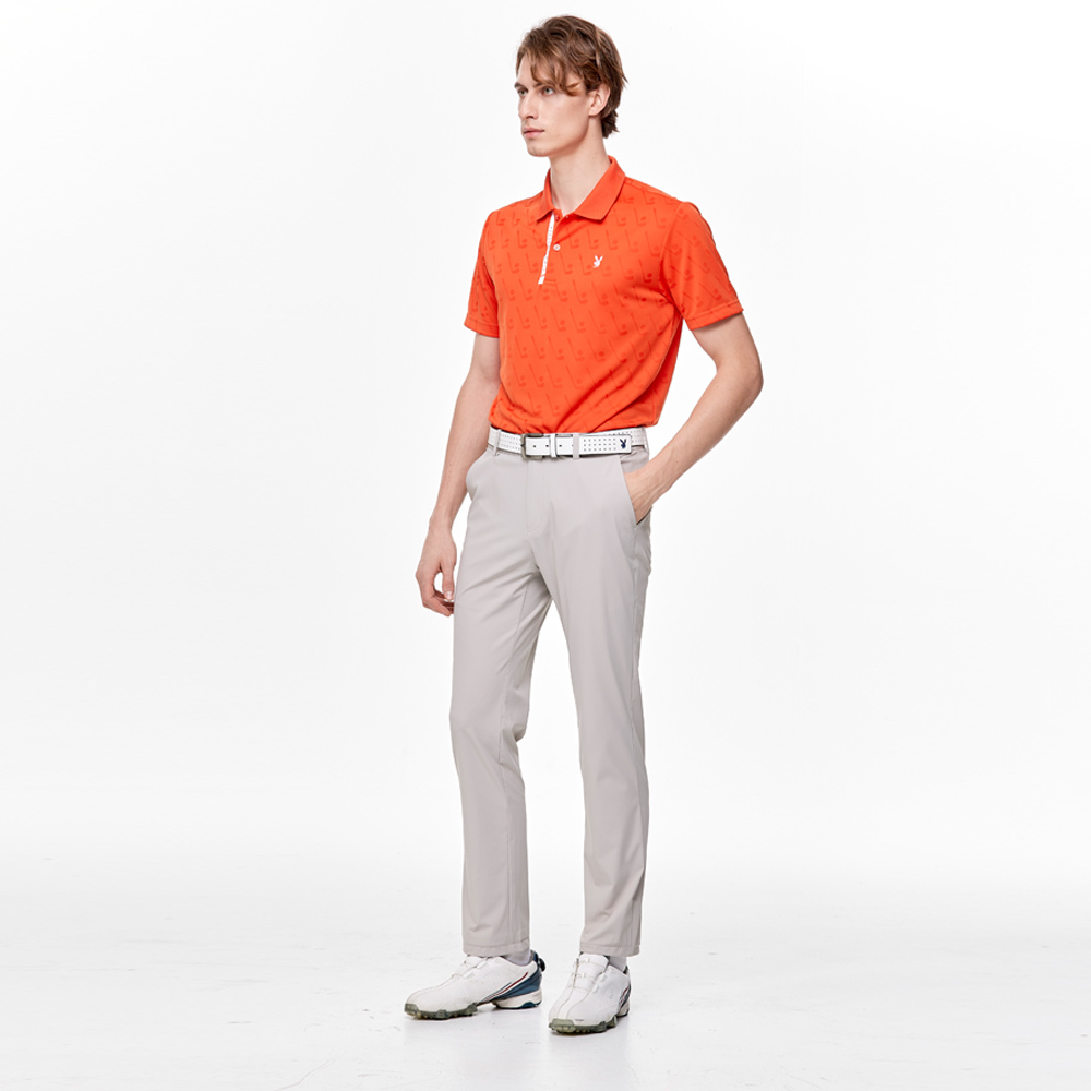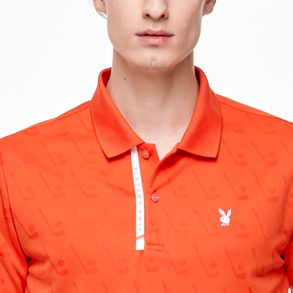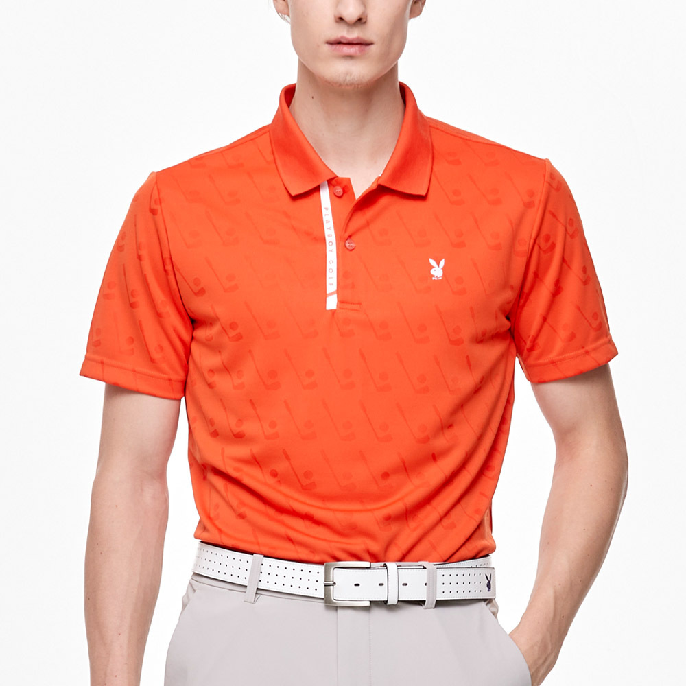 【PLAYBOY GOLF】男款緹花布高爾夫短袖POLO衫-橘 / AA24103-28