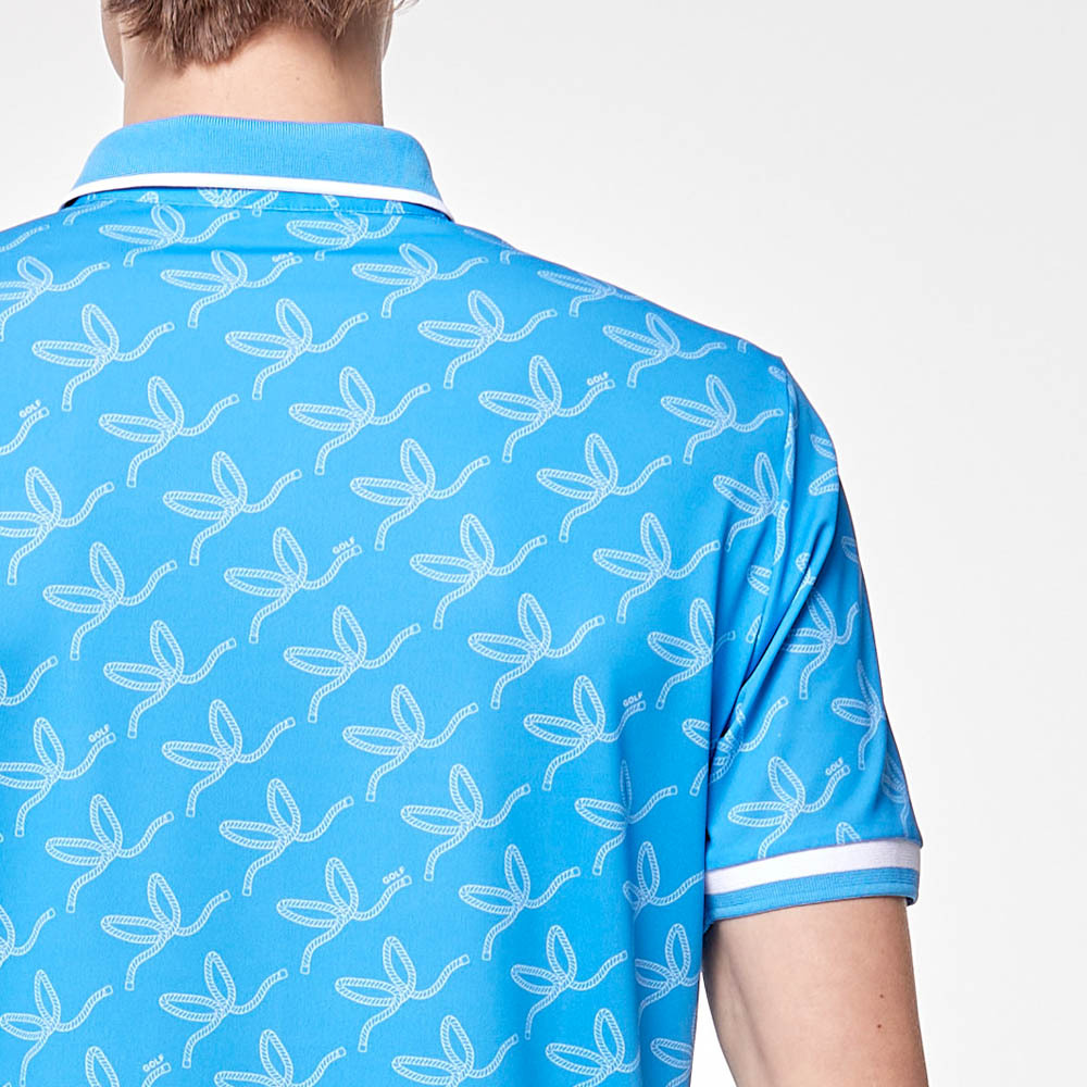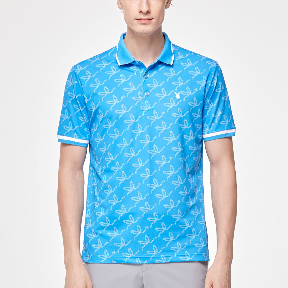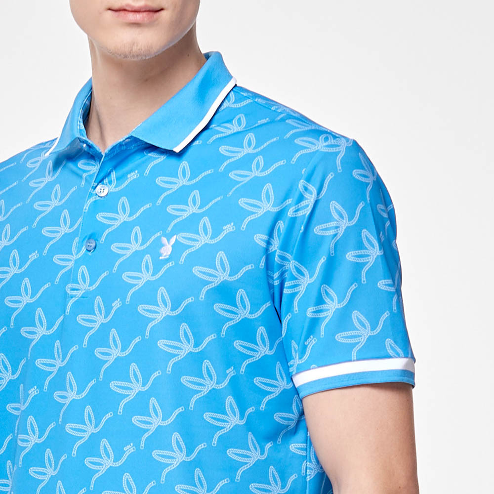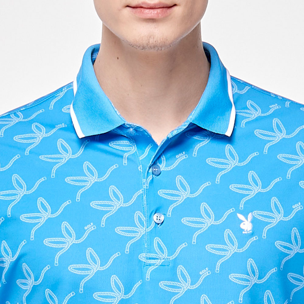 【PLAYBOY GOLF】男款繩索吸濕排汗抗UV高爾夫短袖POLO衫-藍 / AA24108-56