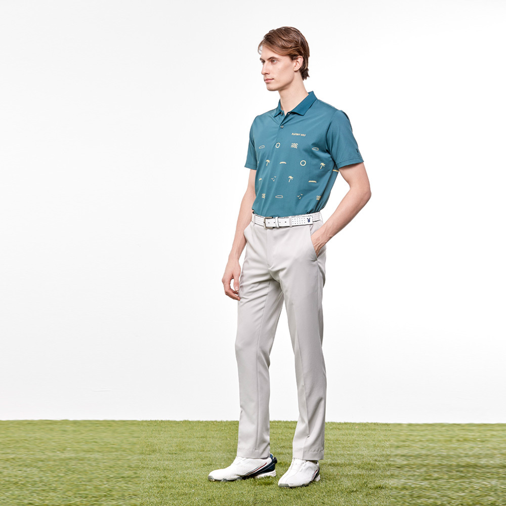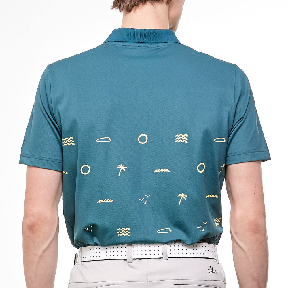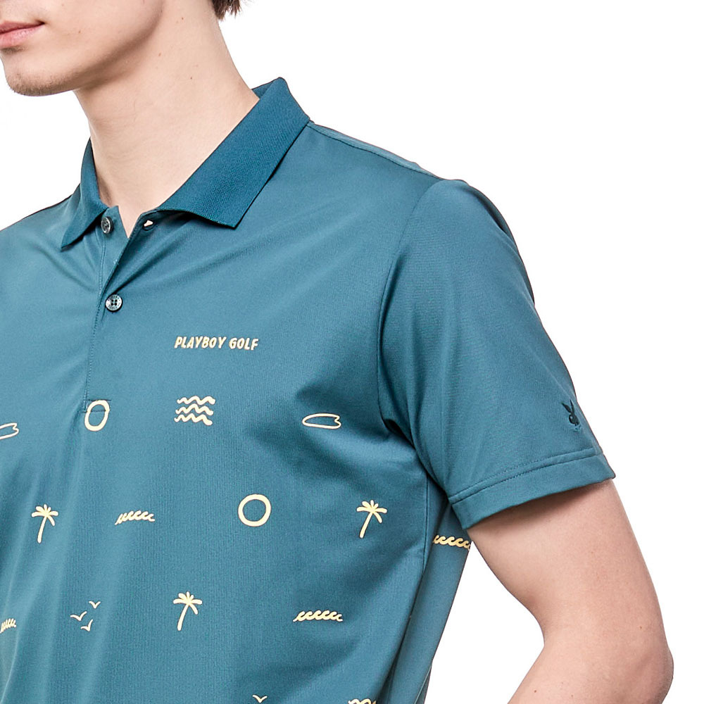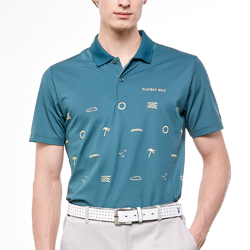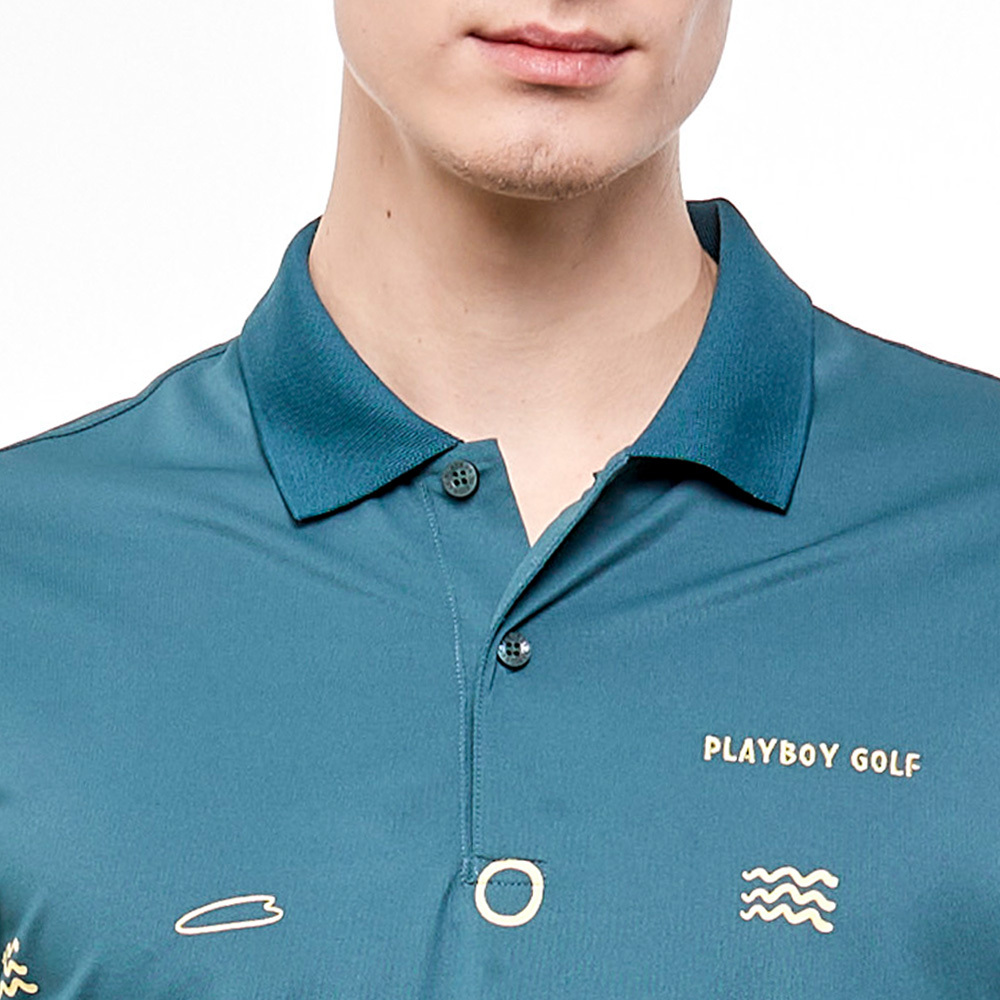 【PLAYBOY GOLF】男款海洋印花吸濕排汗抗UV短袖POLO衫-綠 / AA24110-48