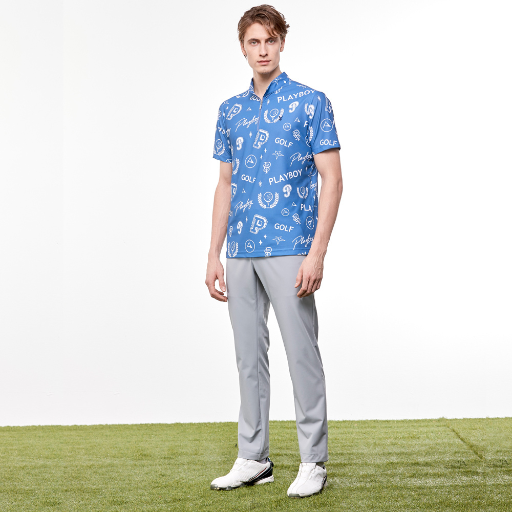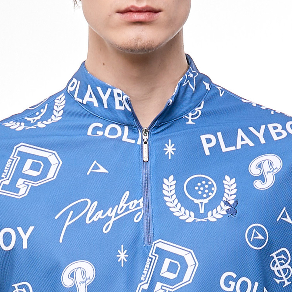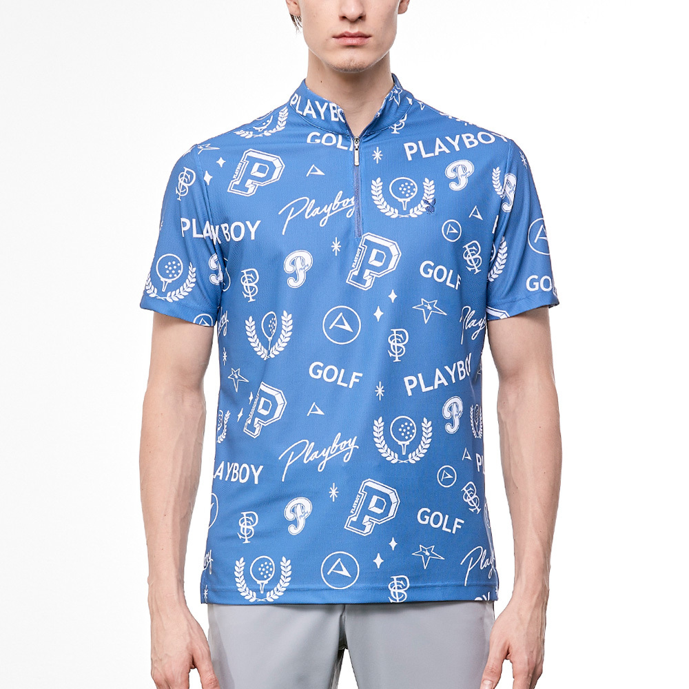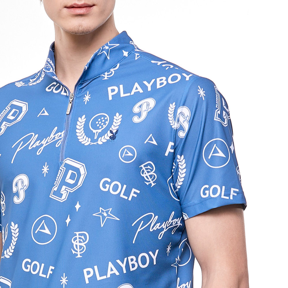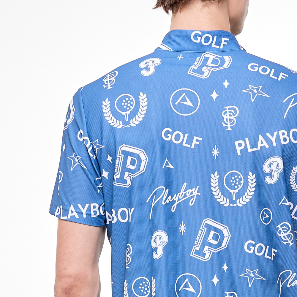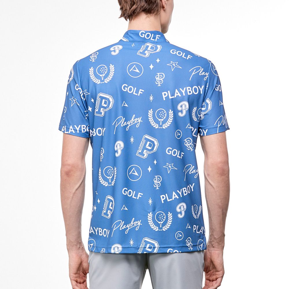 【PLAYBOY GOLF】男款潮流塗鴉高爾夫短袖POLO衫-藍 / AA24123-56