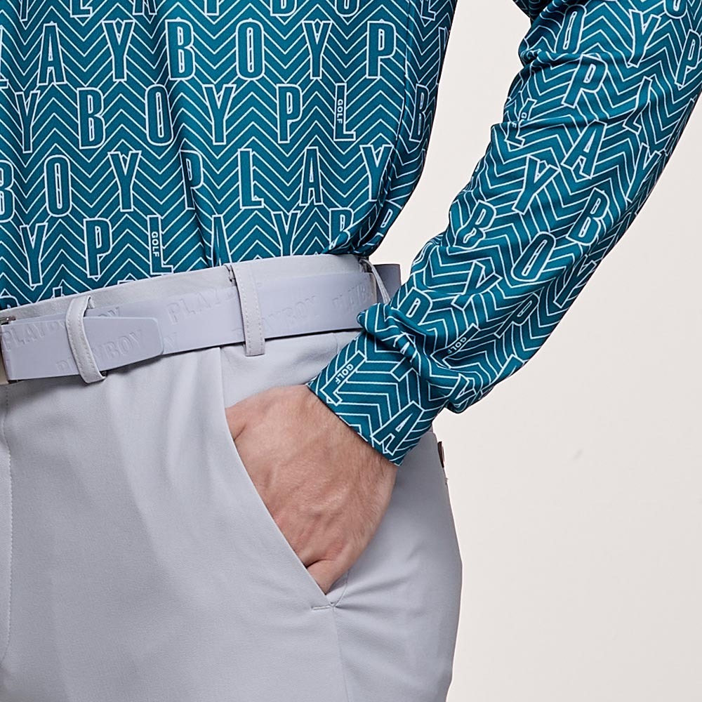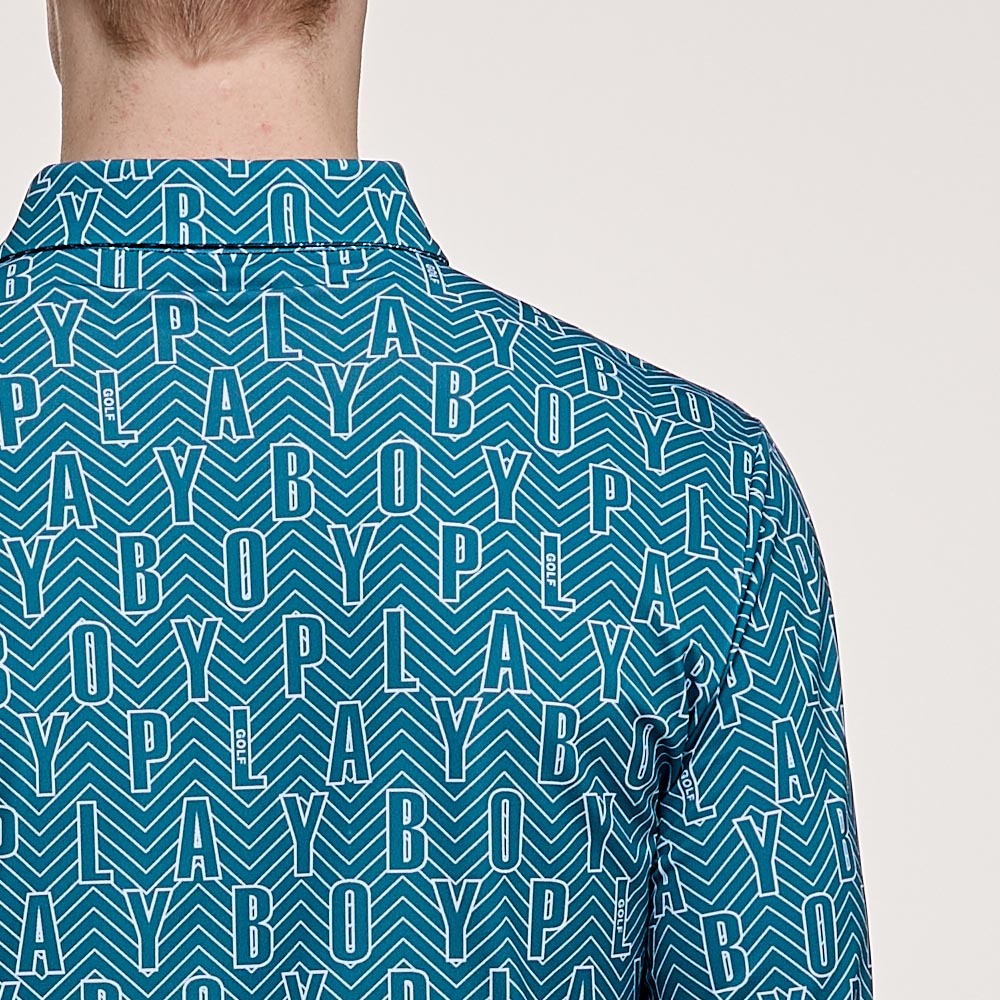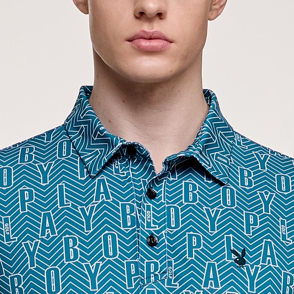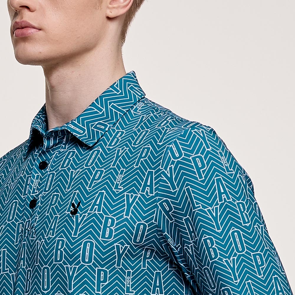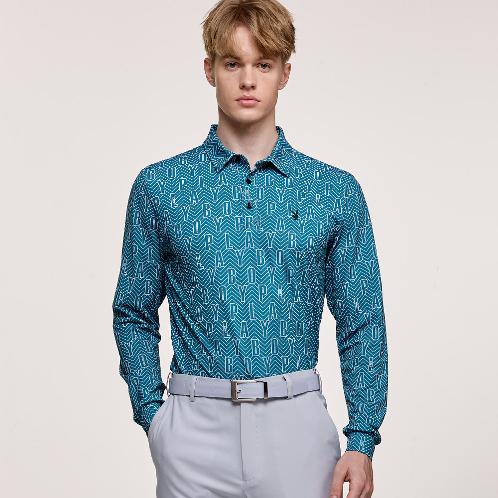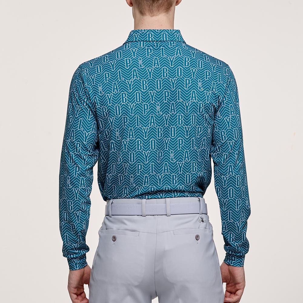 【PLAYBOY GOLF】男款字母幾何線條抗UV高爾夫薄長袖POLO衫-綠 / AA24203-48
