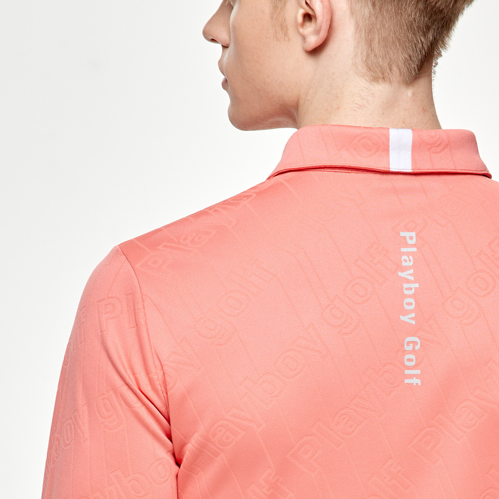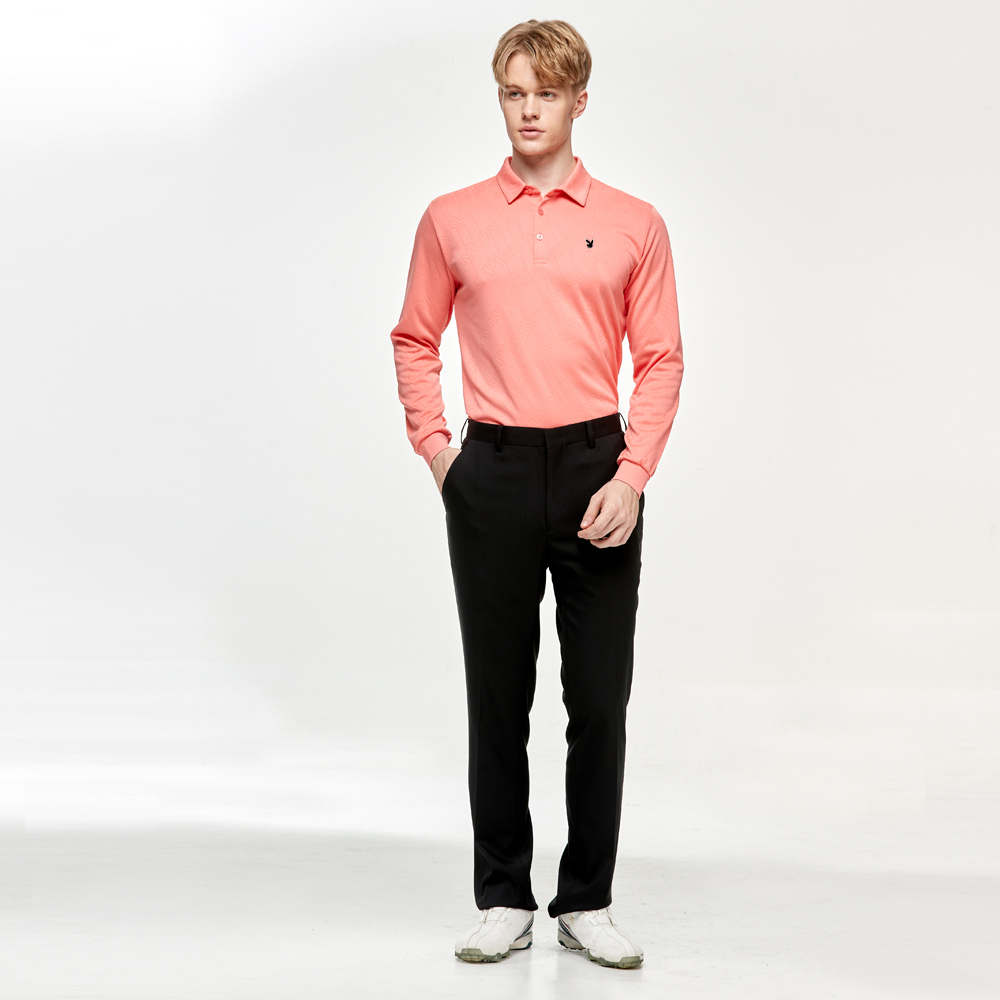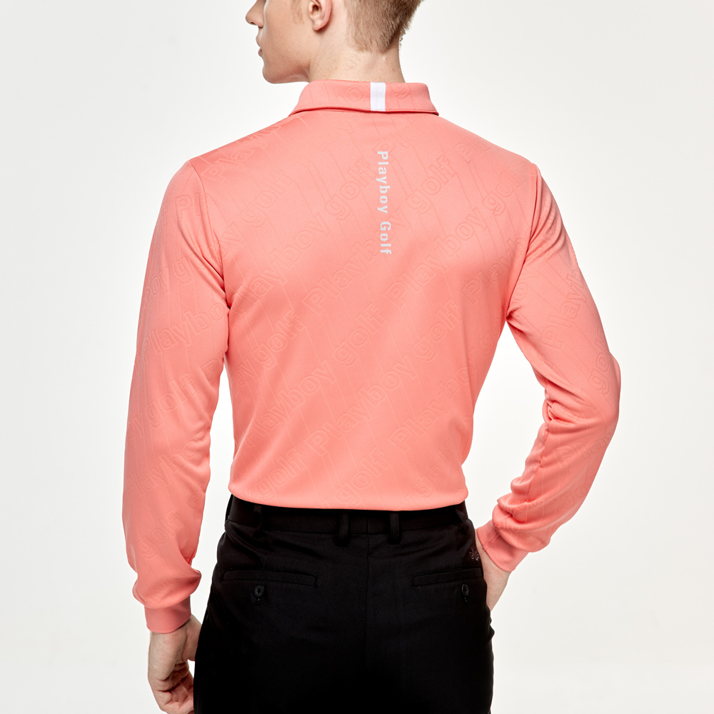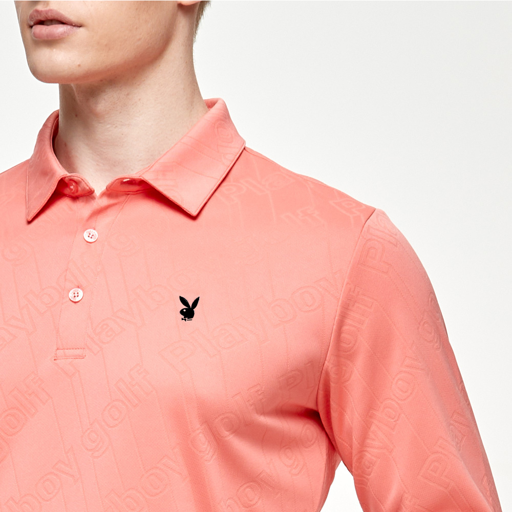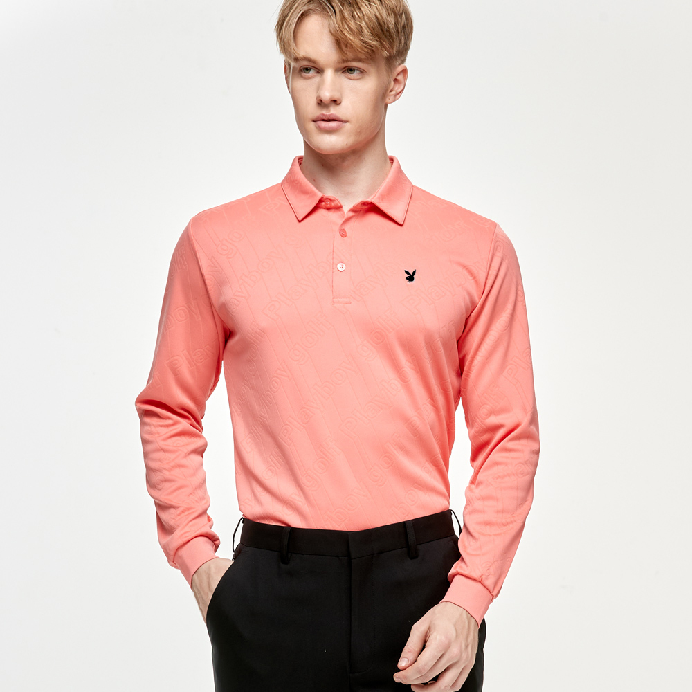 【PLAYBOY GOLF】男款LOGO緹花高爾夫長袖POLO衫-橘 / AA24205-25