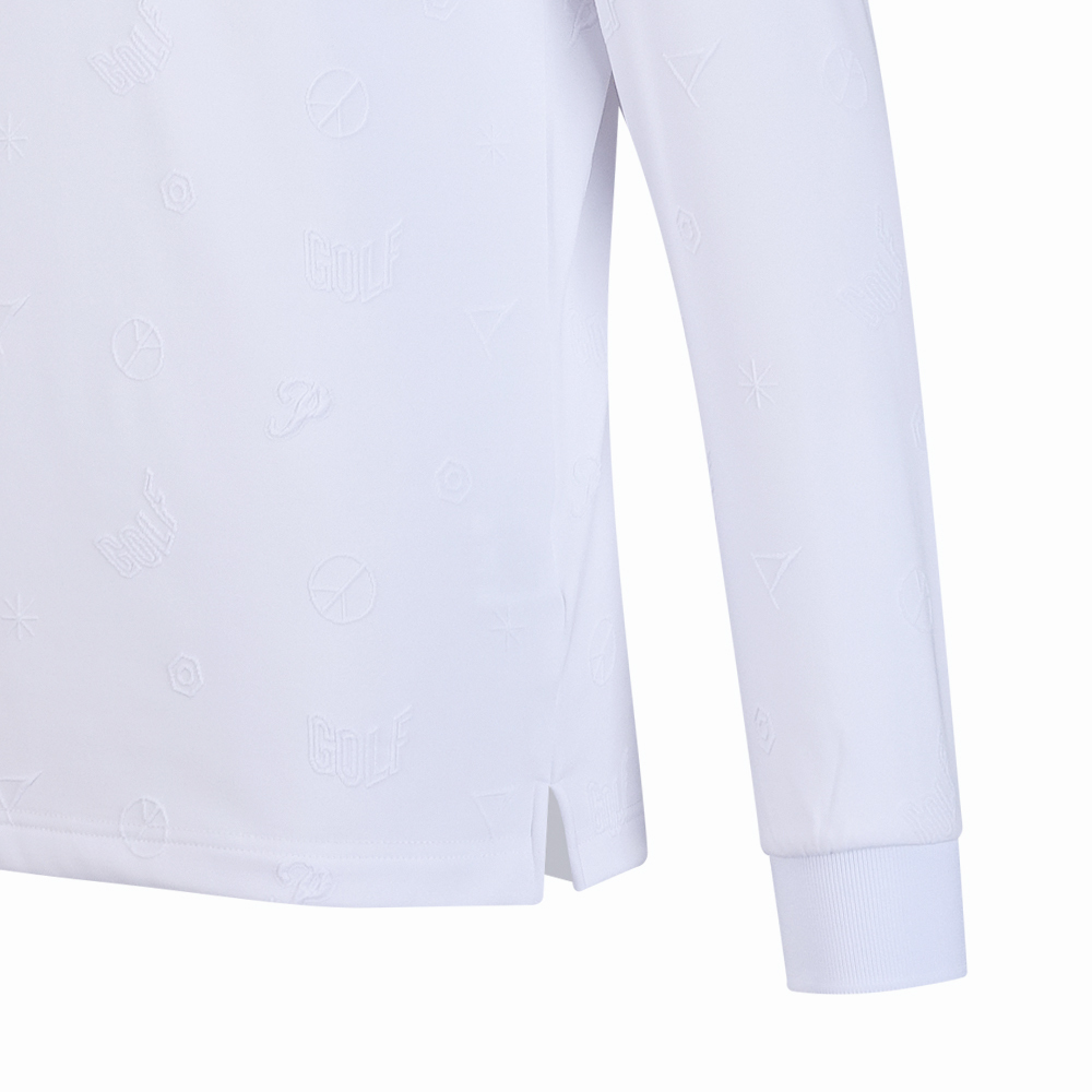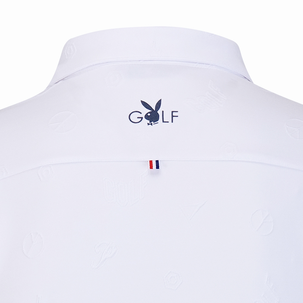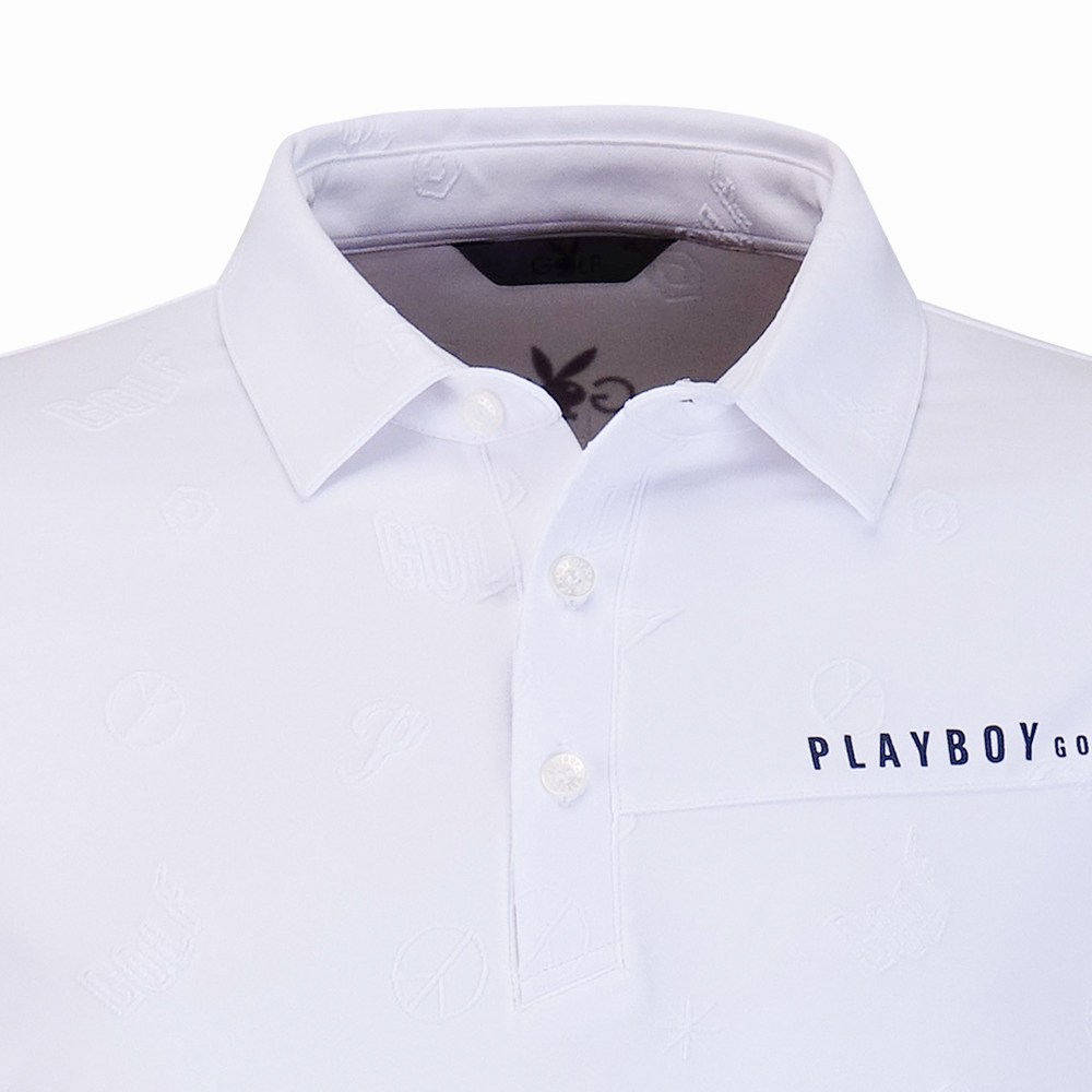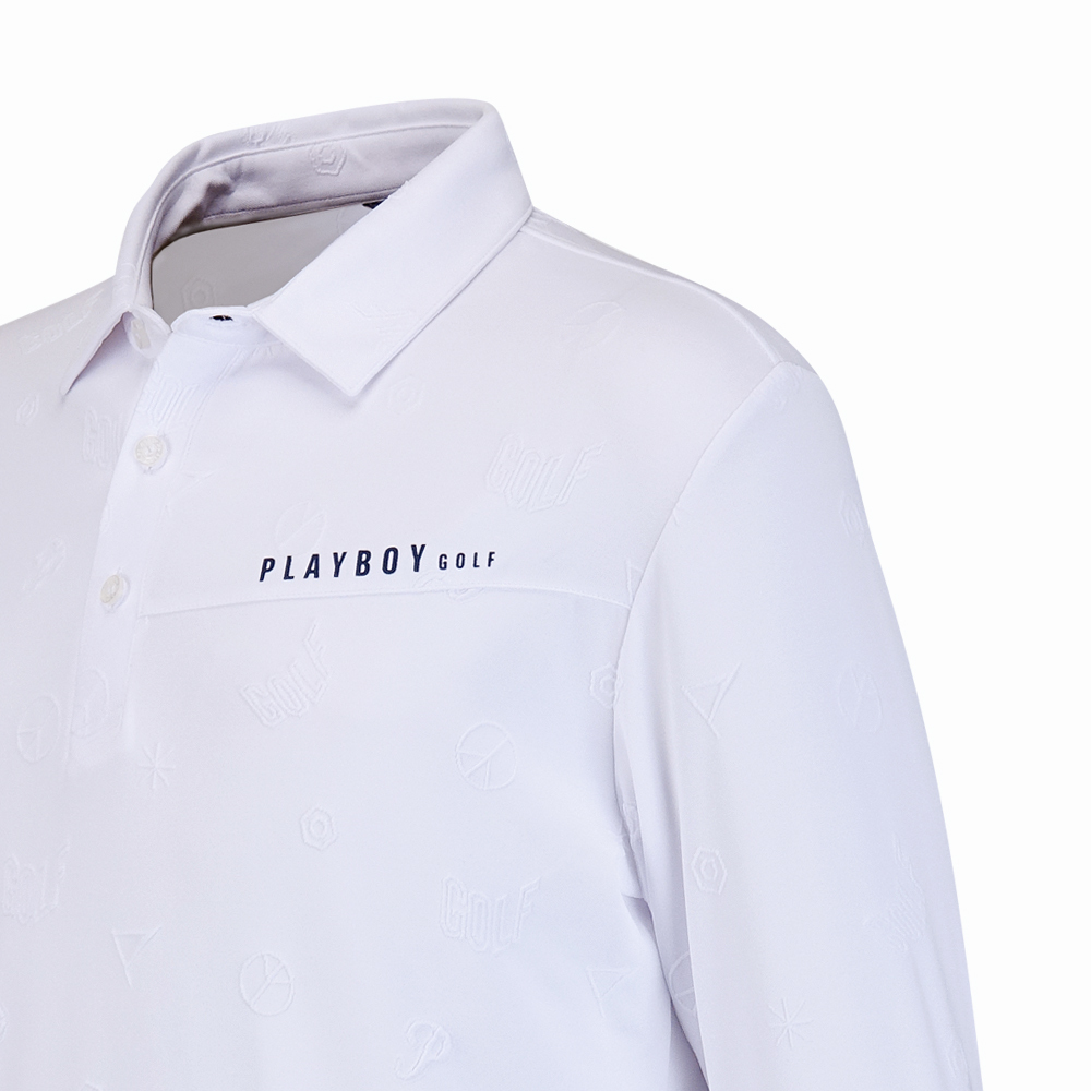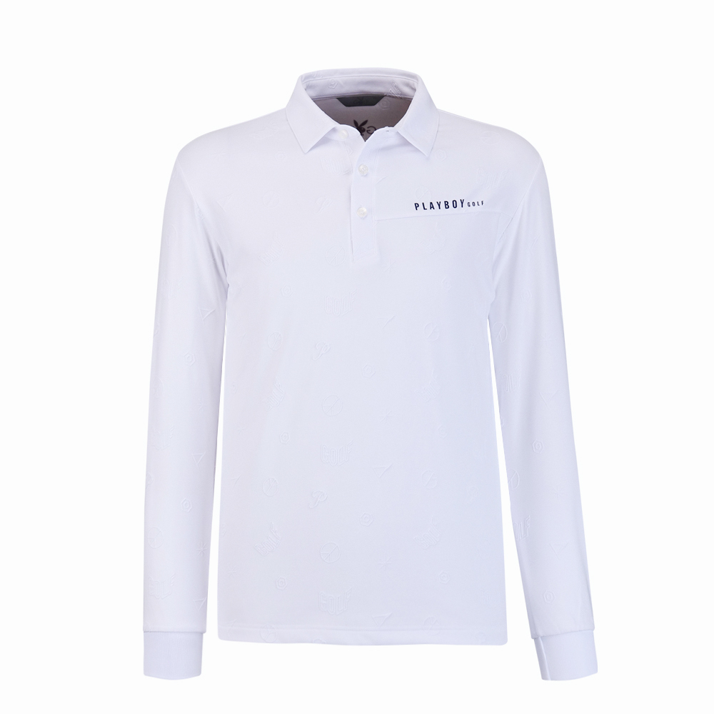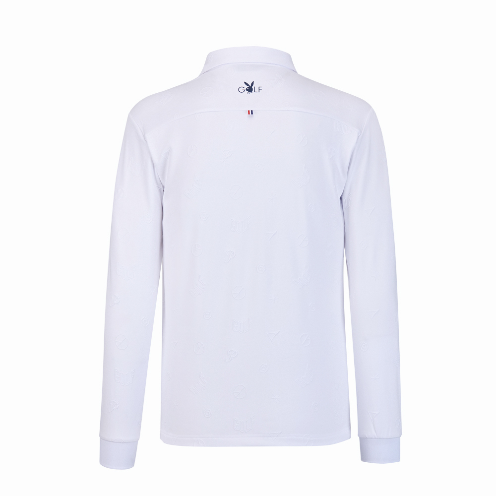 【PLAYBOY GOLF】男款雙面緹花吸濕排汗高爾夫長袖POLO衫-白 / AA24206-73