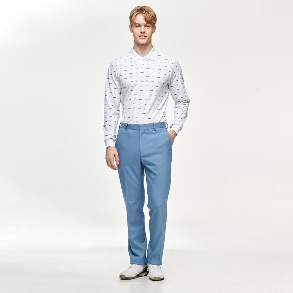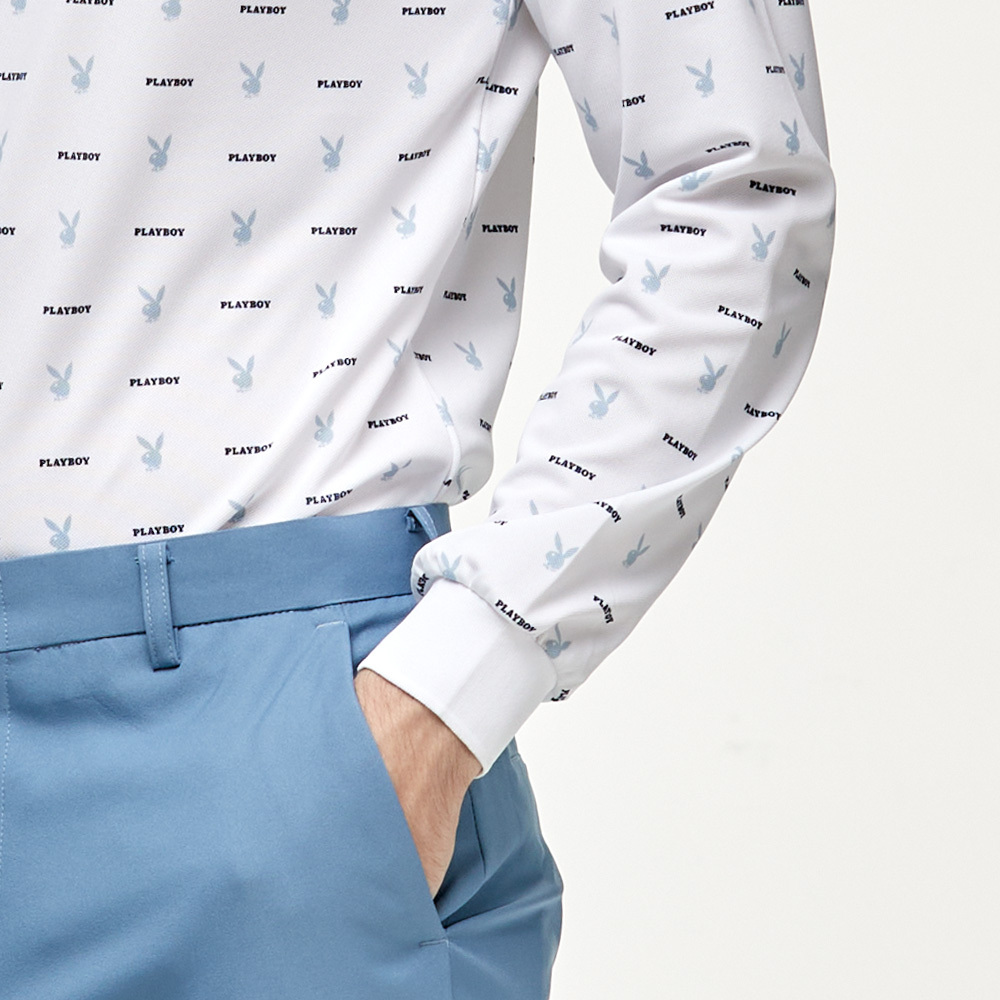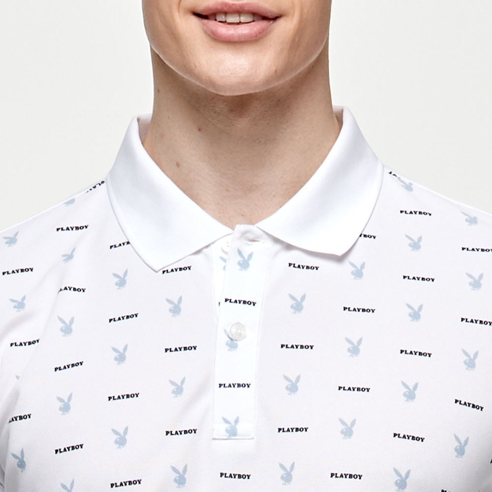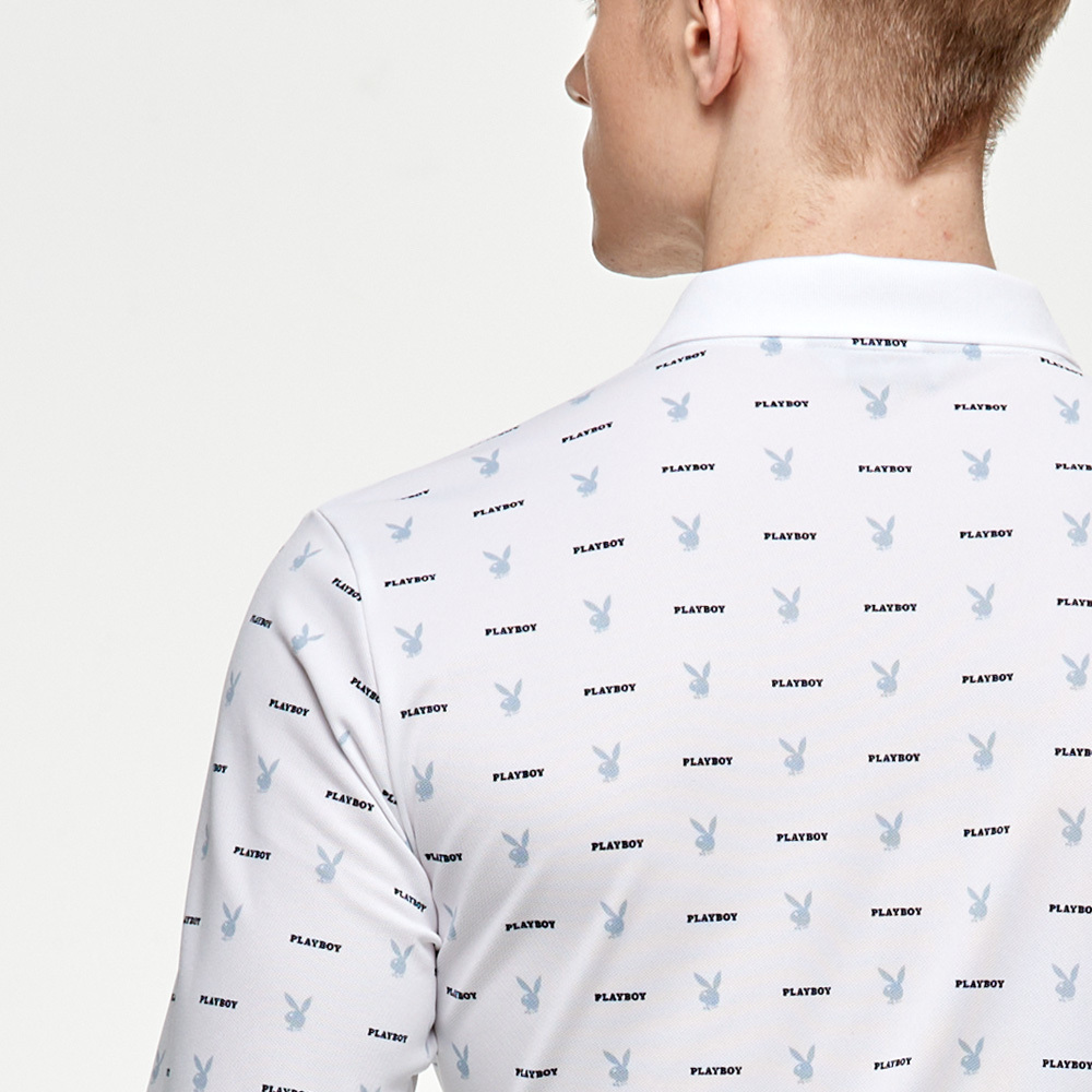 【PLAYBOY GOLF】男款LOGO兔頭印花高爾夫薄長袖POLO衫-白 / AA24209-87