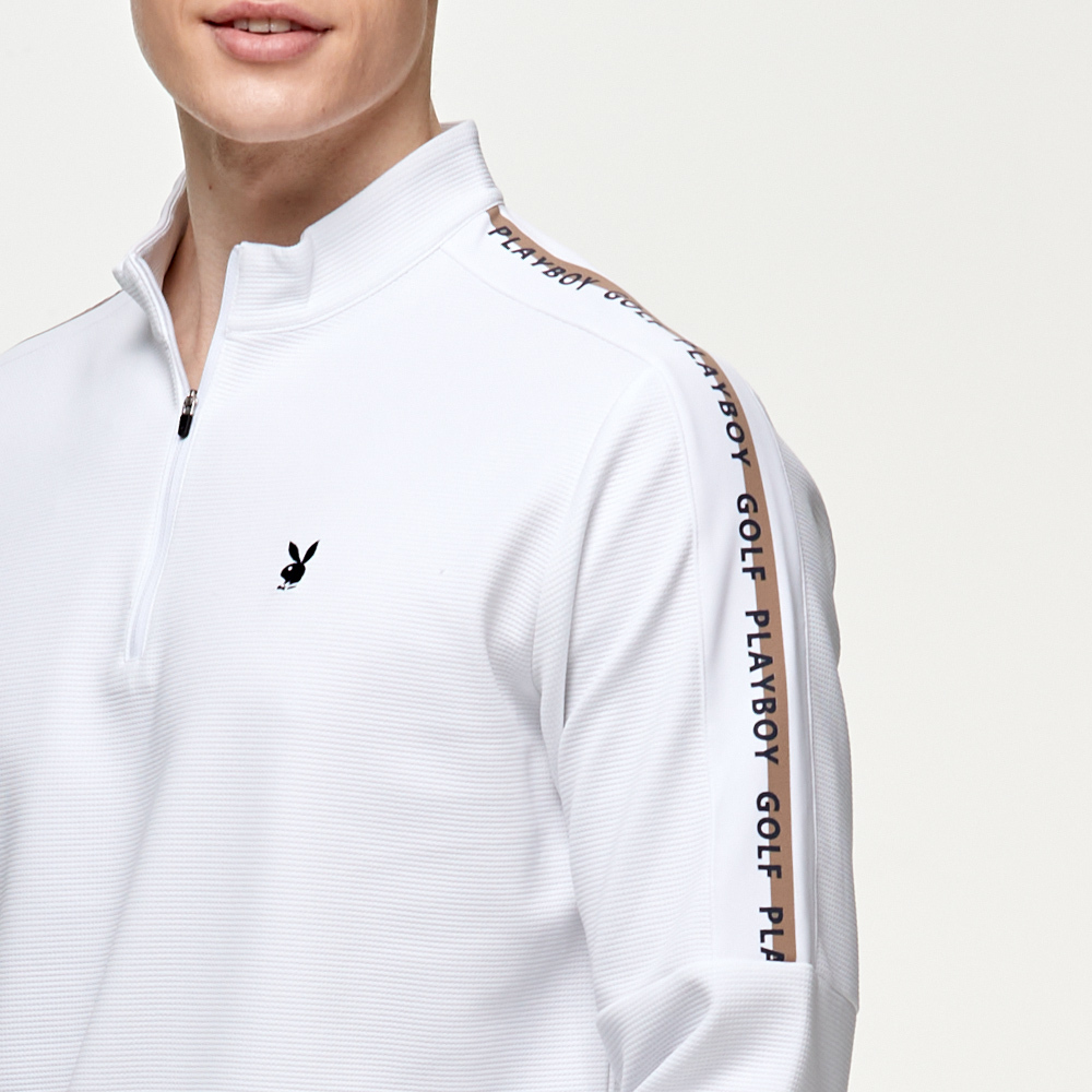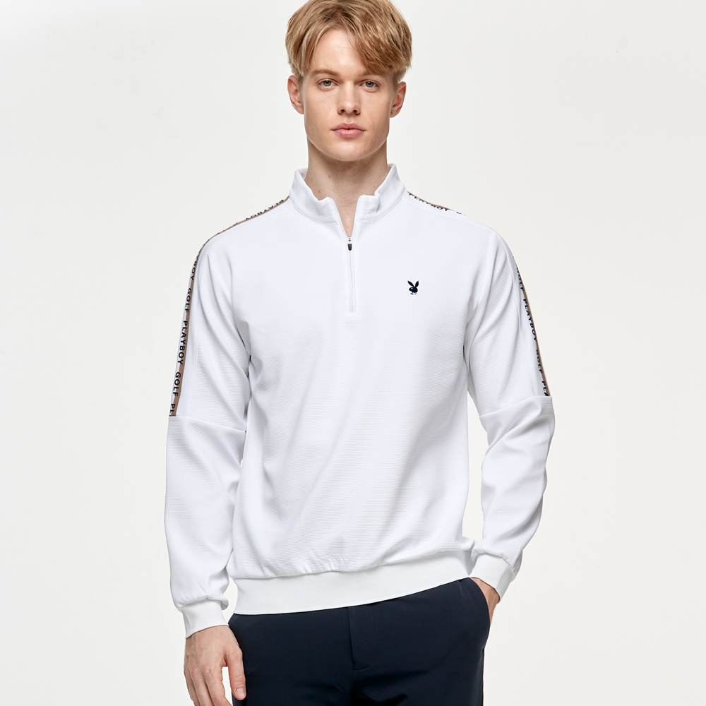 【PLAYBOY GOLF】男款剪接印花蓄熱保暖立領長袖厚上衣-白 / AA24225-87