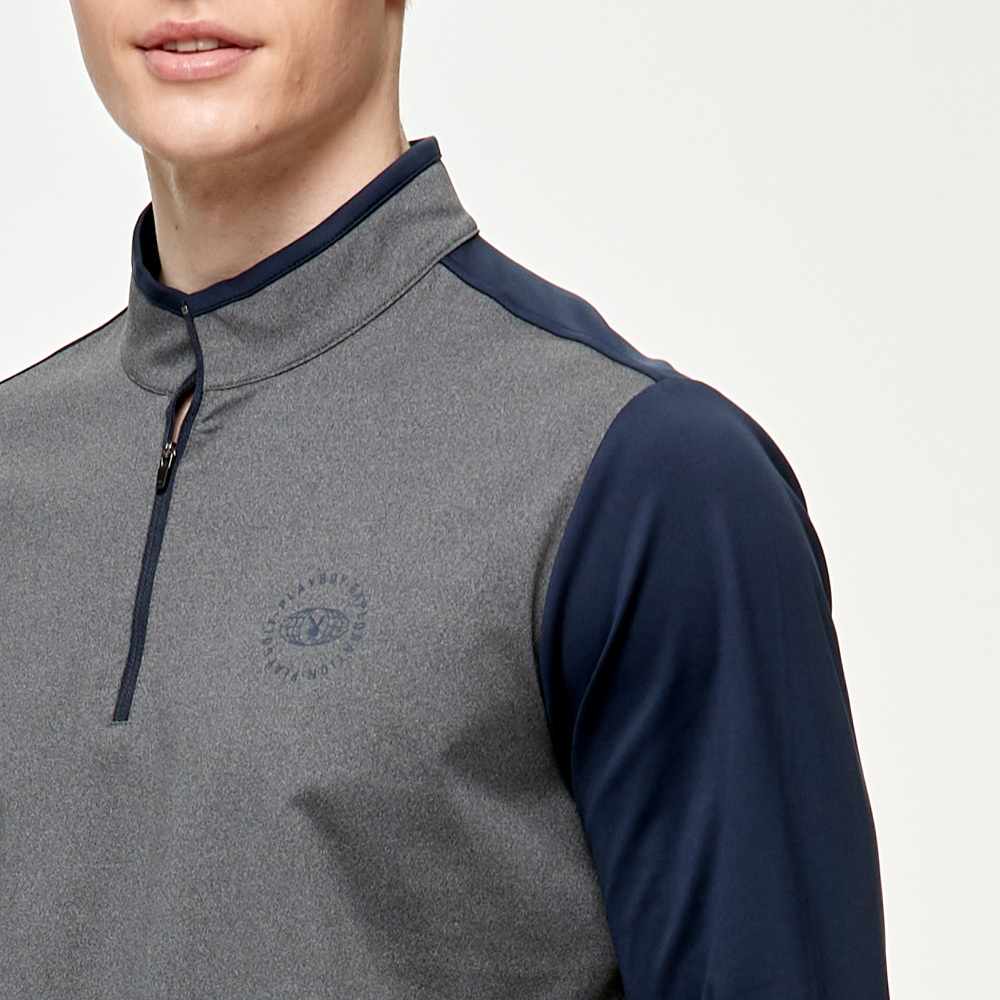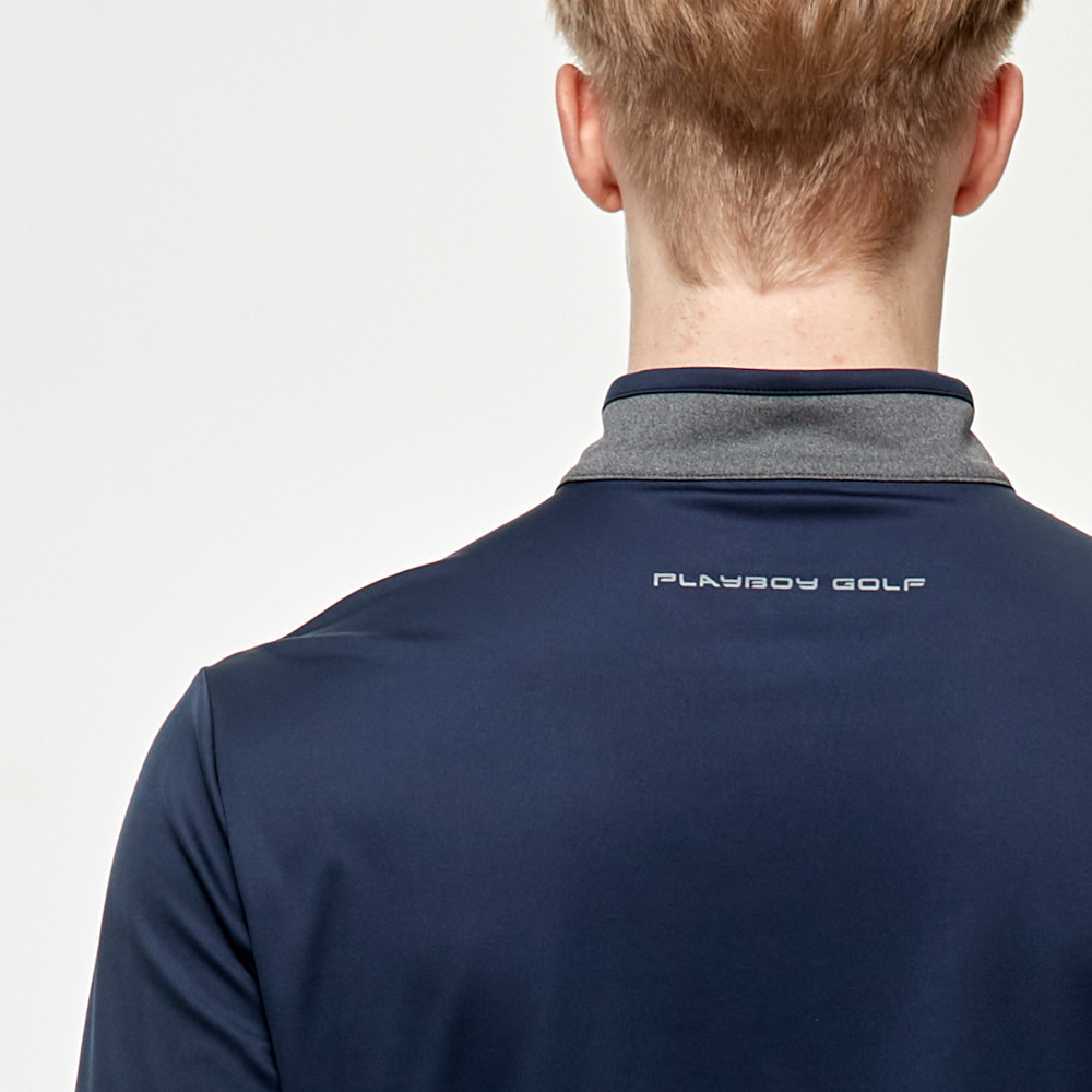 【PLAYBOY GOLF】男款運動學院風蓄熱保暖立領長袖上衣-深藍 / AA24227-58