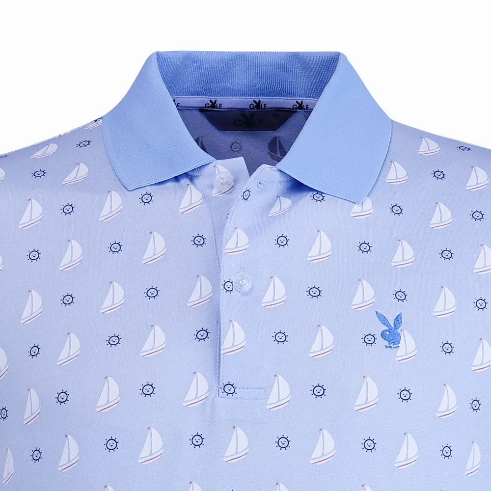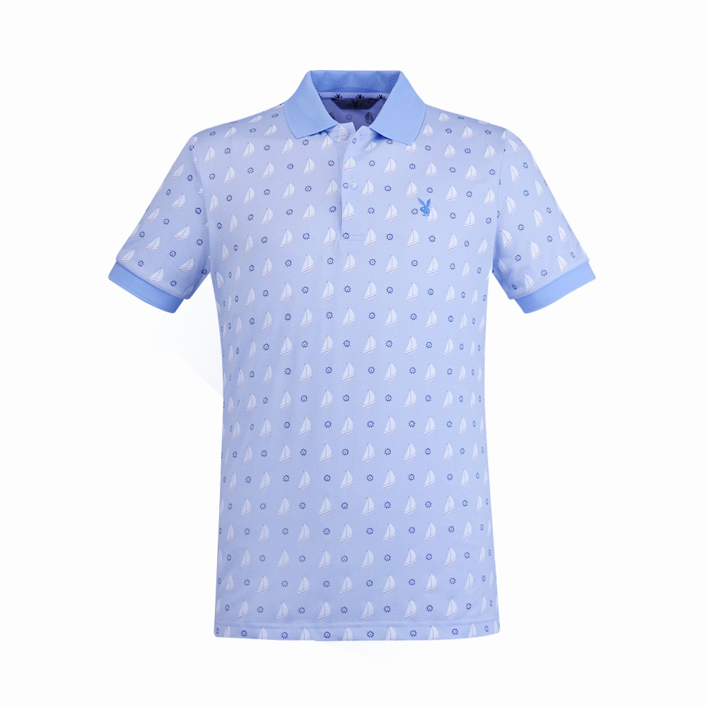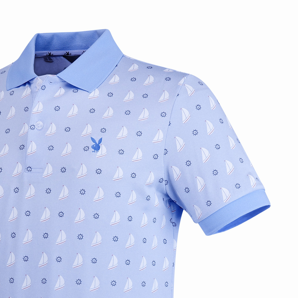 【PLAYBOY GOLF】男款太陽帆船吸濕排汗短袖POLO衫-藍 / AA25102-53
