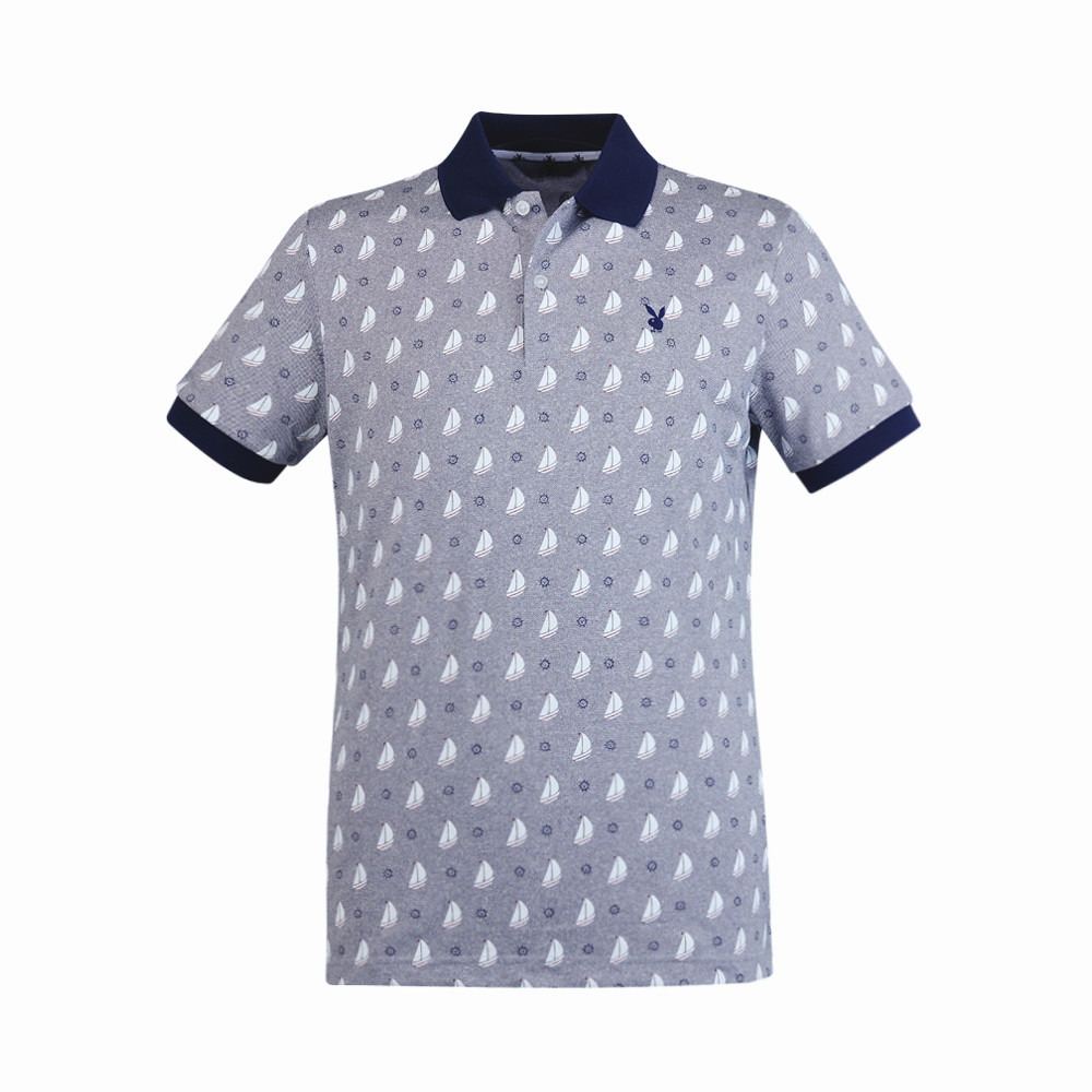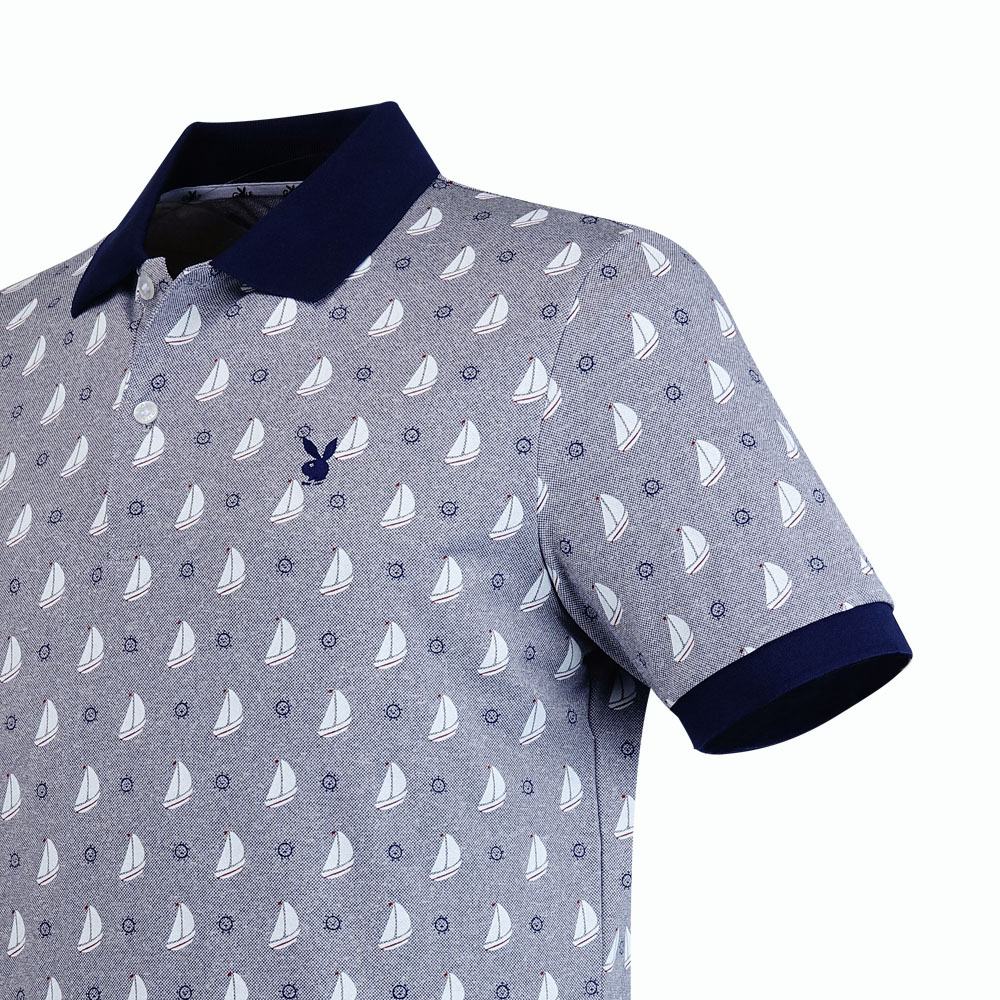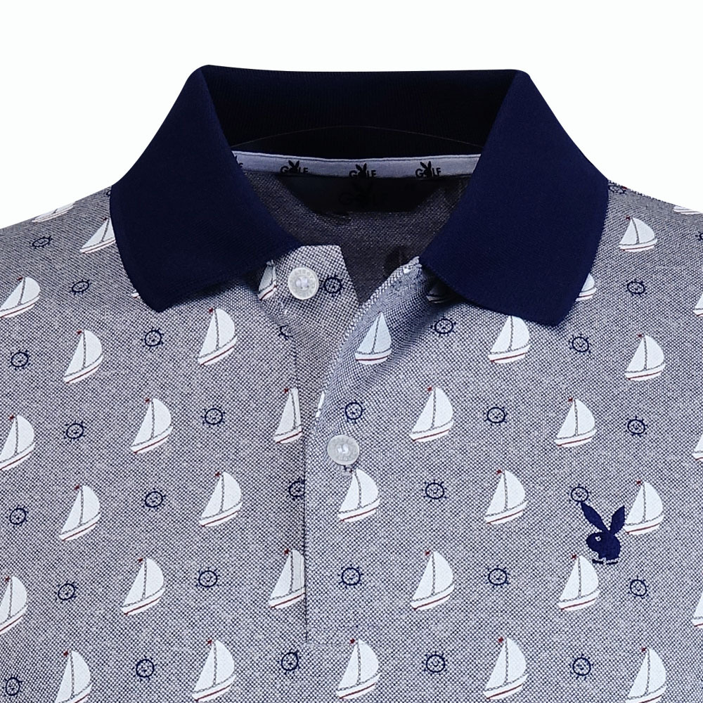 【PLAYBOY GOLF】男款太陽帆船吸濕排汗短袖POLO衫-深藍 / AA25102-58