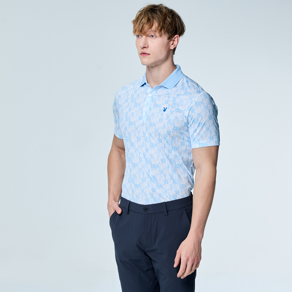 【PLAYBOY GOLF】男款LOGO字吸濕排汗短袖POLO衫-藍 / AA25103-55