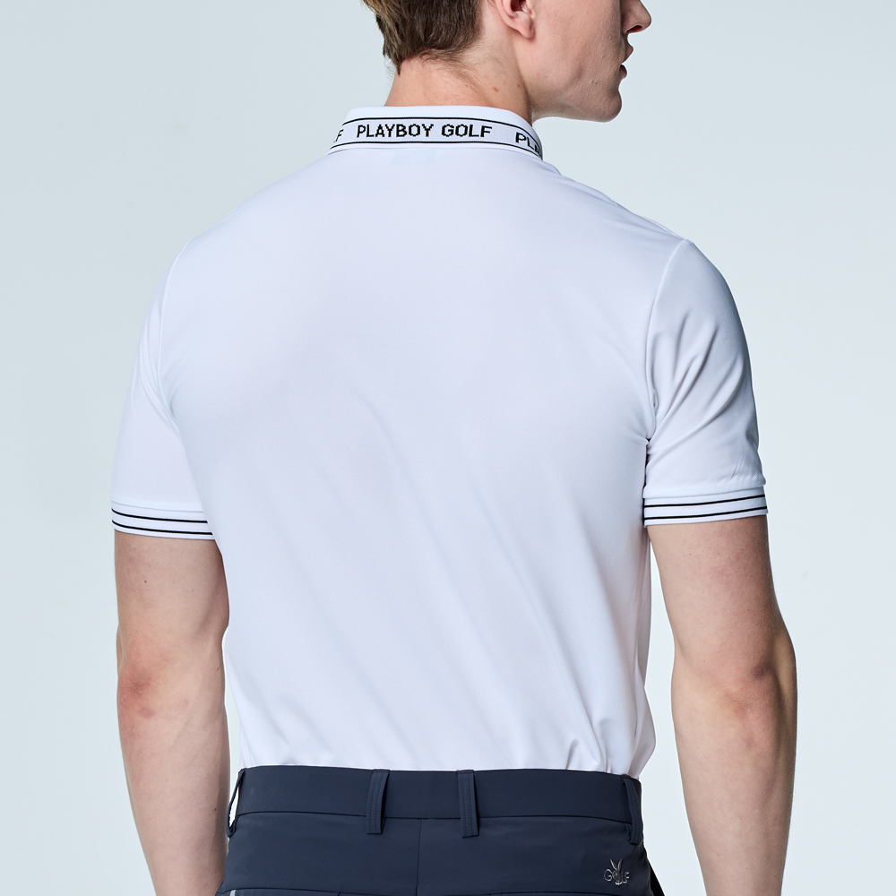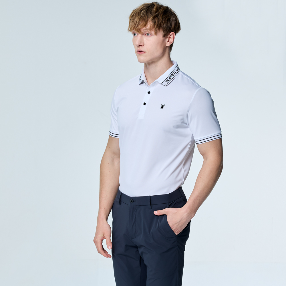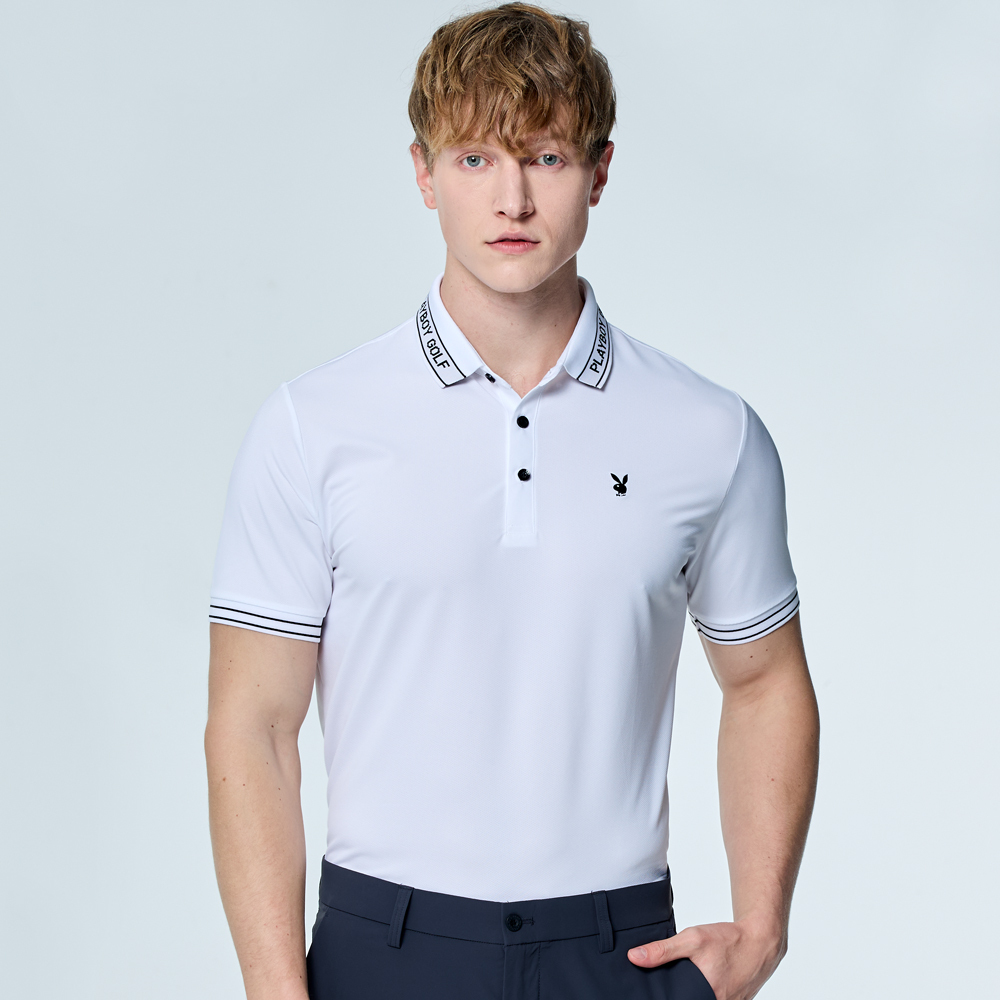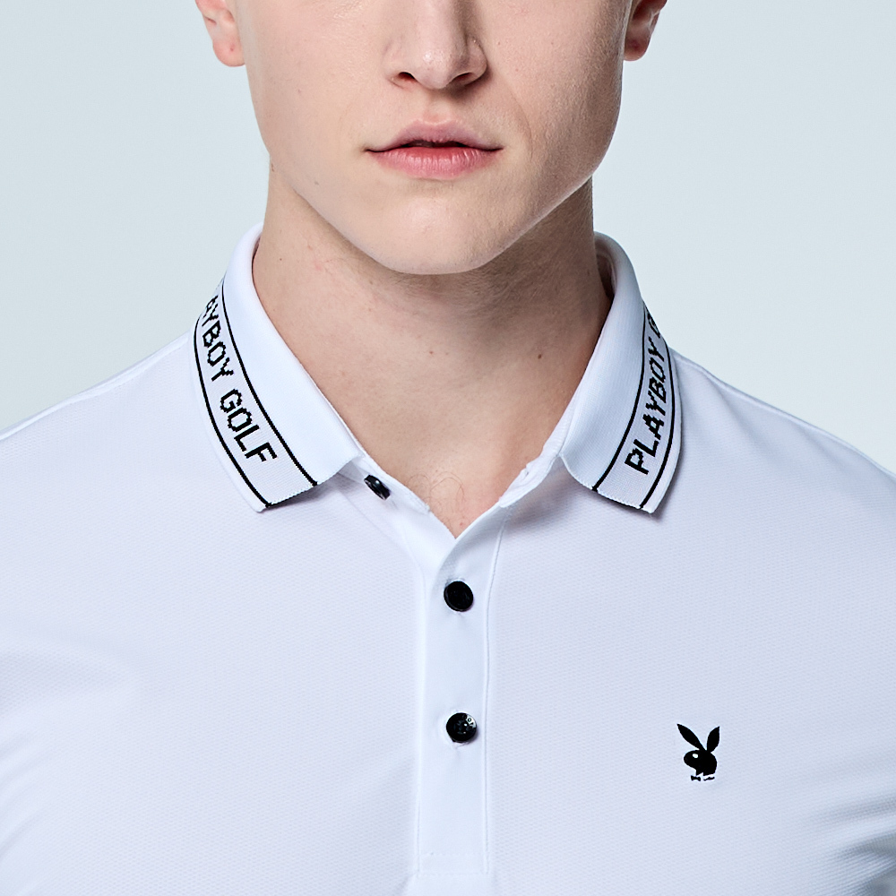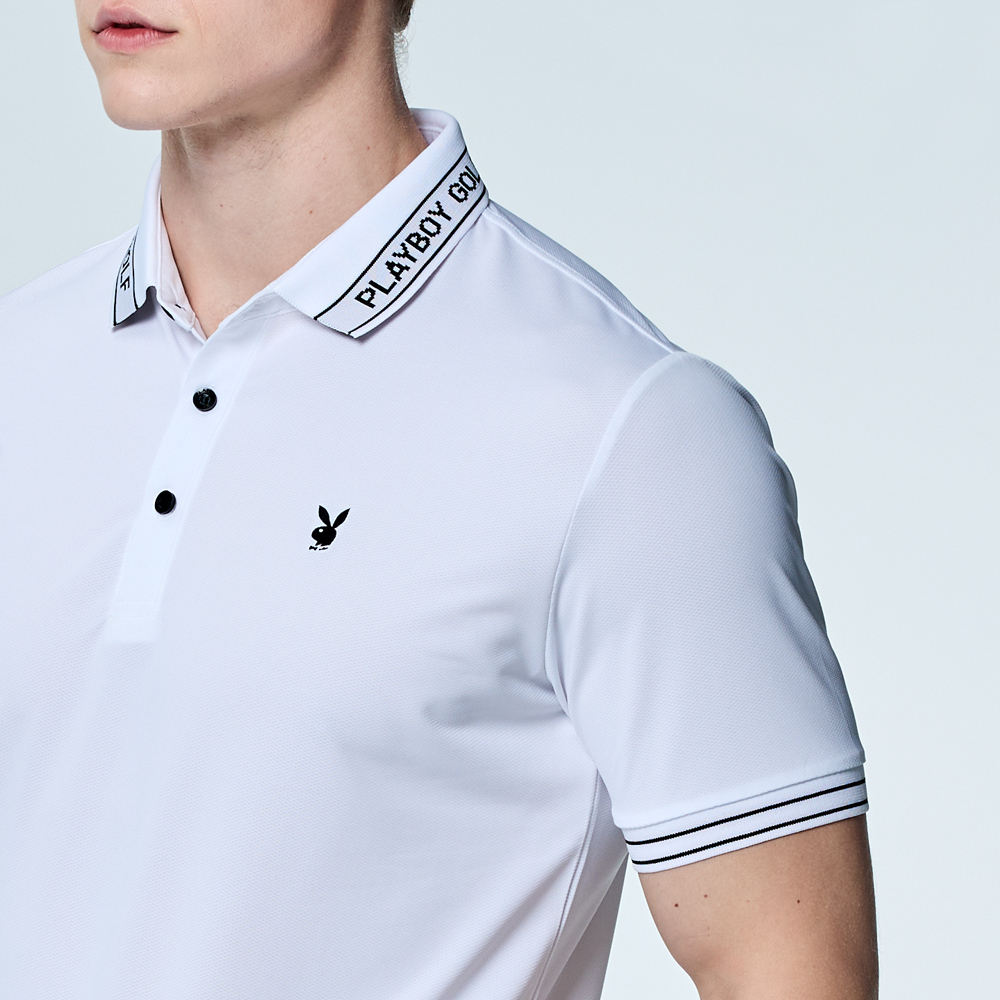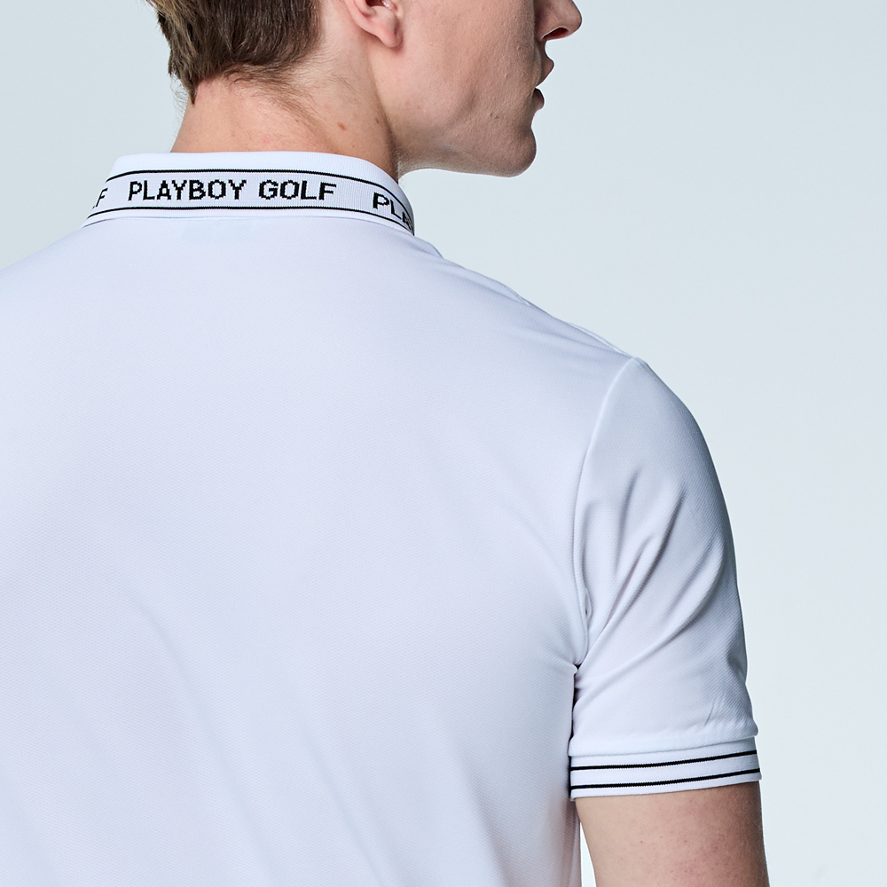 【PLAYBOY GOLF】男款吸濕排汗抗UV短袖POLO衫-白 / AA25107-87