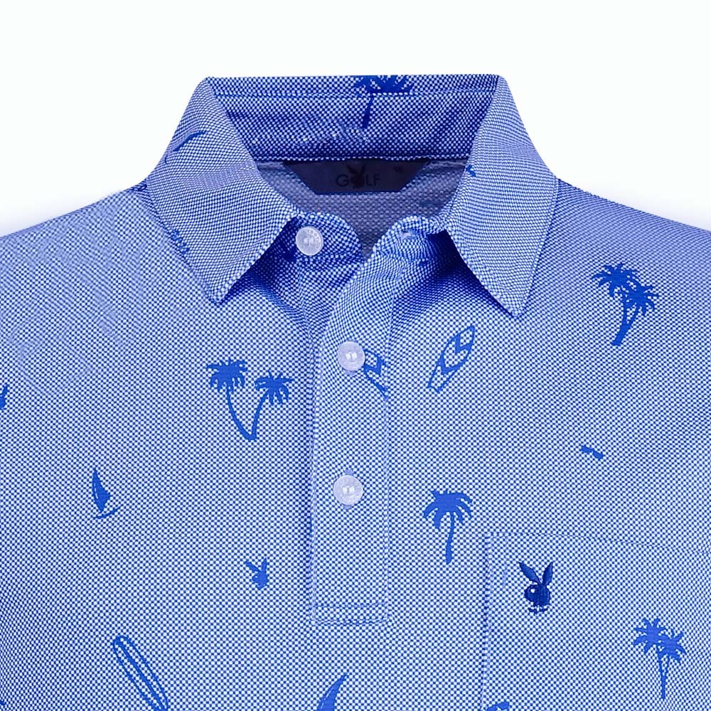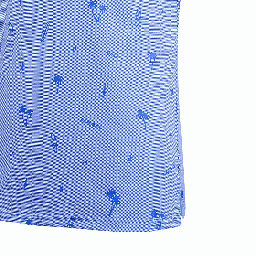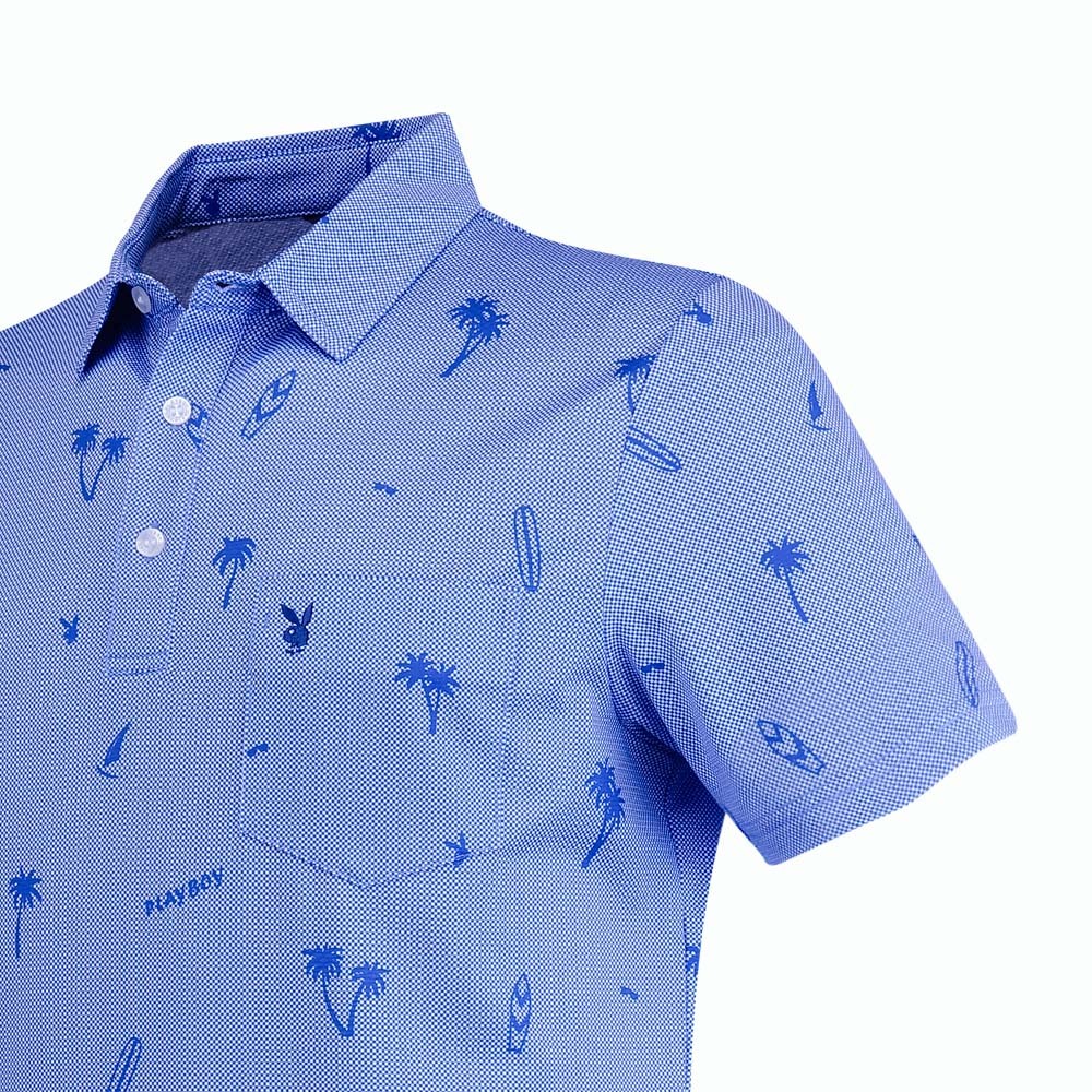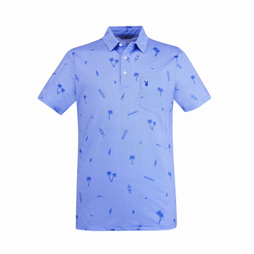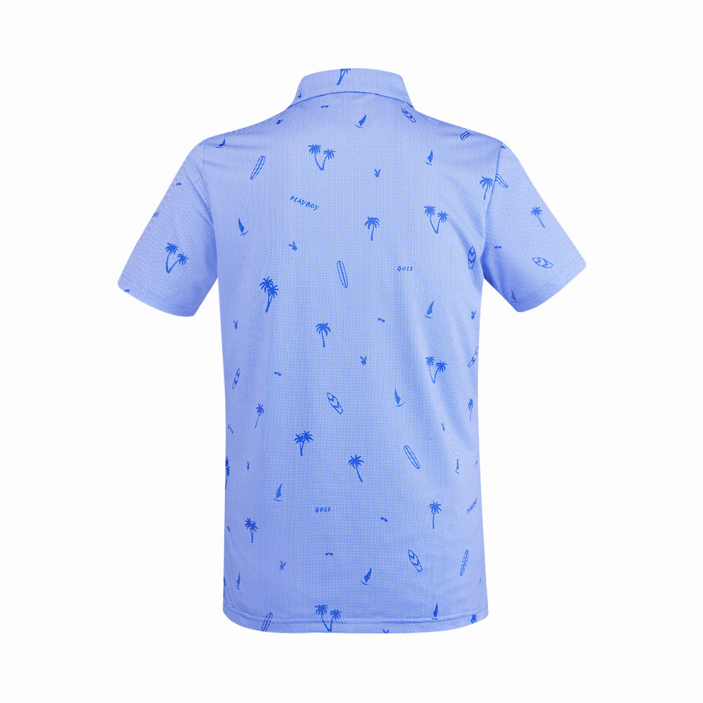 【PLAYBOY GOLF】男款棕櫚樹印花吸濕排汗短袖POLO衫-藍紫 / AA25109-57