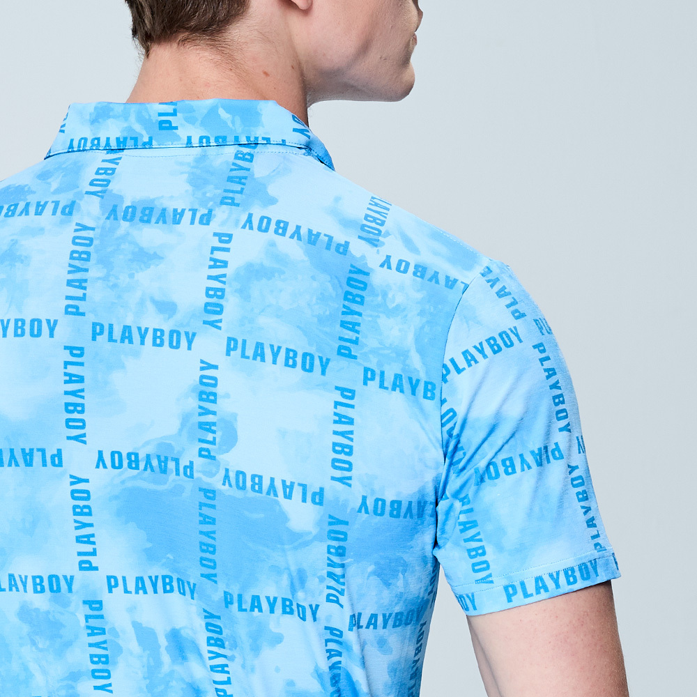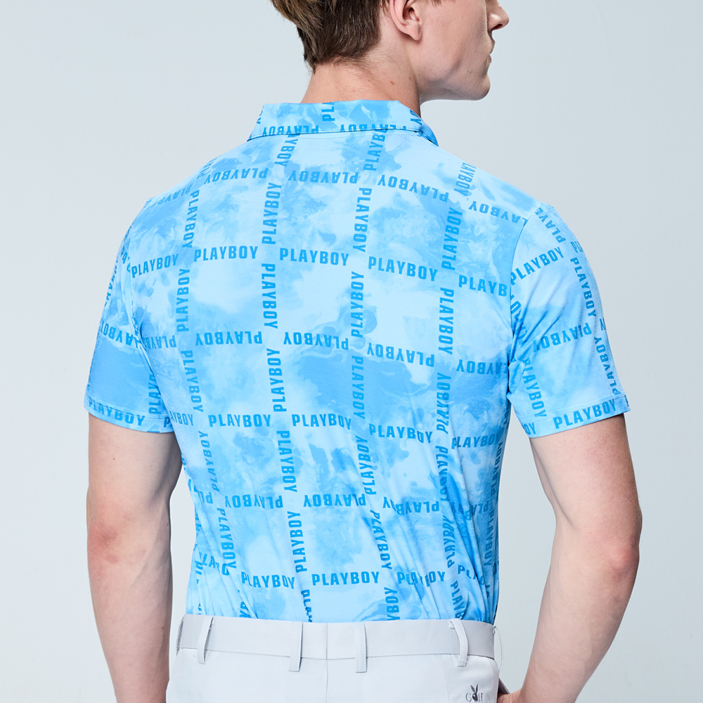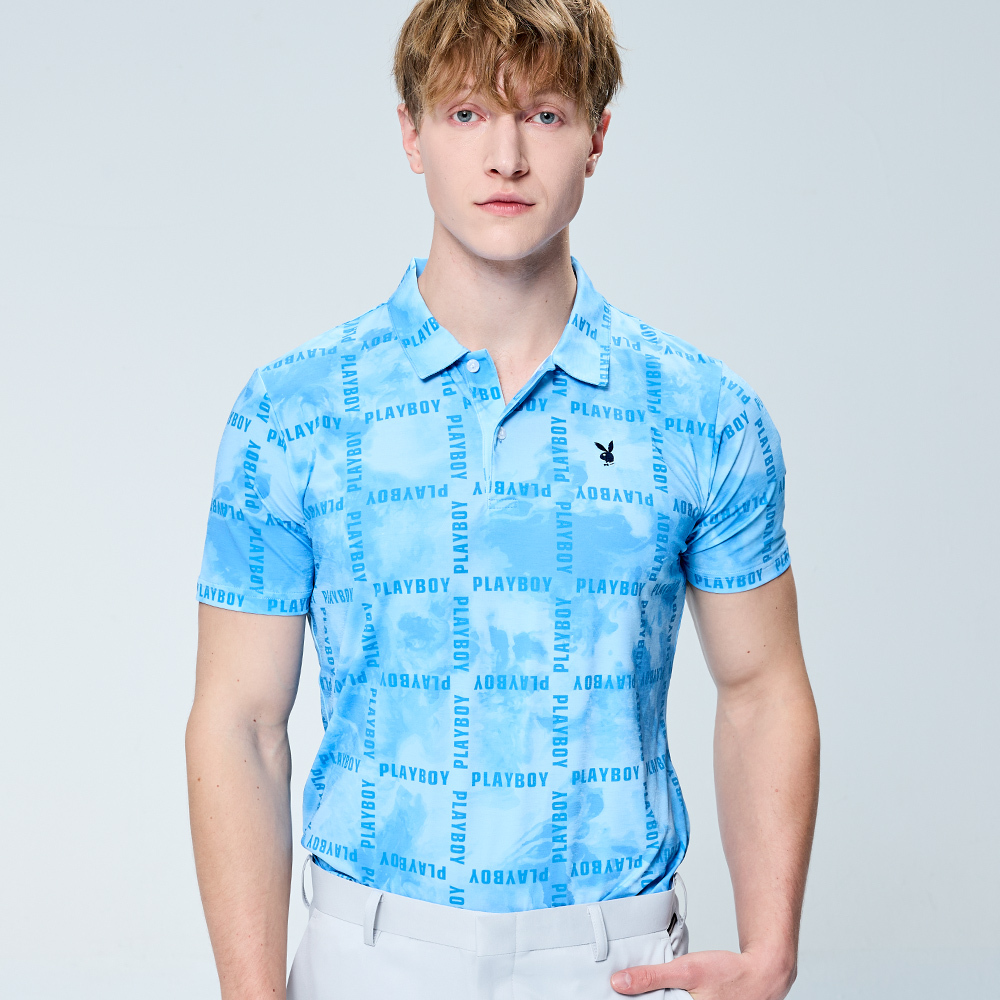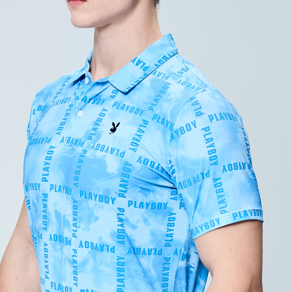 【PLAYBOY GOLF】男款雲彩方格抗UV短袖POLO衫-藍 / AA25113-56