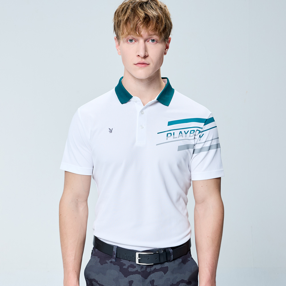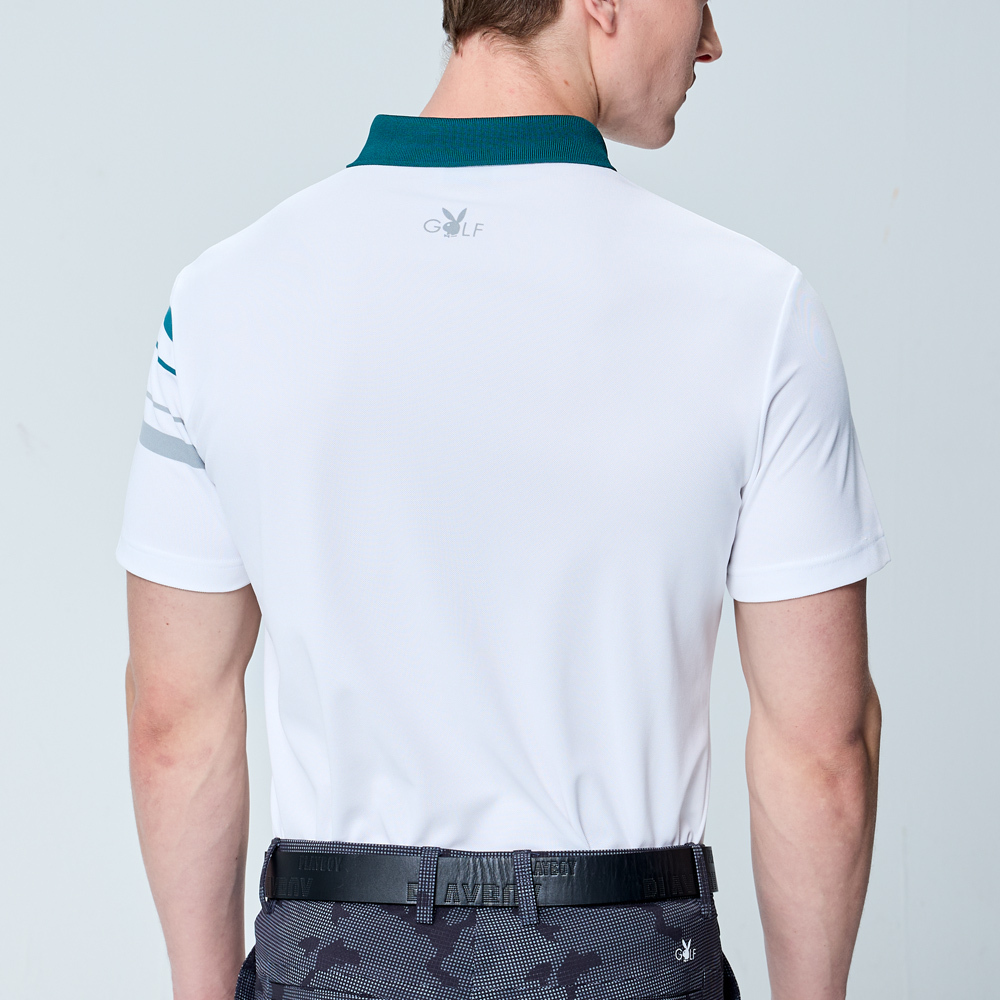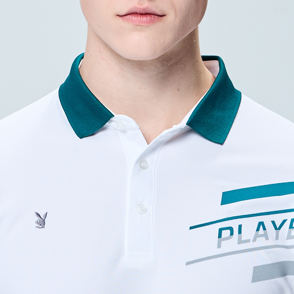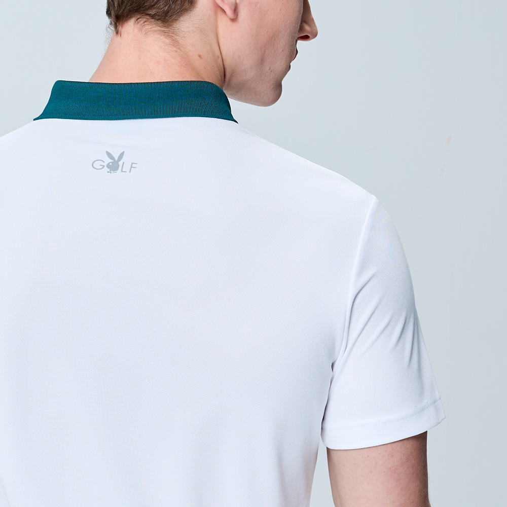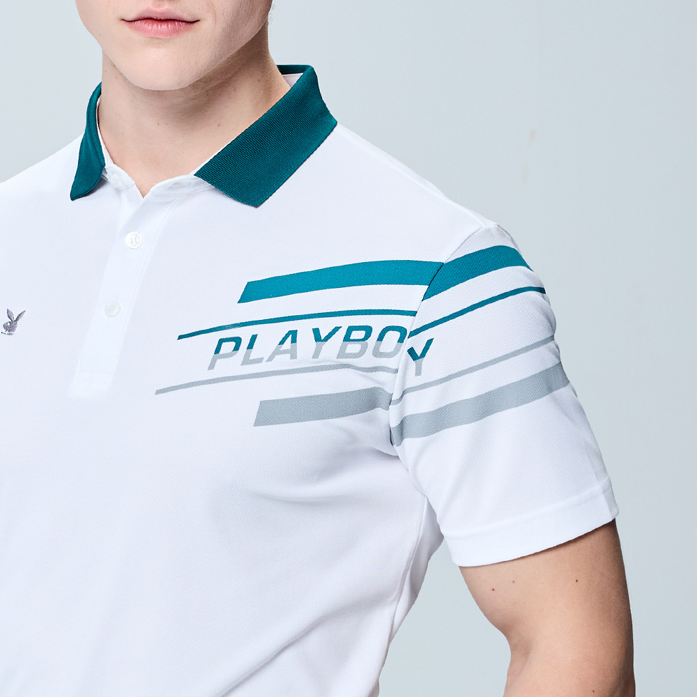 【PLAYBOY GOLF】男款吸濕排汗抗UV高爾夫短袖POLO衫-白 / AA25116-87