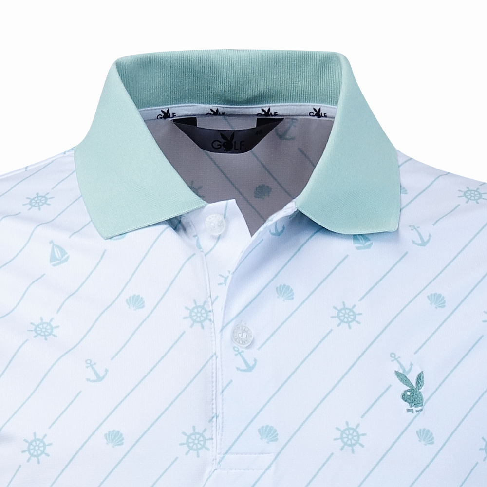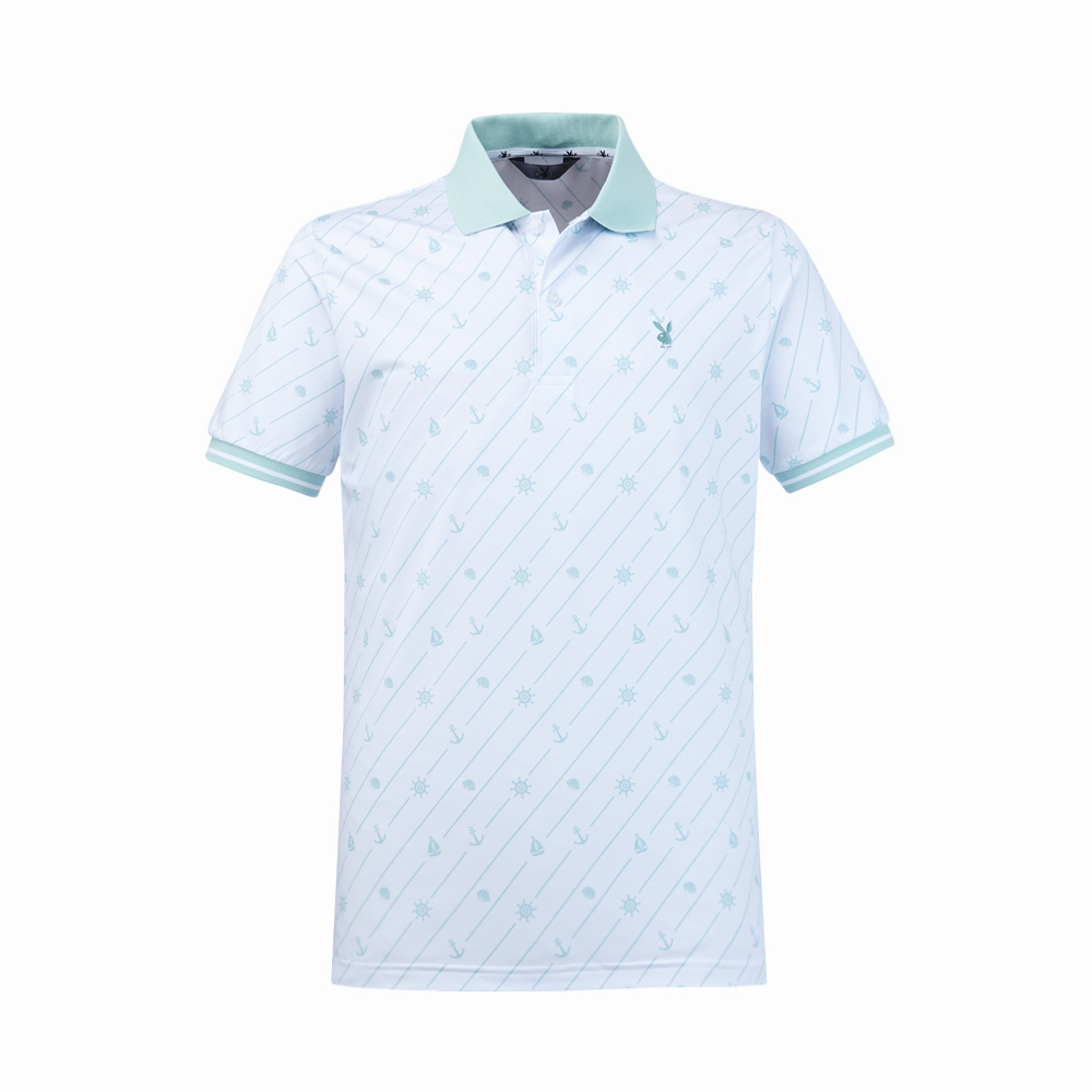 【PLAYBOY GOLF】男款海洋風涼感短袖POLO衫-綠 / AA25117-45