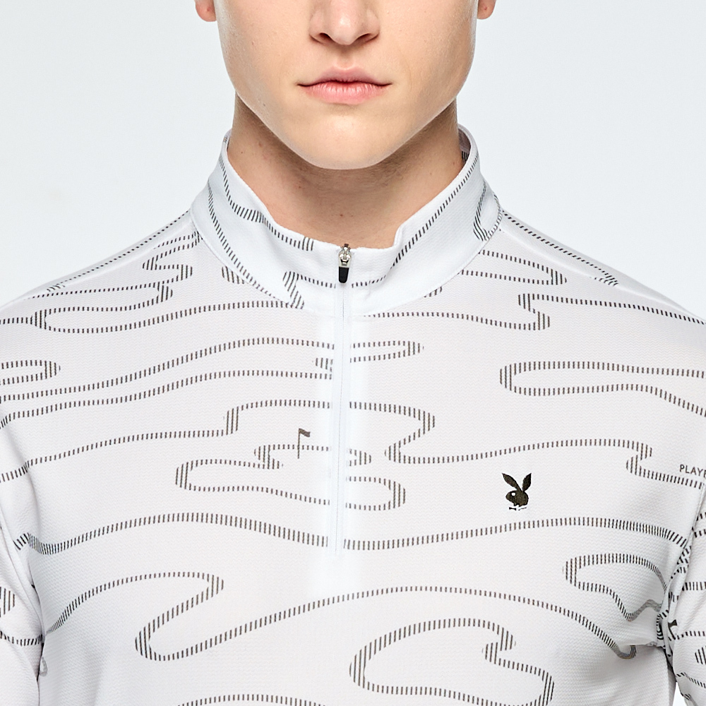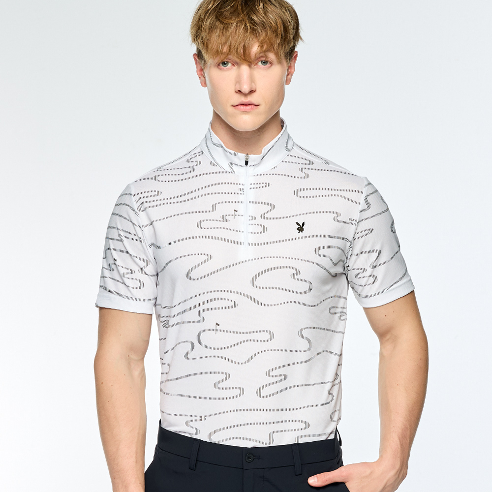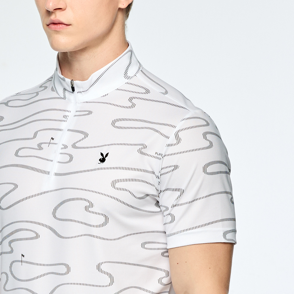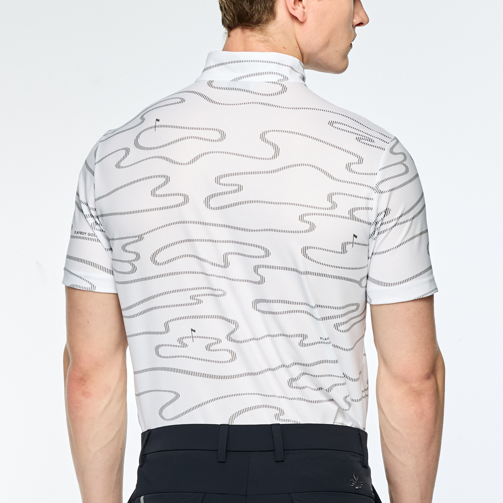【PLAYBOY GOLF】男款果嶺印花涼感短袖立領上衣-白 / AA25123-87