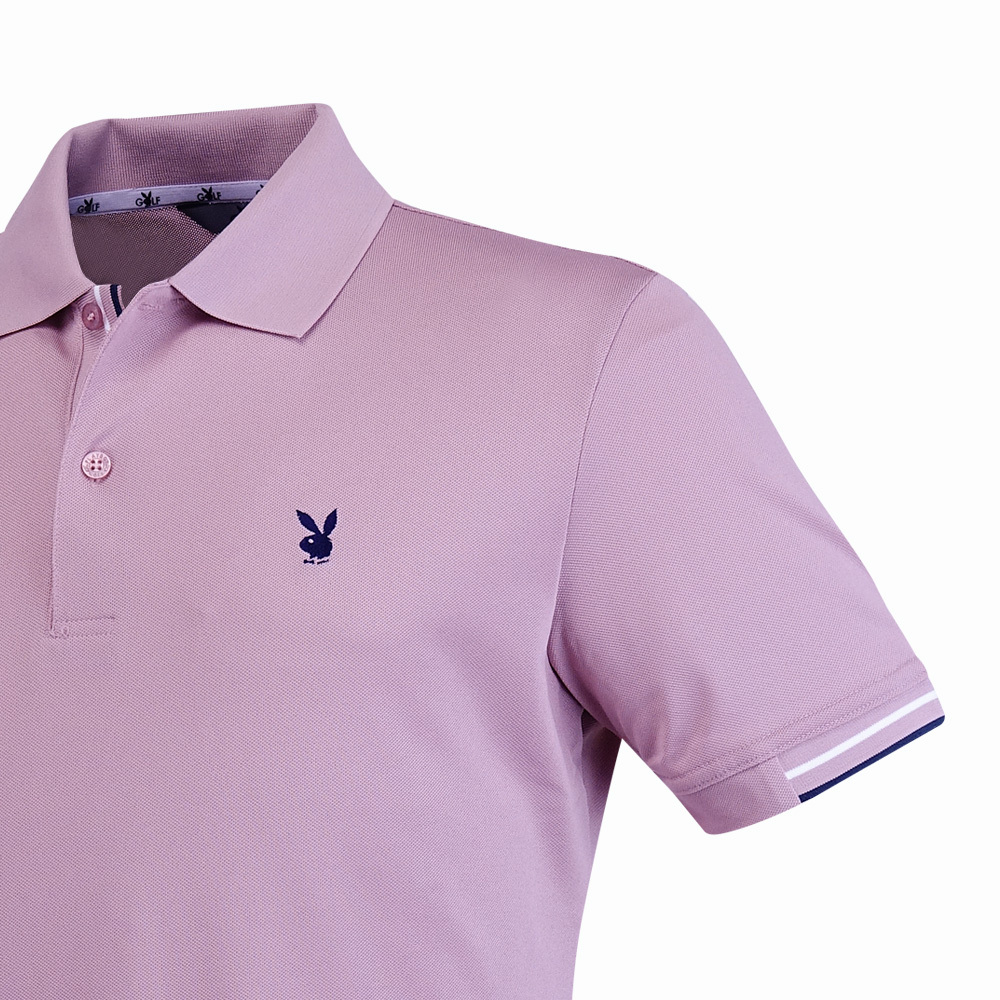 【PLAYBOY GOLF】男款網眼吸濕排汗抗UV高爾夫短袖POLO衫-粉 / AA25190-15