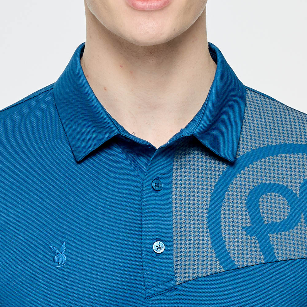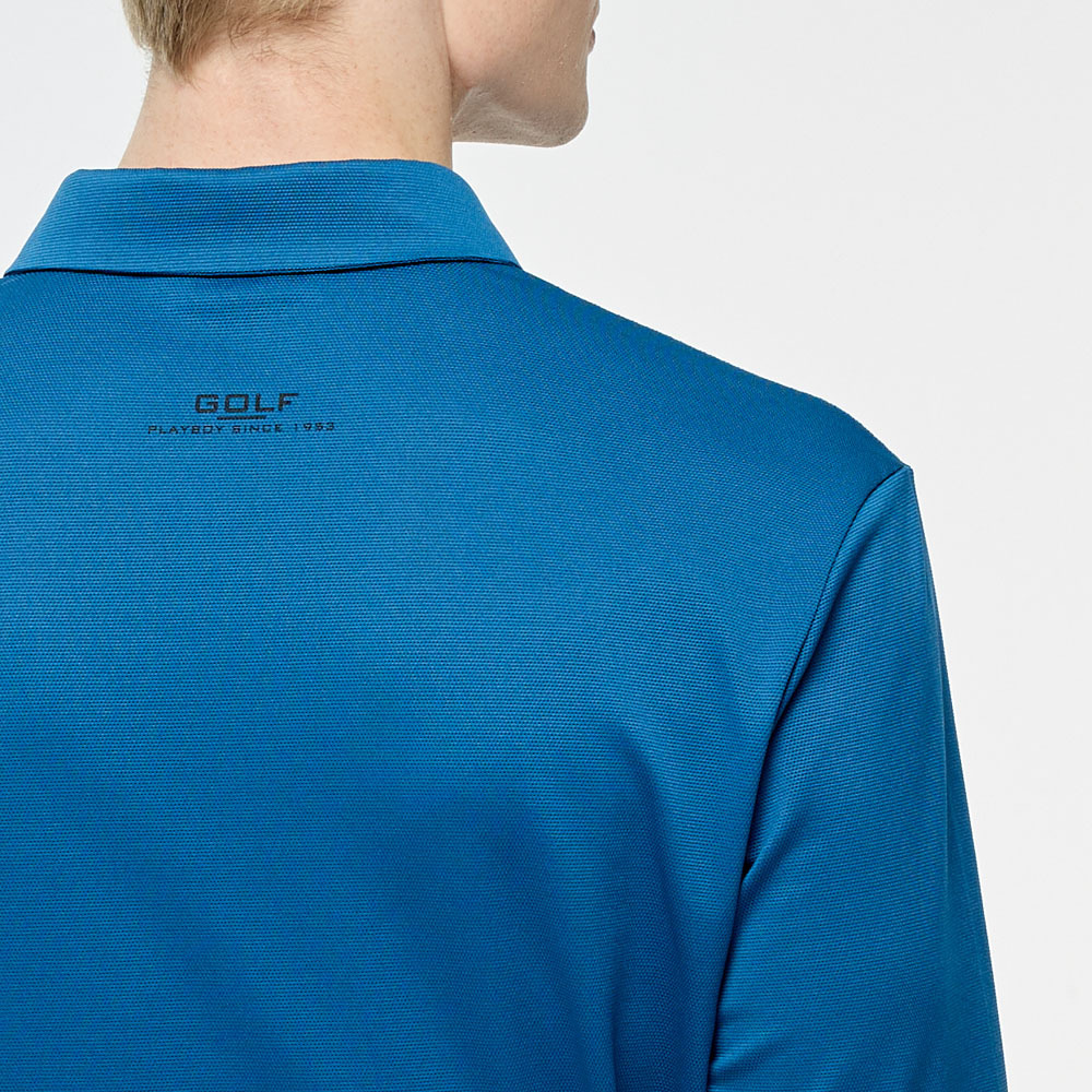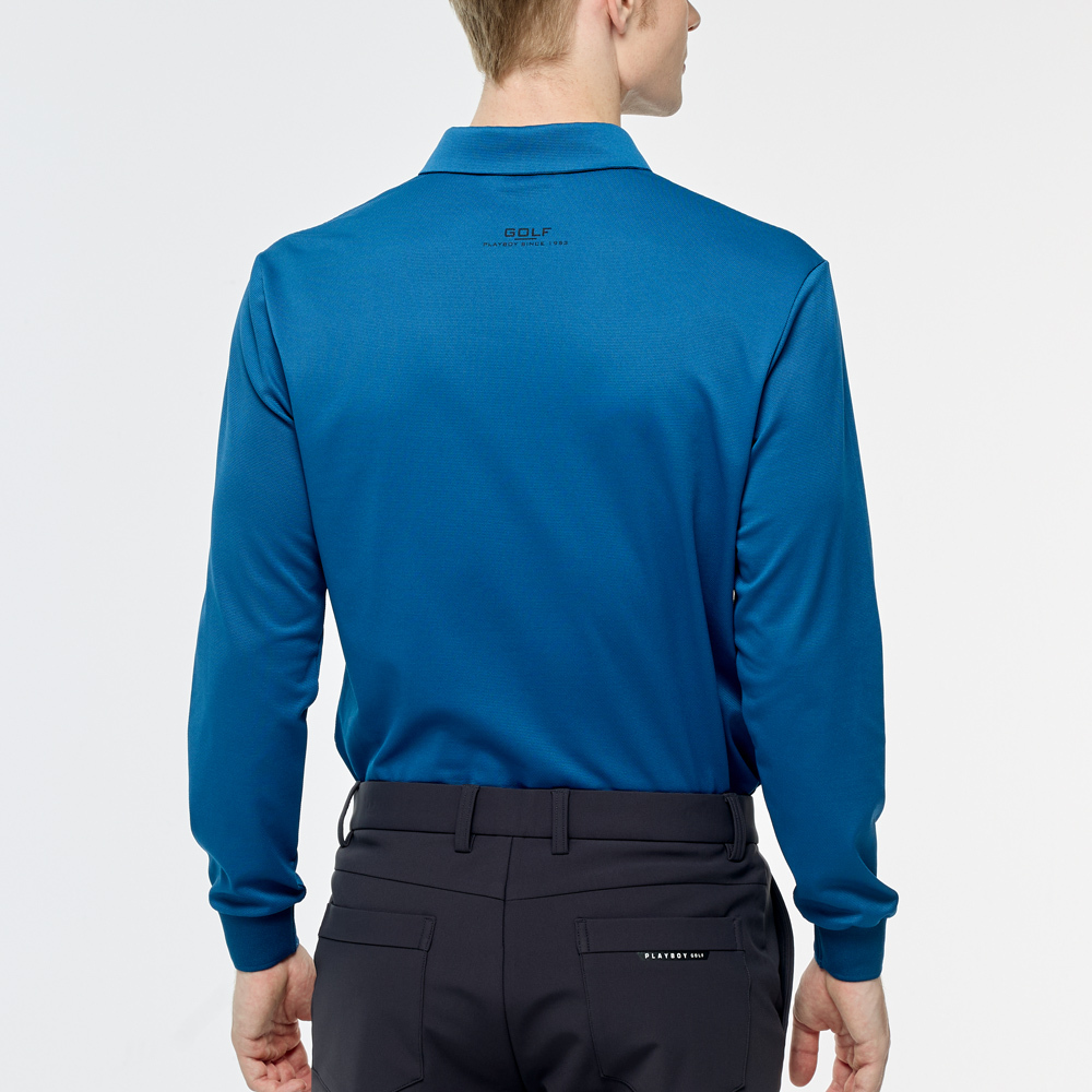 【PLAYBOY GOLF】男款吸濕排汗抗UV薄長袖POLO衫-藍 / AA25201-56