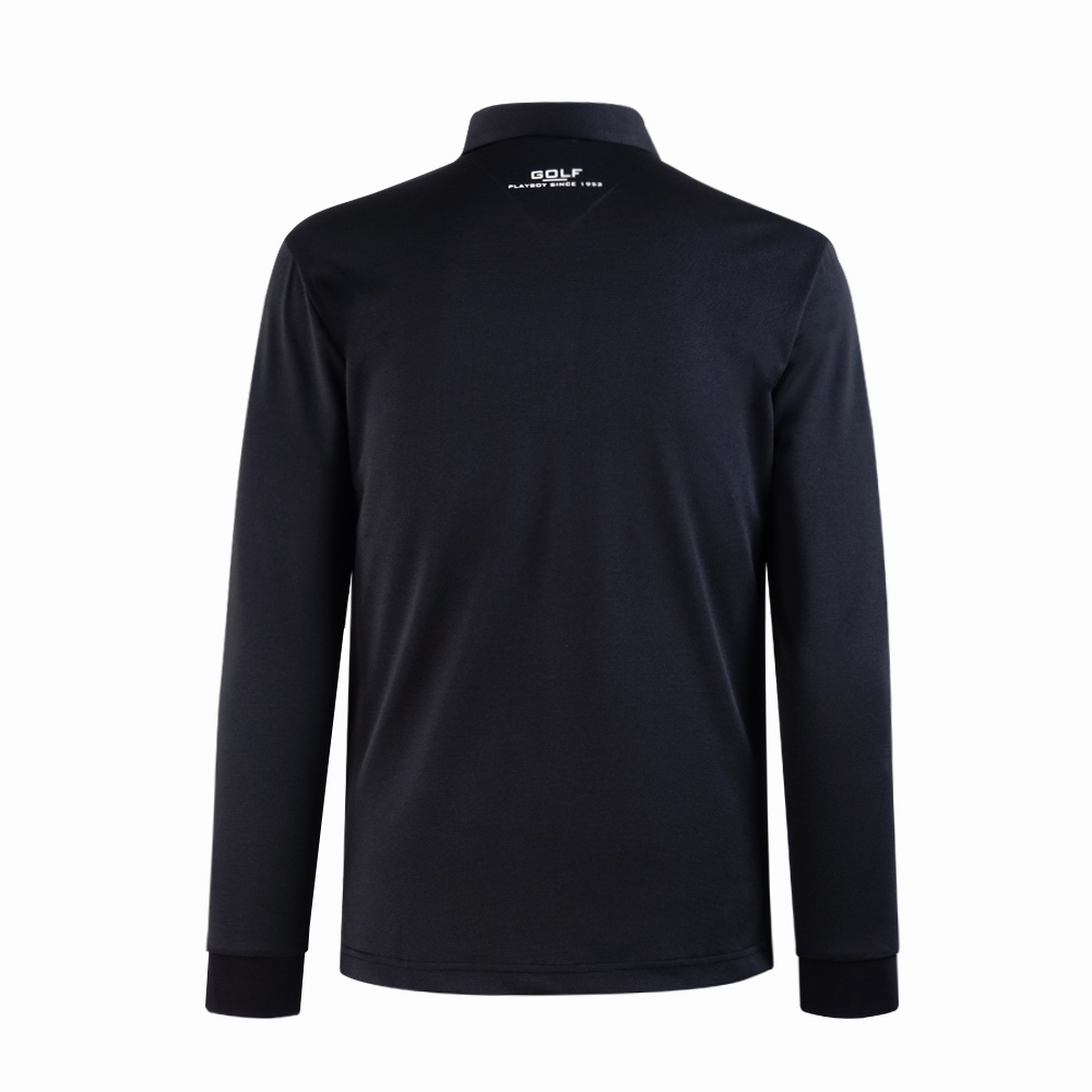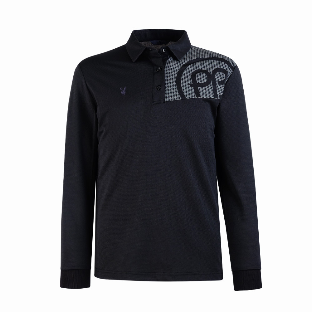 【PLAYBOY GOLF】男款吸濕排汗抗UV薄長袖POLO衫-黑 / AA25201-88
