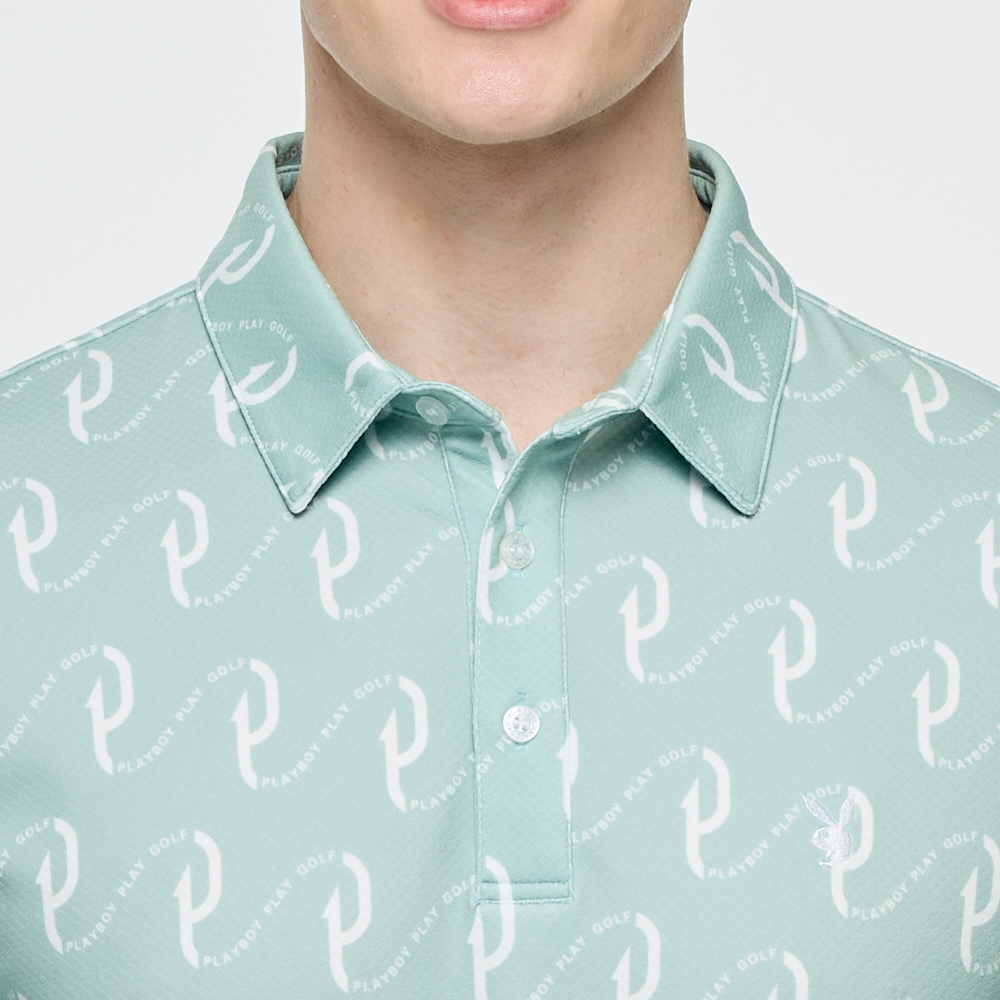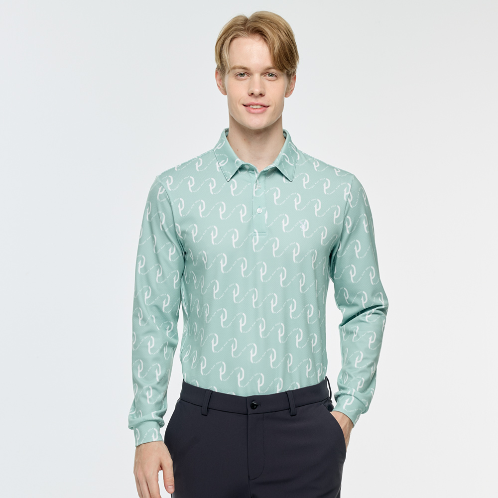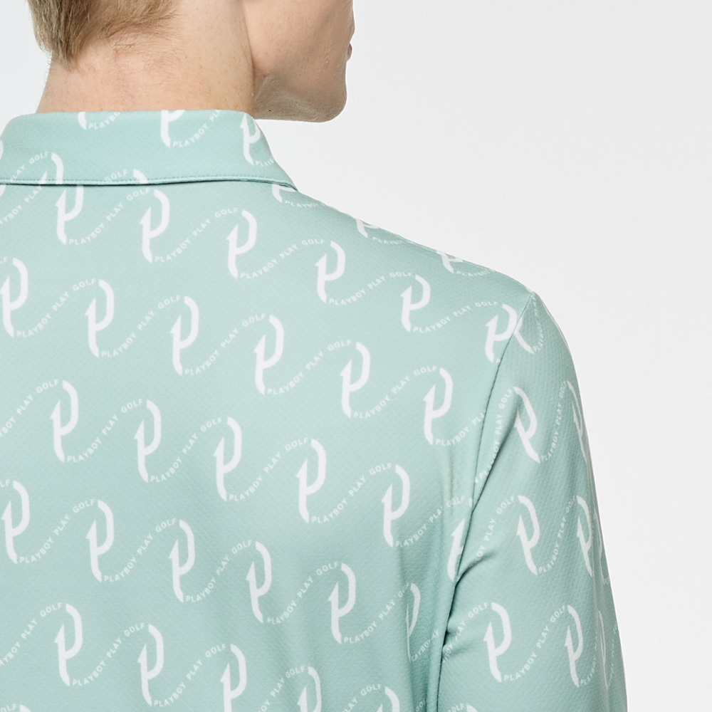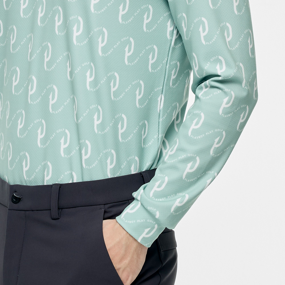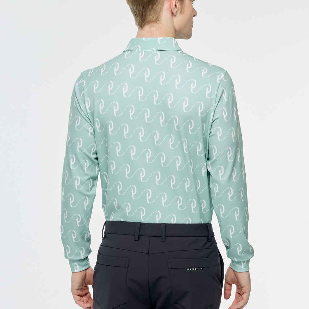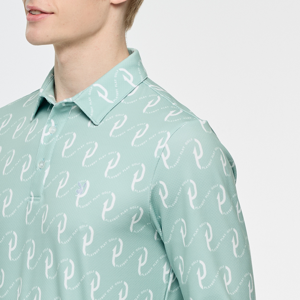 【PLAYBOY GOLF】男款P字吸濕排汗高爾夫長袖POLO杉-綠 / AA25207-45