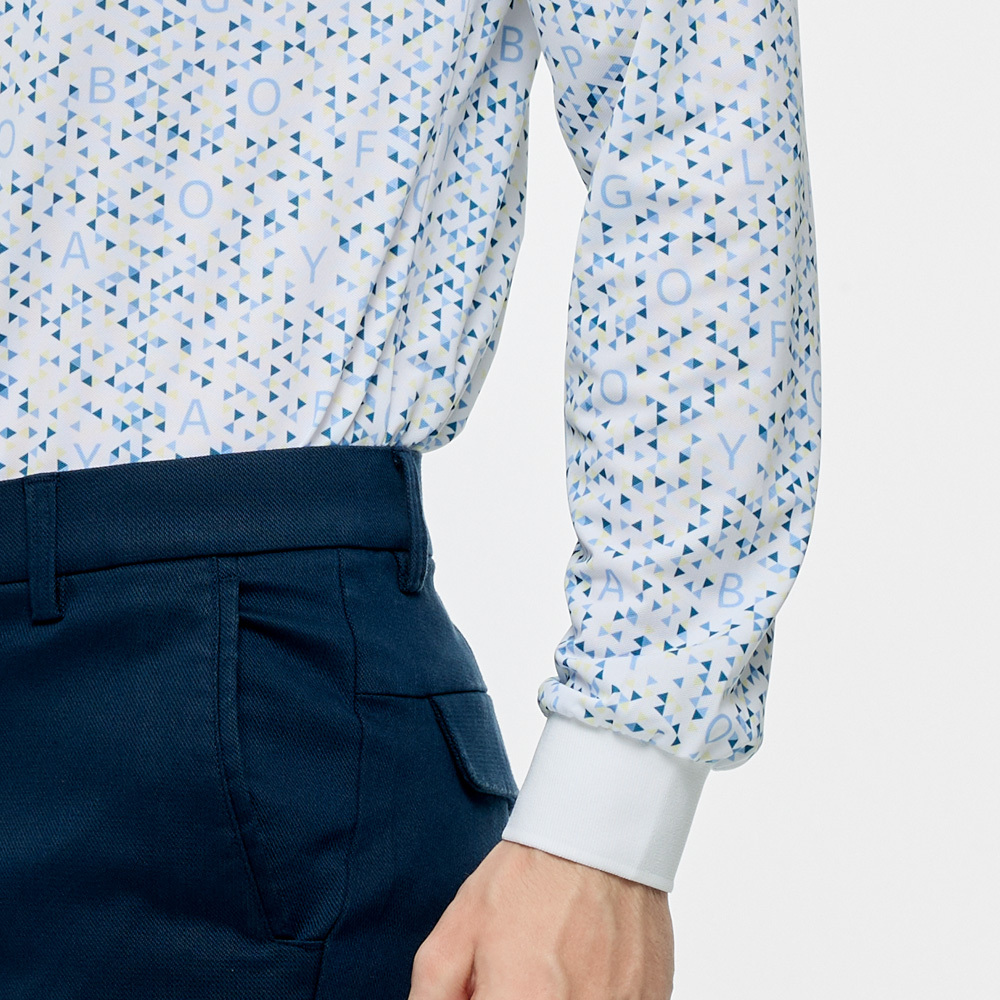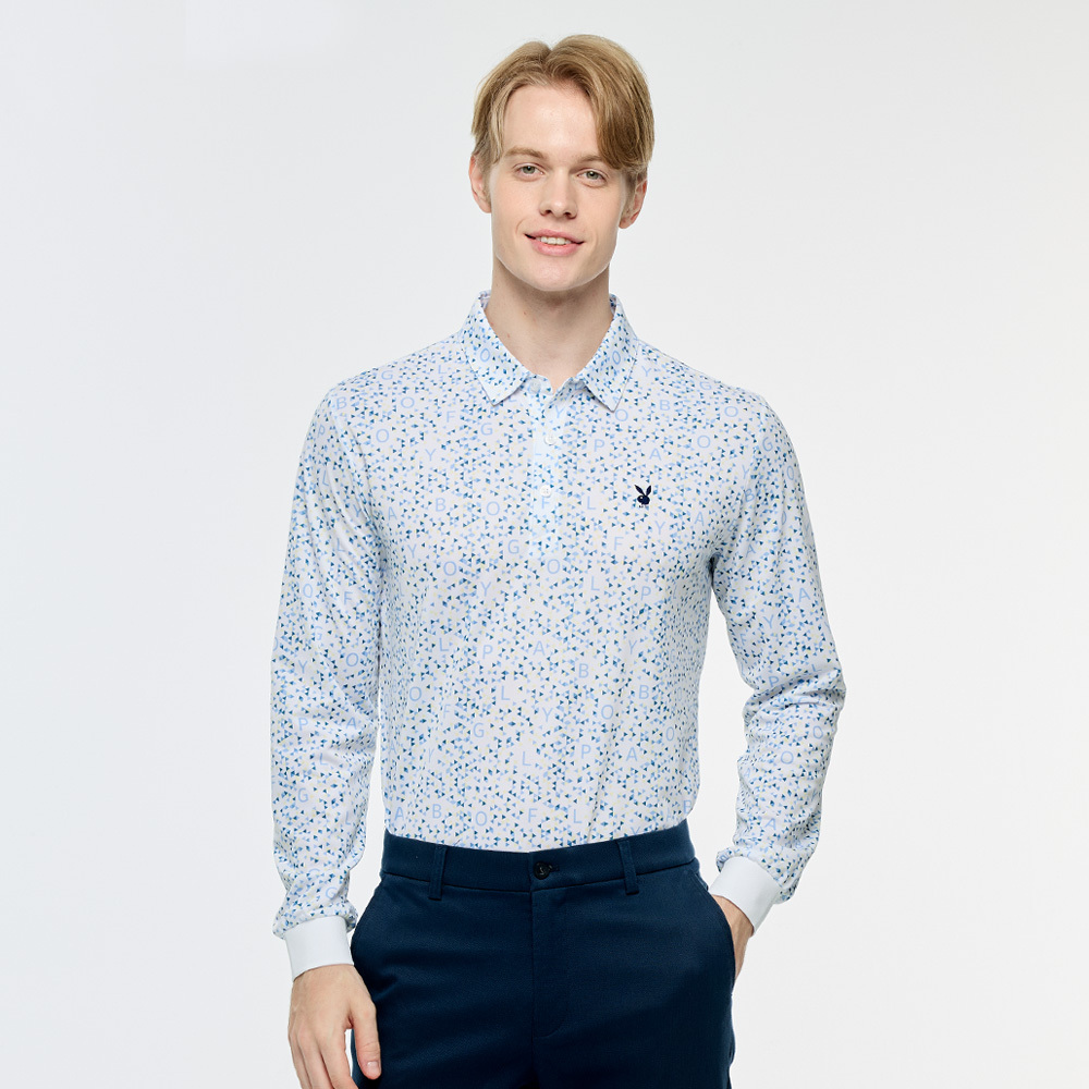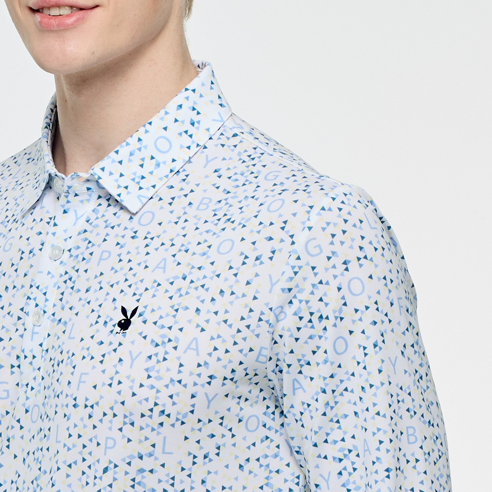 【PLAYBOY GOLF】男款小三角抗UV薄長袖POLO杉-藍 / AA25209-55