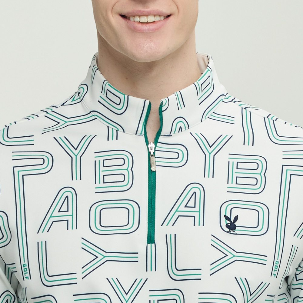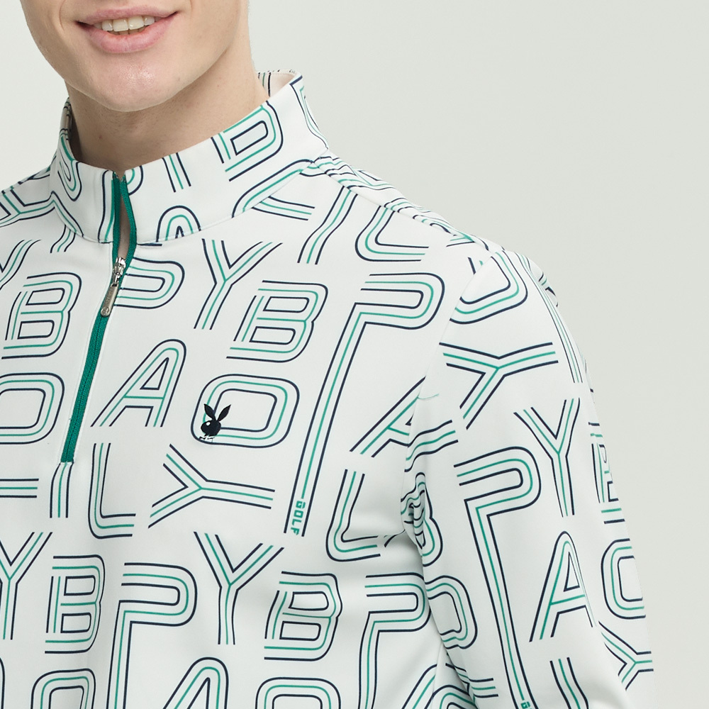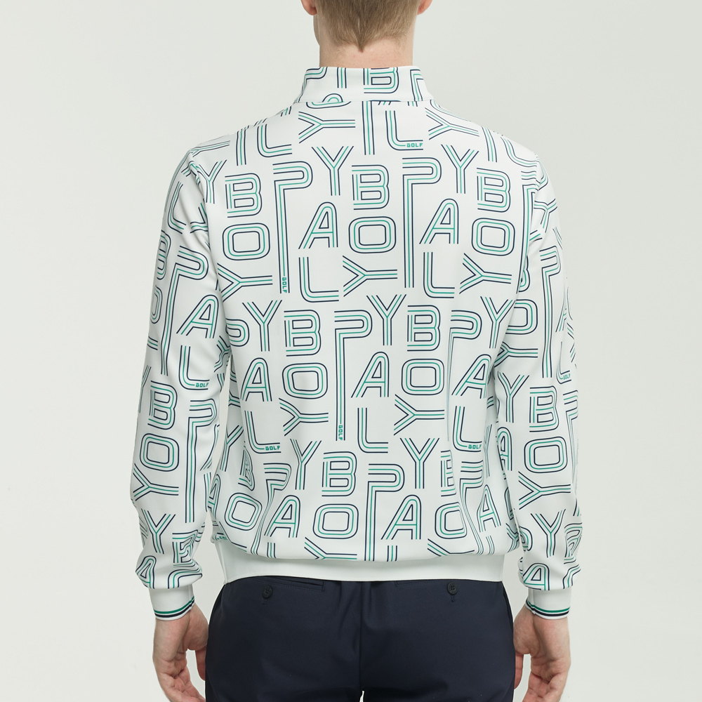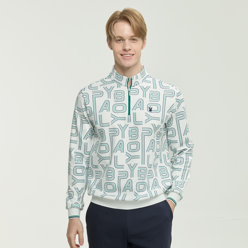 【PLAYBOY GOLF】男款蓄熱保暖磨毛長袖立領上衣-白 / AA25223-73