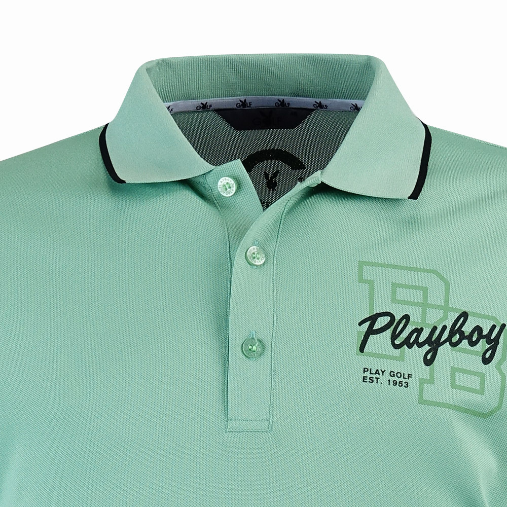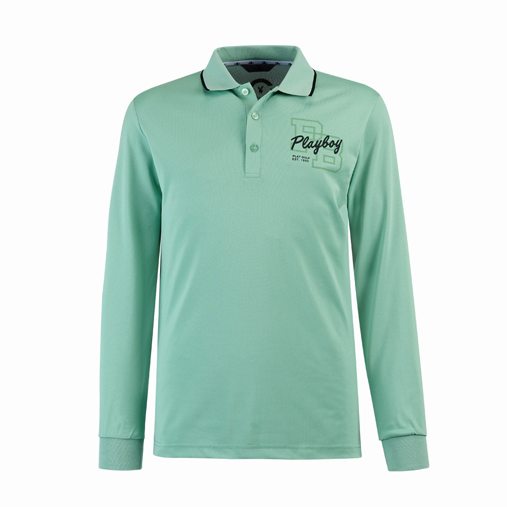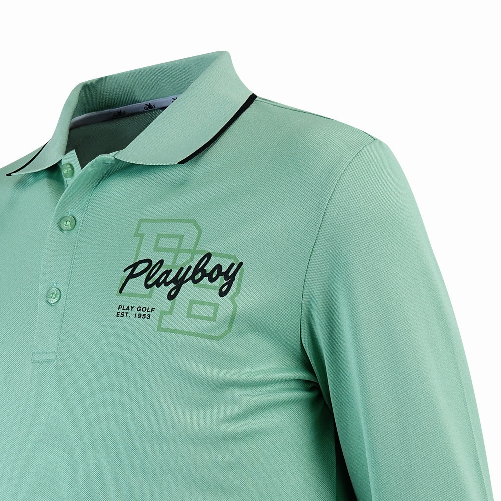 【PLAYBOY GOLF】男款吸濕排汗抗UV高爾夫薄長袖POLO衫-綠 / AA25290-43