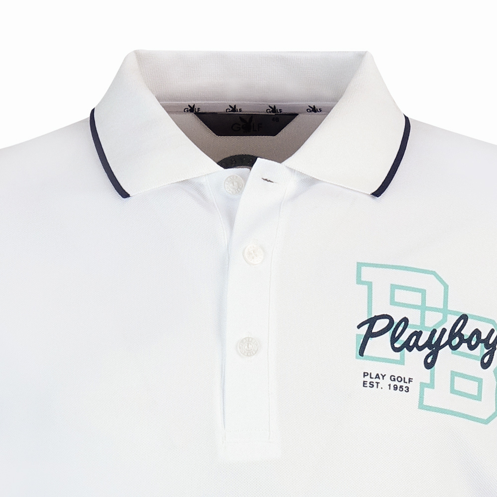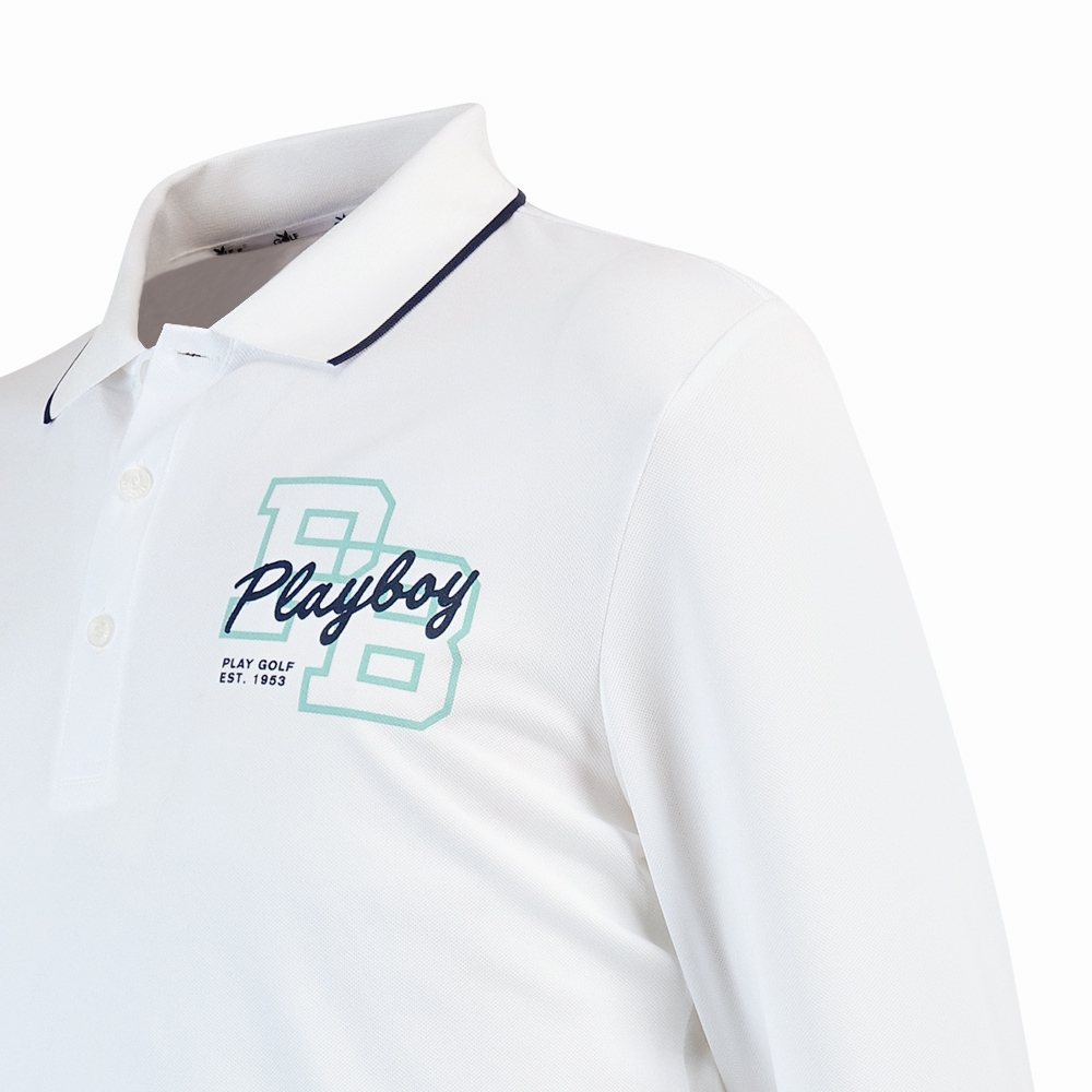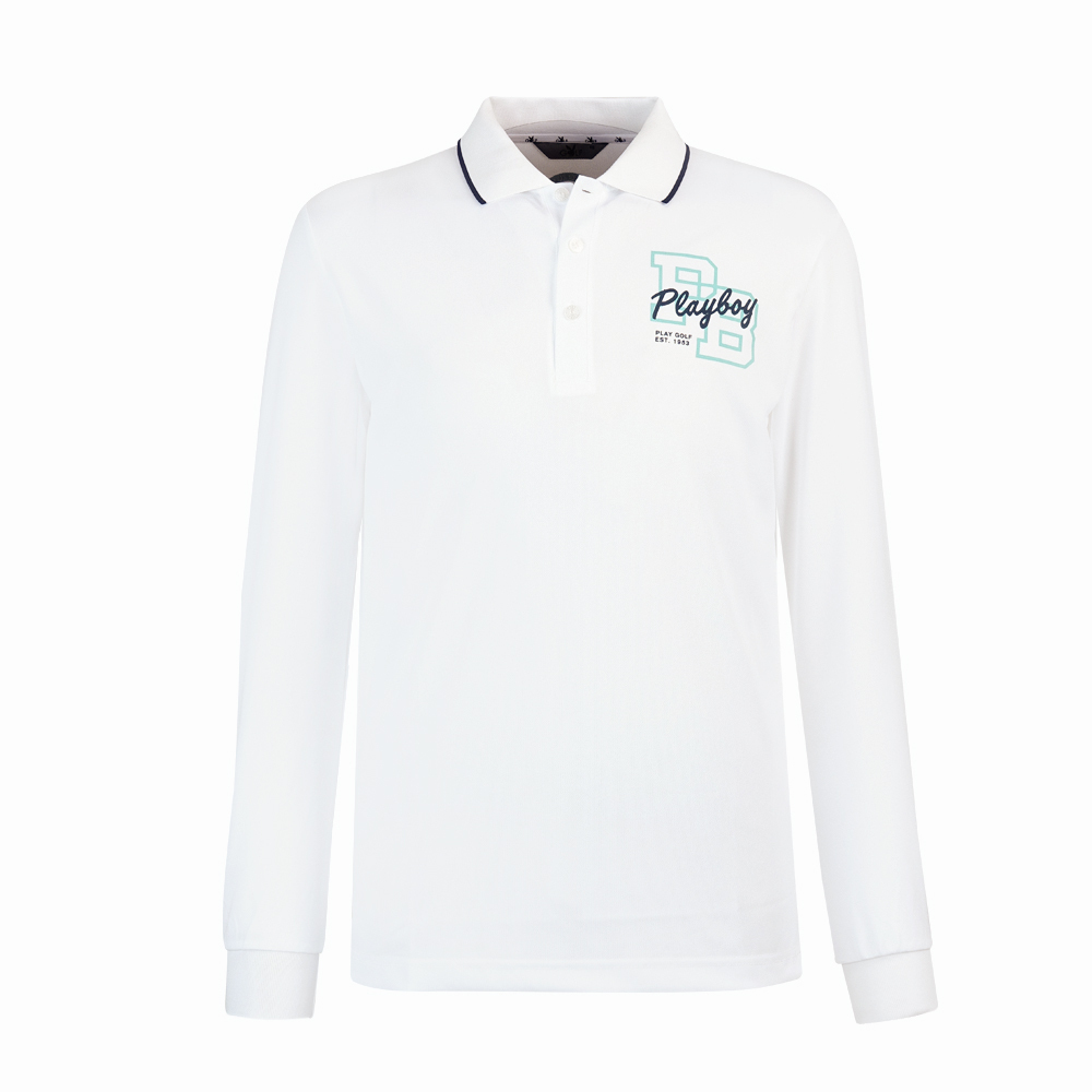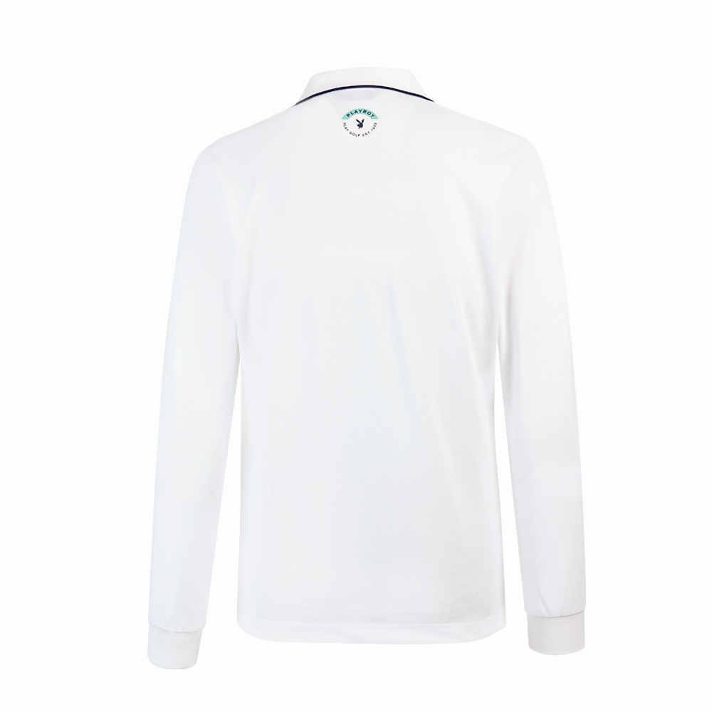 【PLAYBOY GOLF】男款吸濕排汗抗UV高爾夫薄長袖POLO衫-白 / AA25290-87