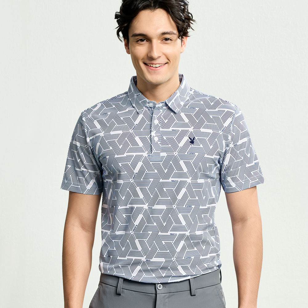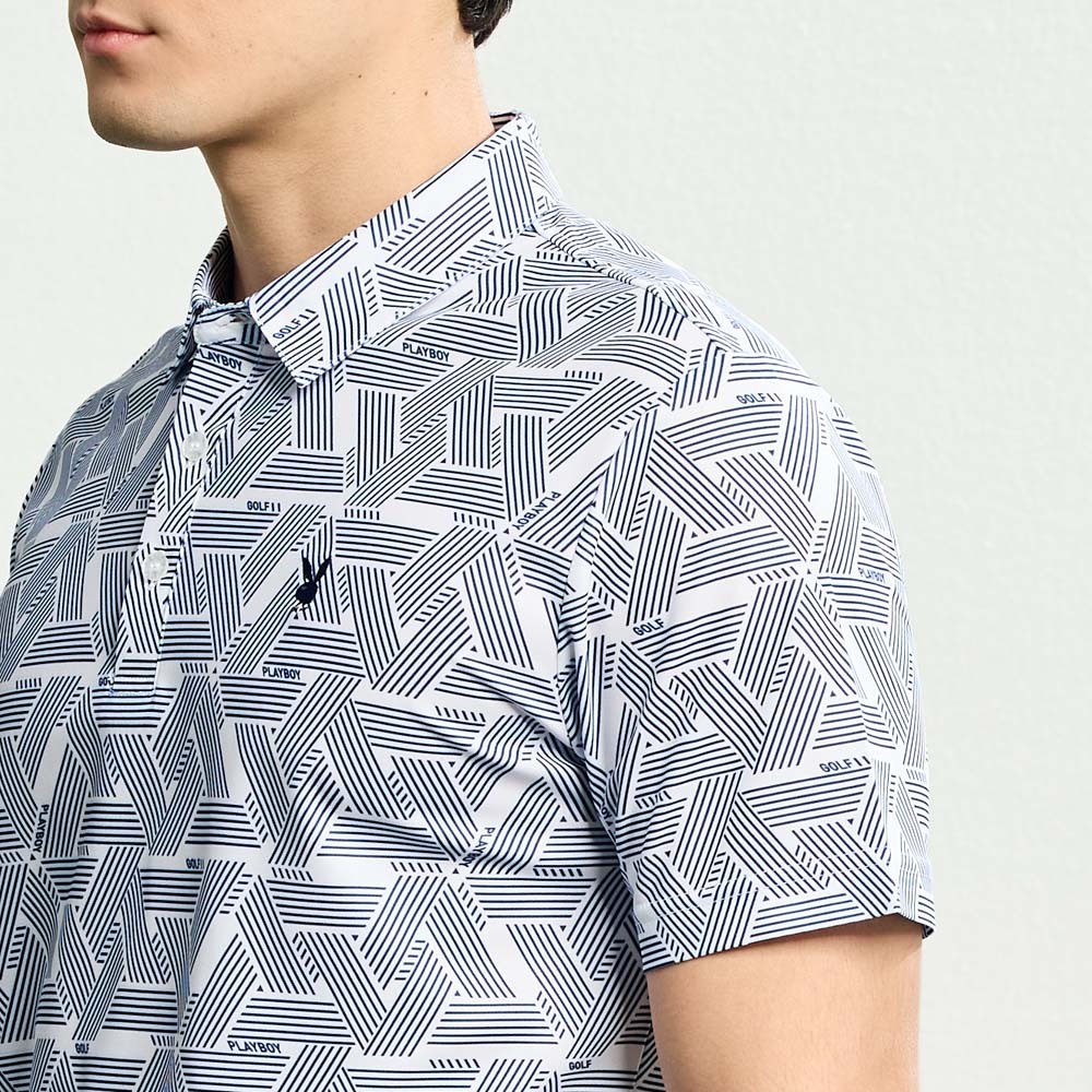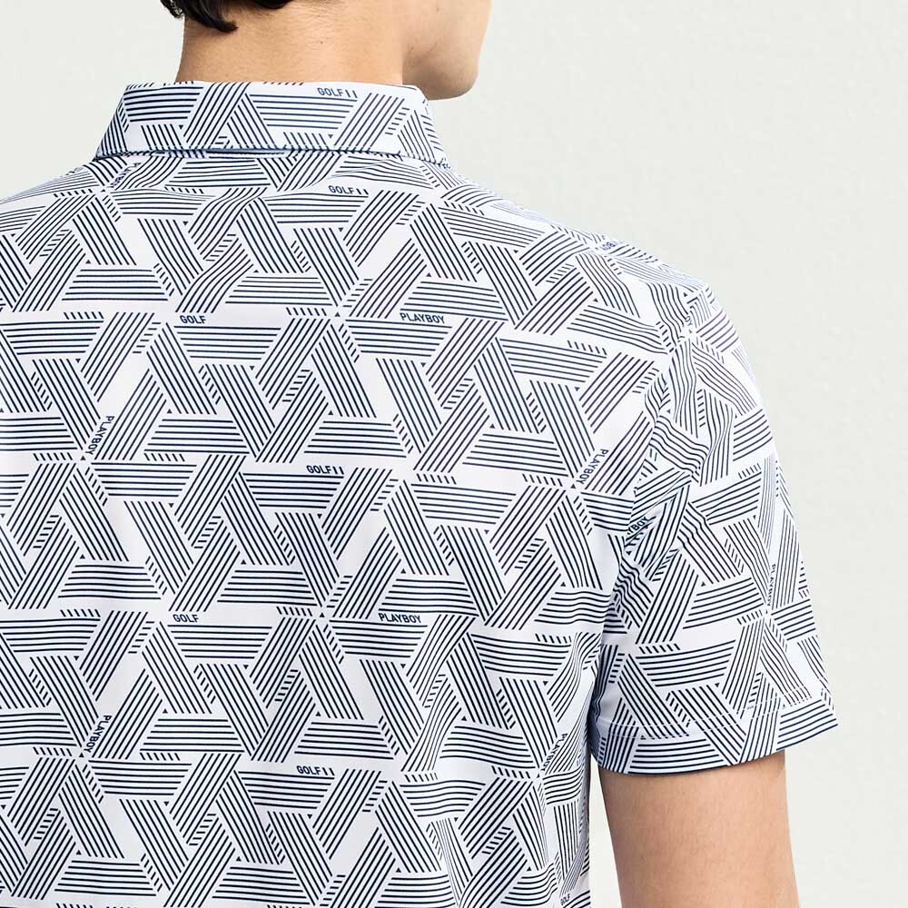 【PLAYBOY GOLF】男款幾何吸濕排汗抗UV短袖POLO衫-藍 / AA26102-56