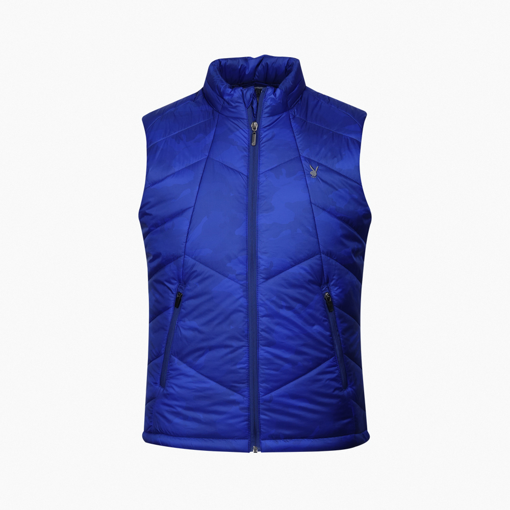 【PLAYBOY GOLF】男款隱約迷彩圖騰鋪棉背心_藍 / AB17211-56