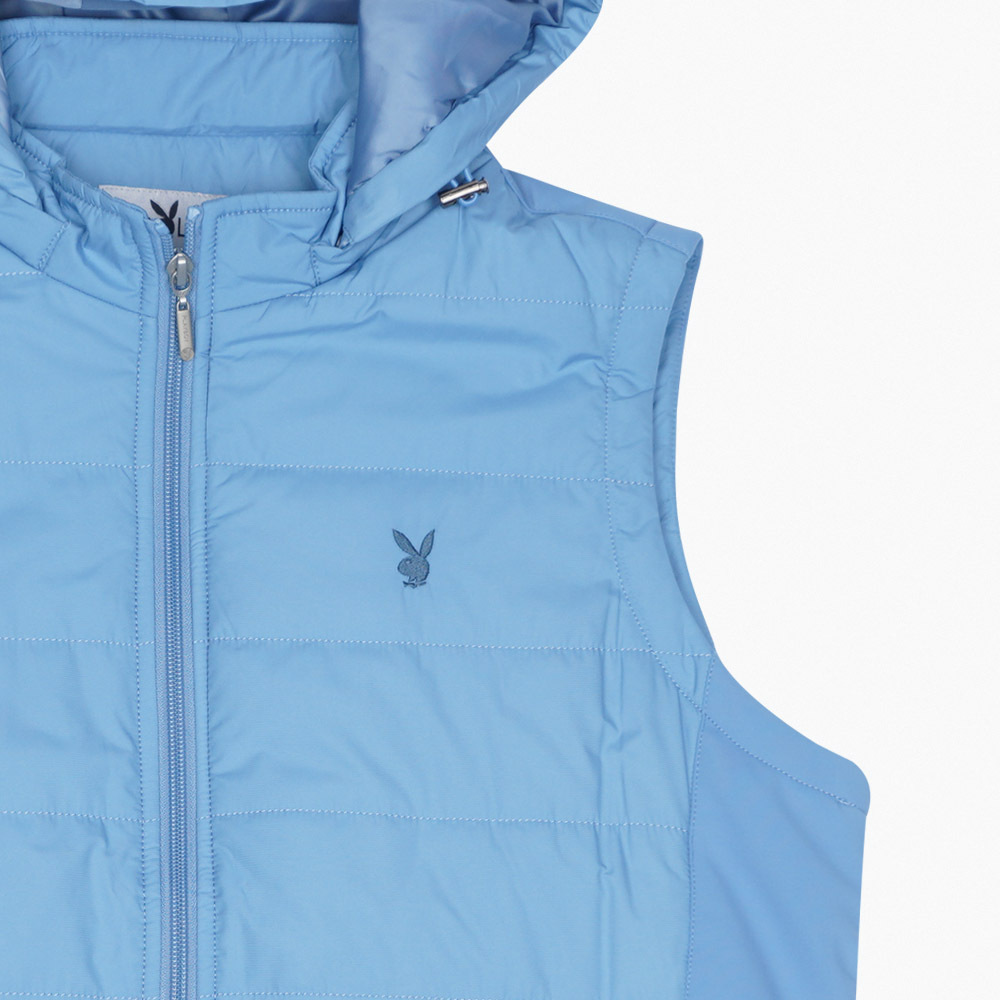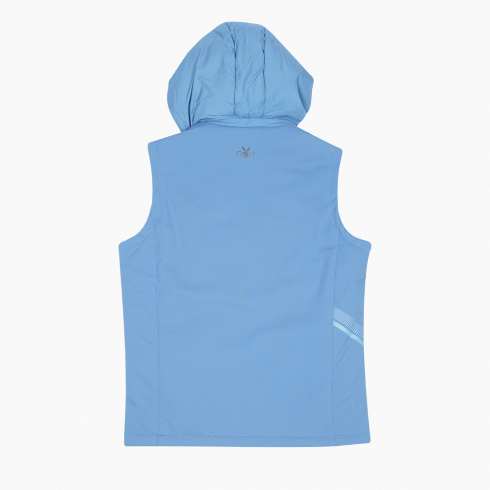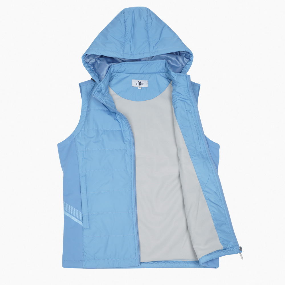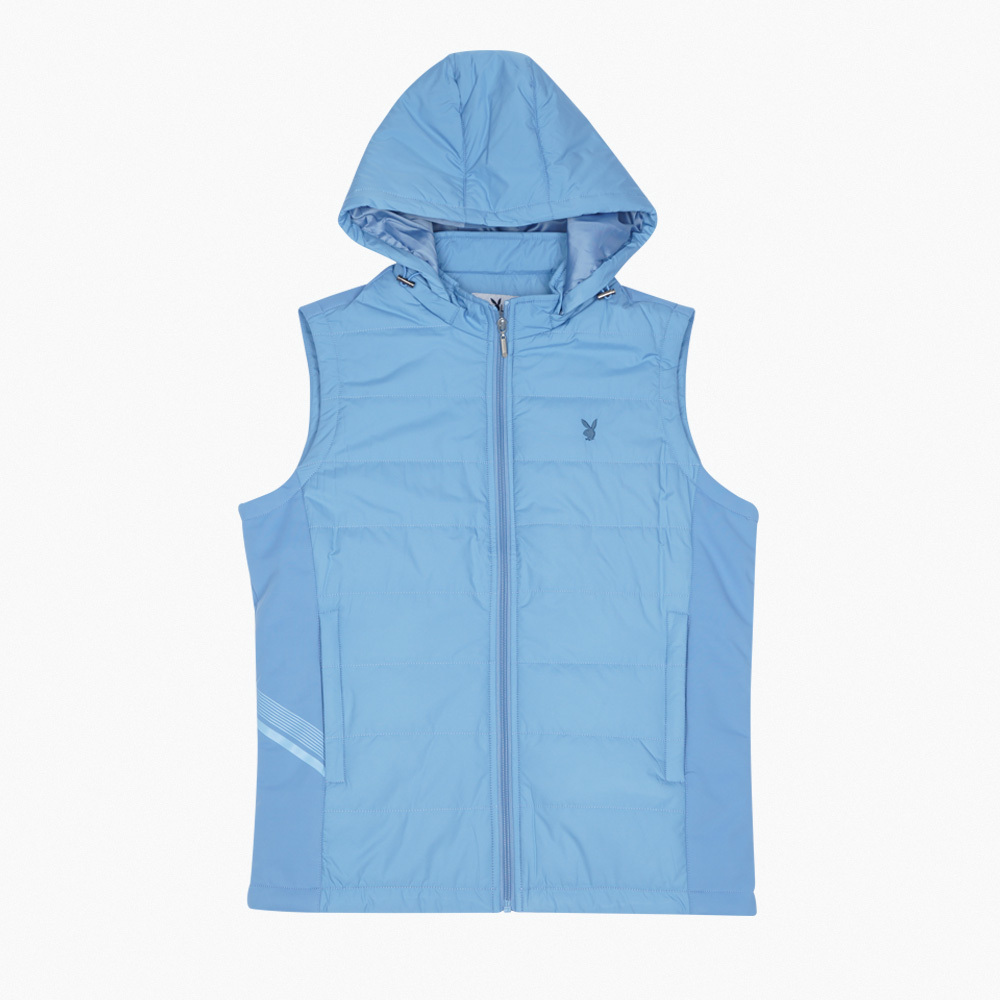 【PLAYBOY GOLF】男款異素裁剪接可拆帽鋪棉背心-天藍 / AB21212-55