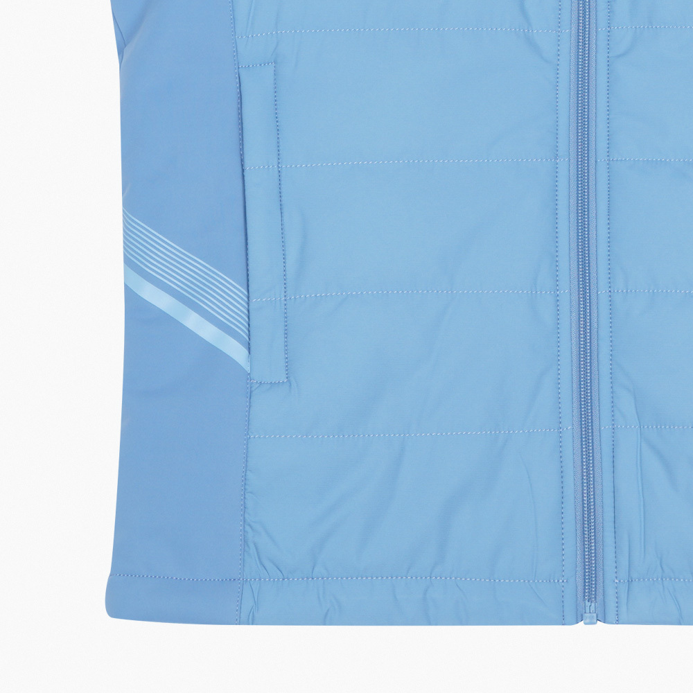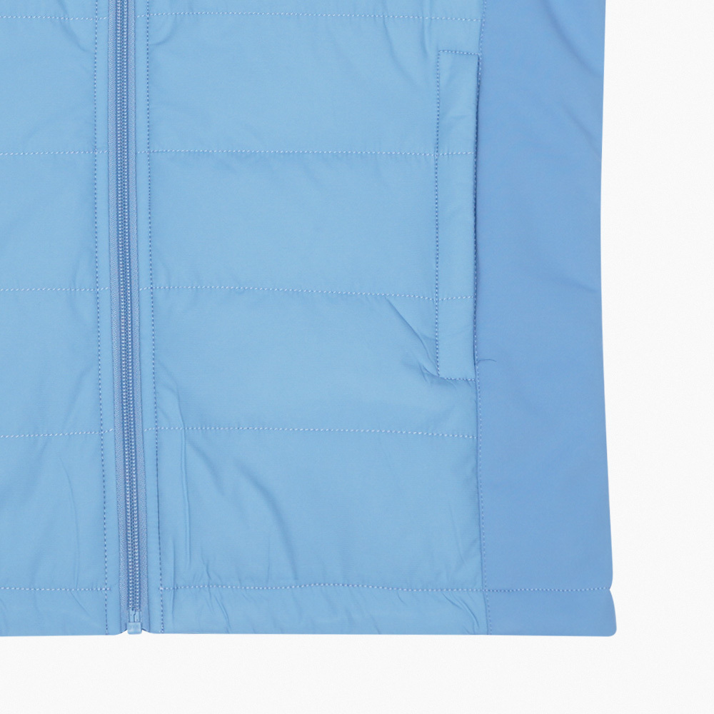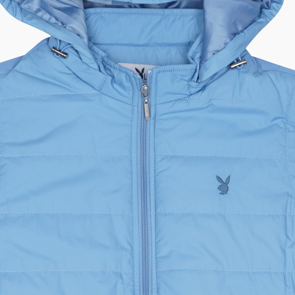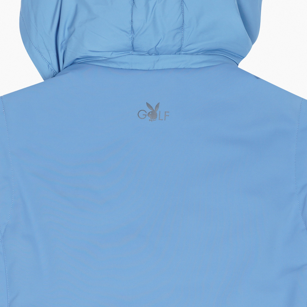 【PLAYBOY GOLF】男款異素裁剪接可拆帽鋪棉背心-天藍 / AB21212-55