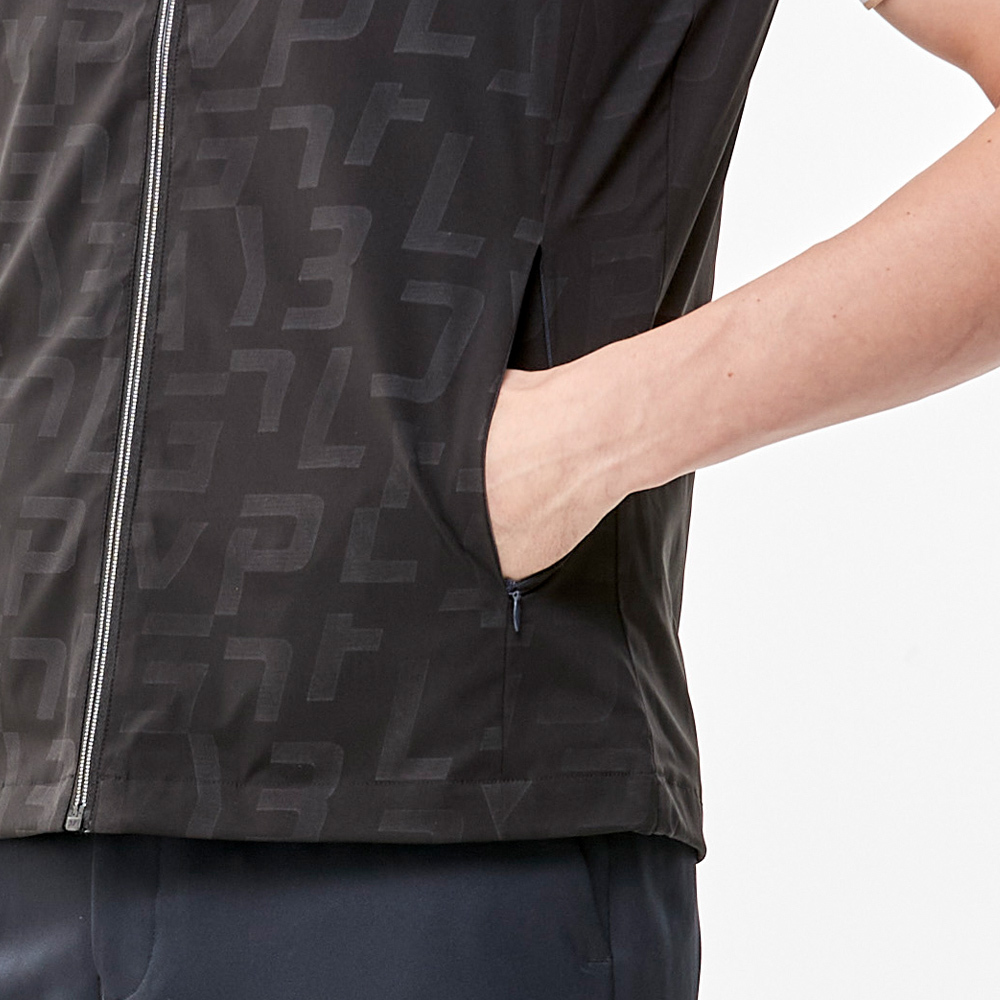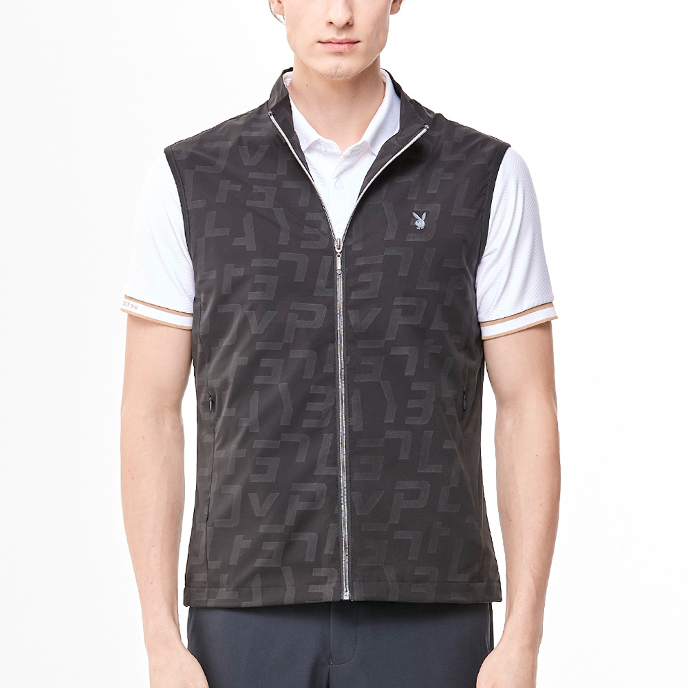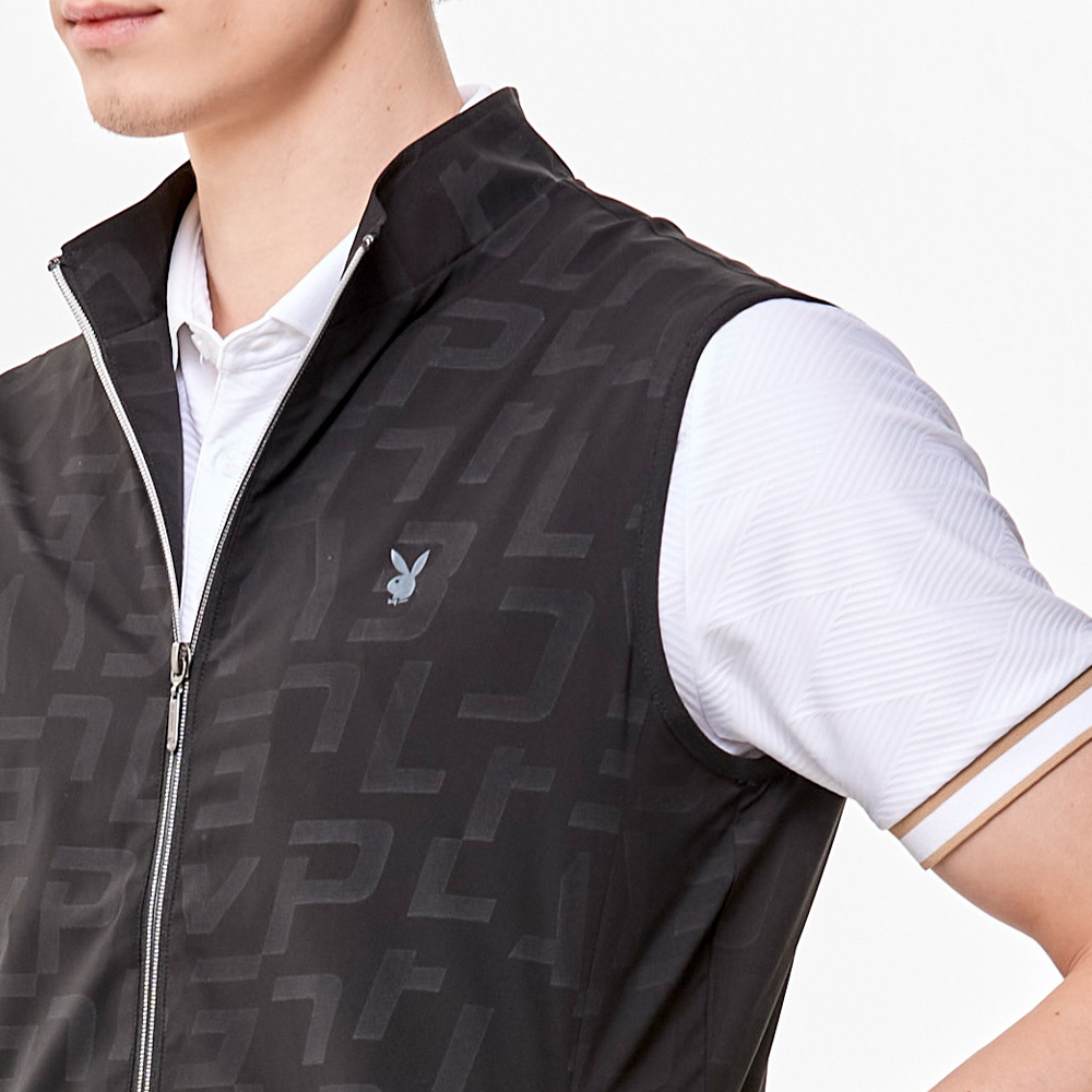 【PLAYBOY GOLF】男款印花防風防潑水抗UV高爾夫薄背心-黑 / AB24101-88