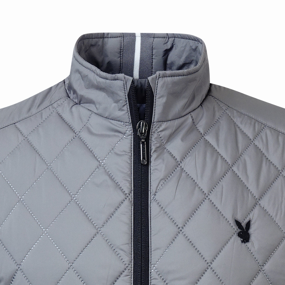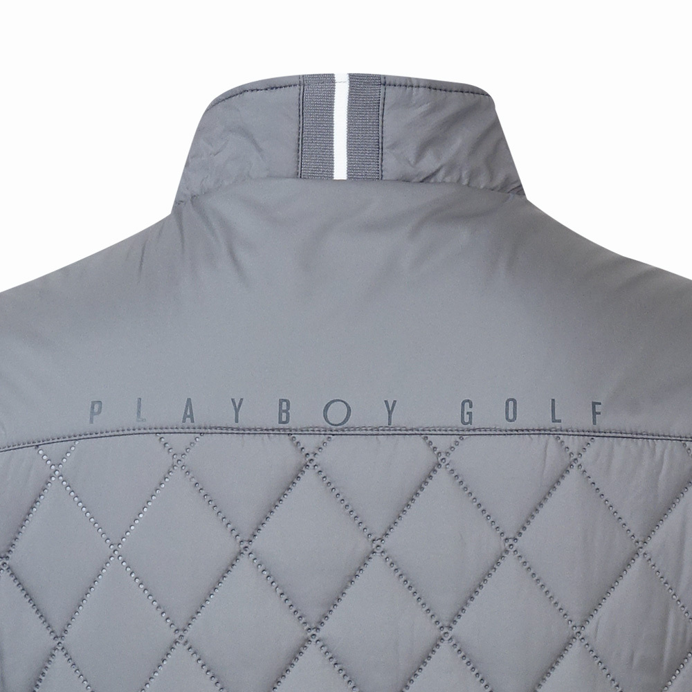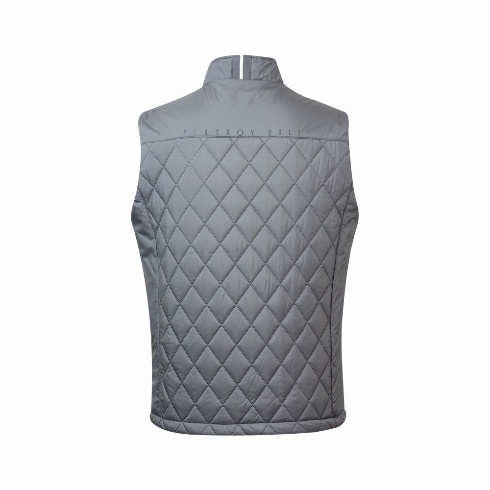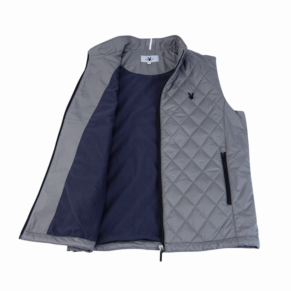 【PLAYBOY GOLF】男款菱形壓棉防風防潑水高爾夫鋪棉背心-灰 / AB24211-85