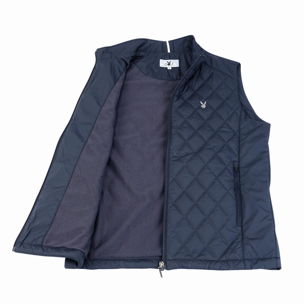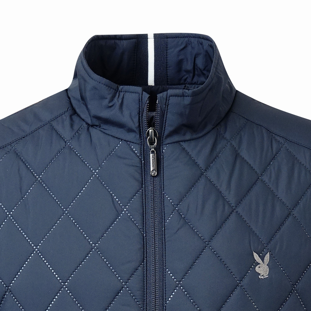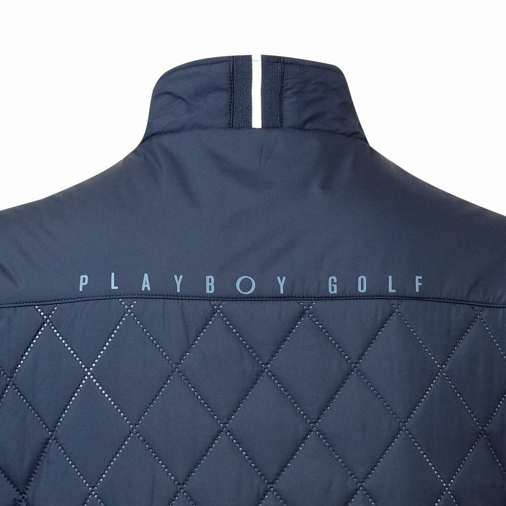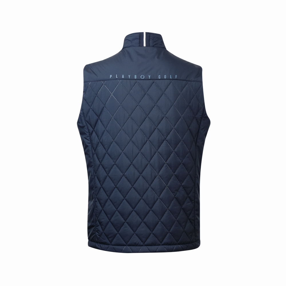 【PLAYBOY GOLF】男款菱形壓棉防風防潑水高爾夫鋪棉背心-深灰藍 / AB24211-86