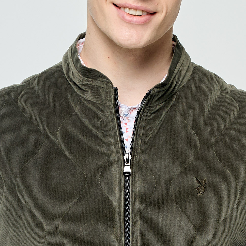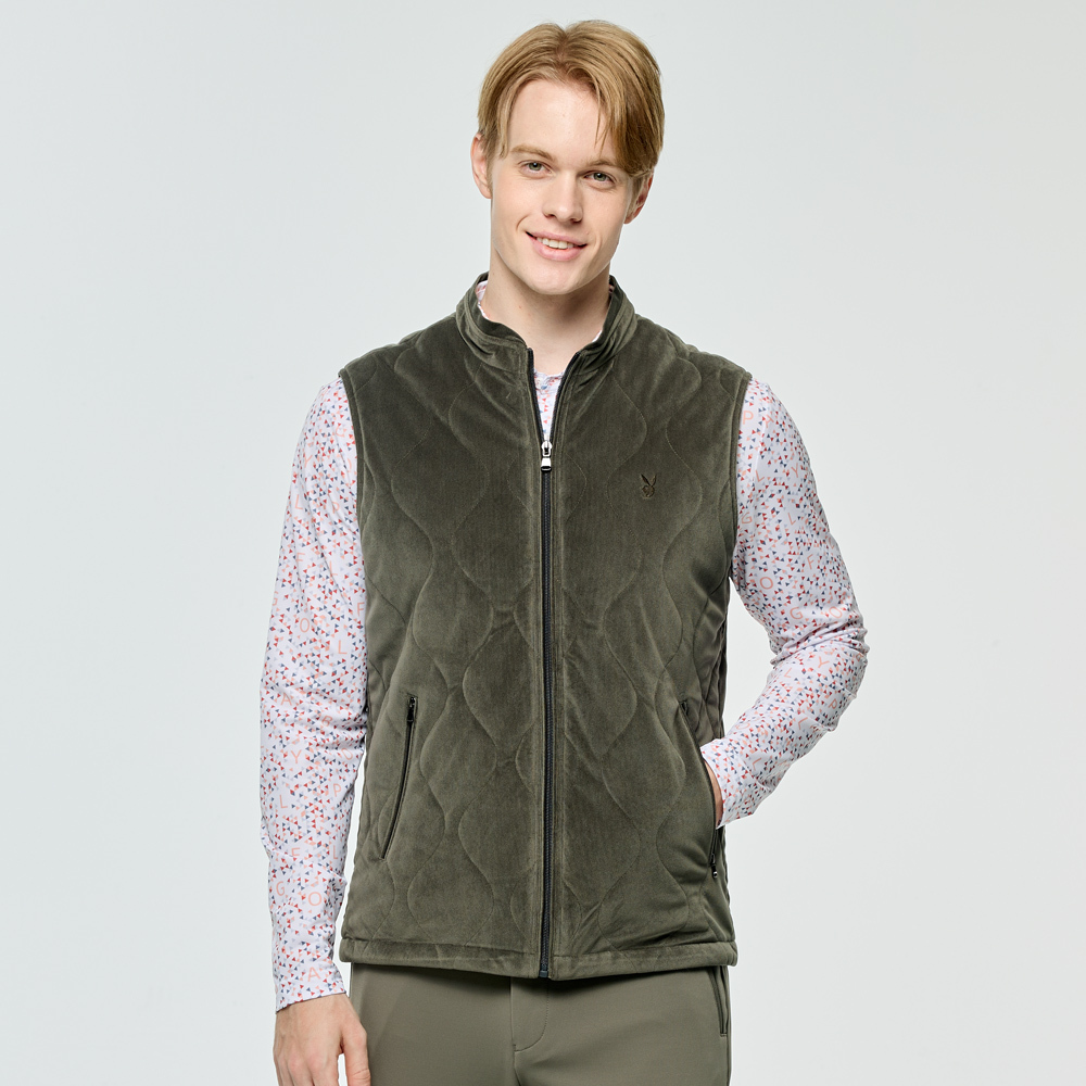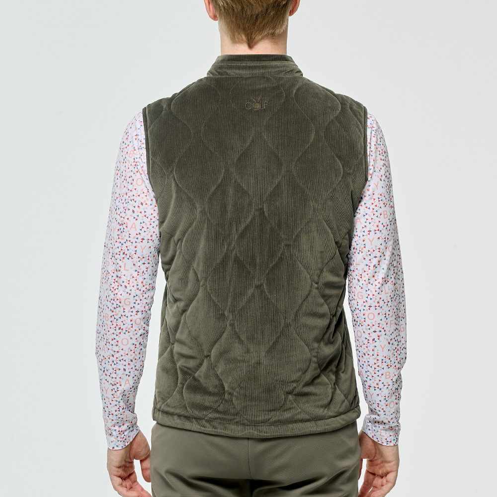【PLAYBOY GOLF】男款燈芯絨高爾夫鋪棉背心-綠 / AB25210-48