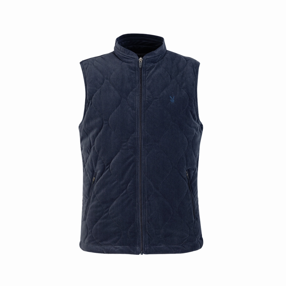 【PLAYBOY GOLF】男款燈芯絨高爾夫鋪棉背心-深藍 / AB25210-58