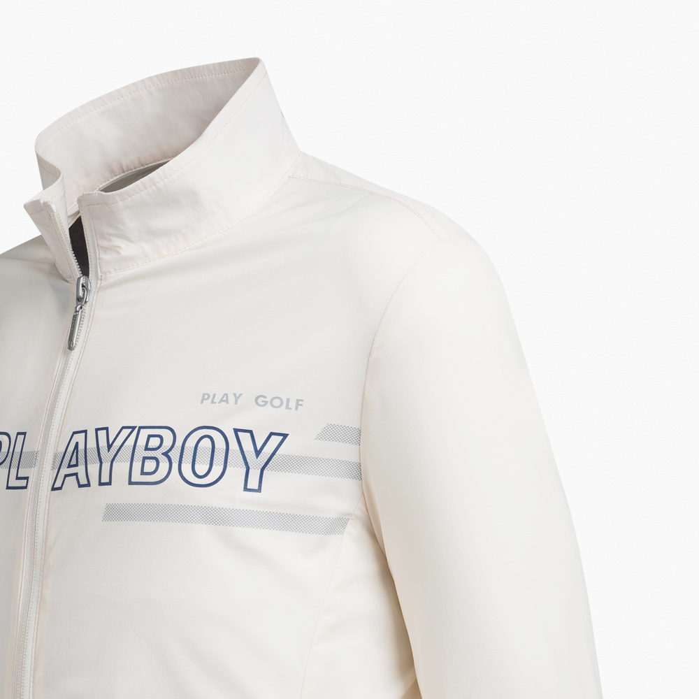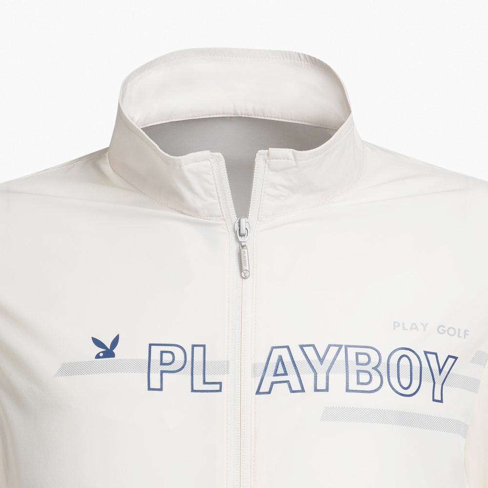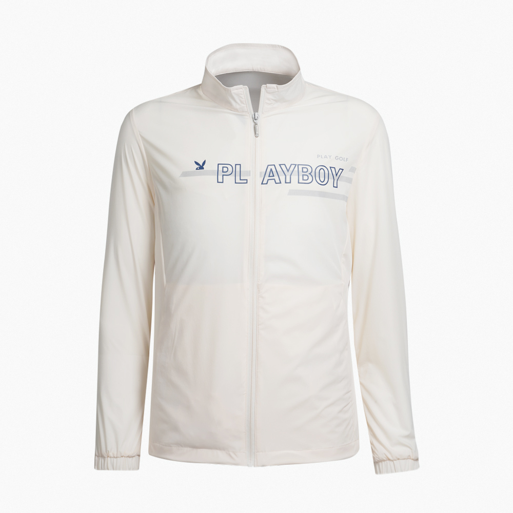【PLAYBOY GOLF】男款LOGO圖騰高彈性薄外套-白 / AC23102-73